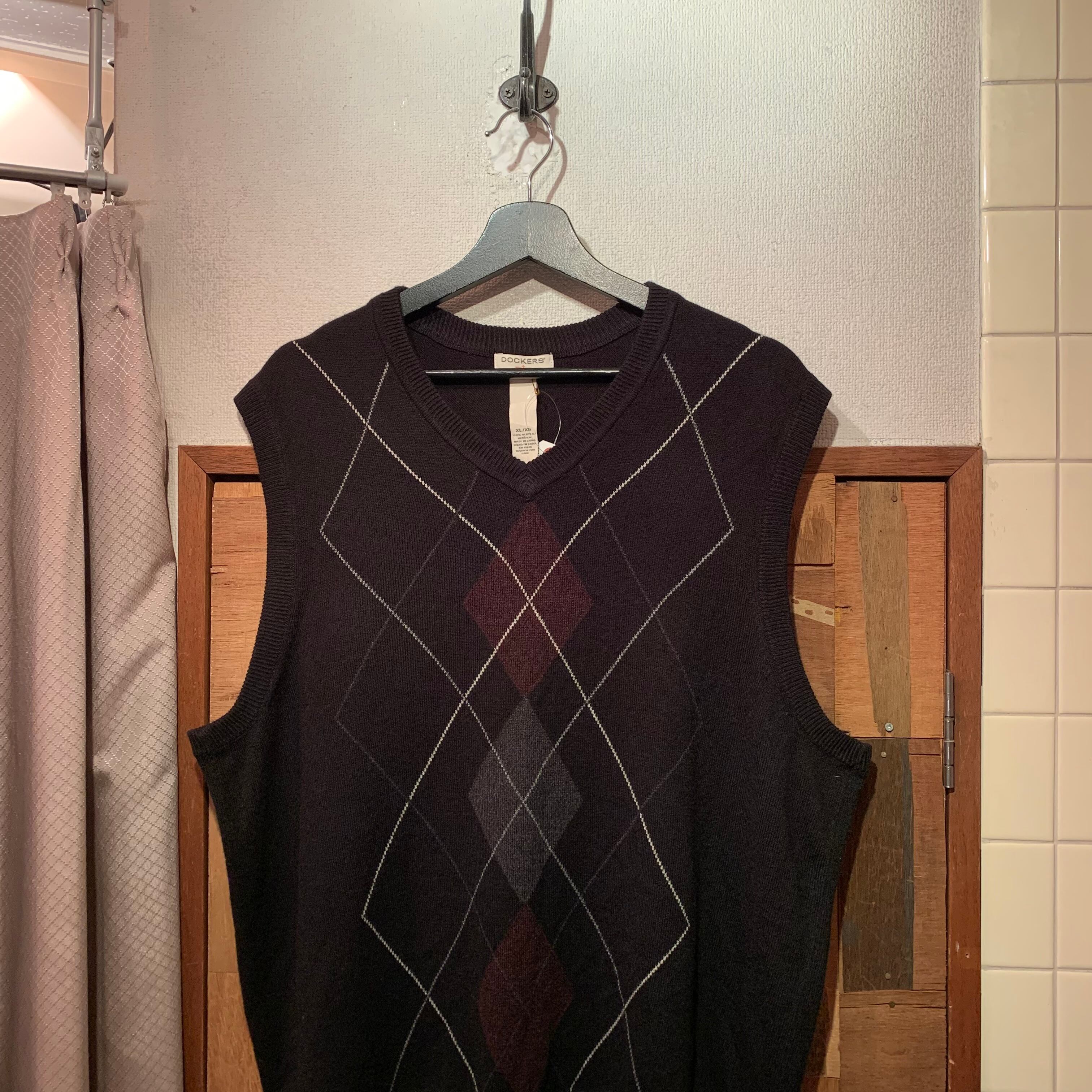 “DOCKERS” black base acrylic argyle pattern knit vest