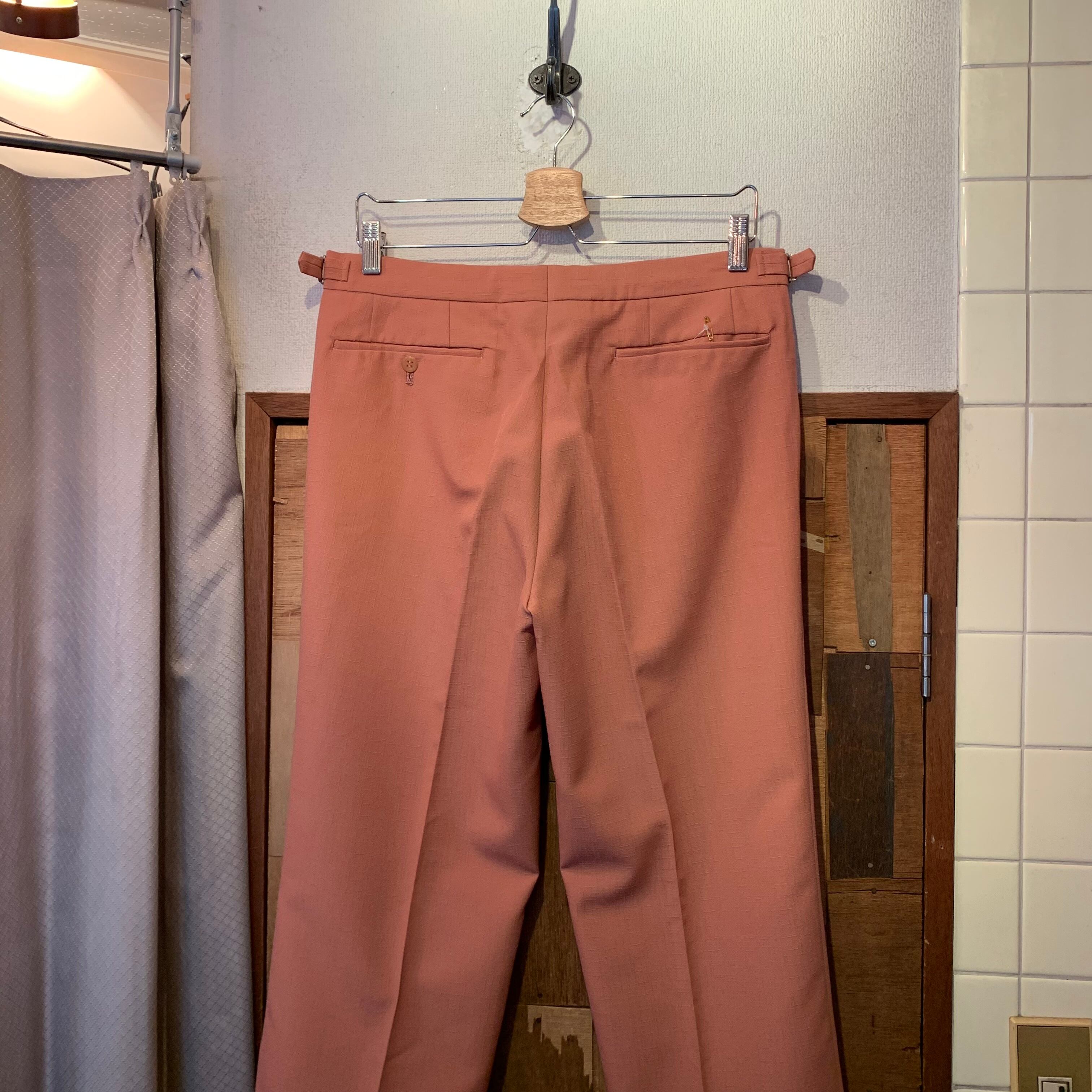 “McGREGOR” 80’s~ salmon pink polyester point embroidery tuck less slacks