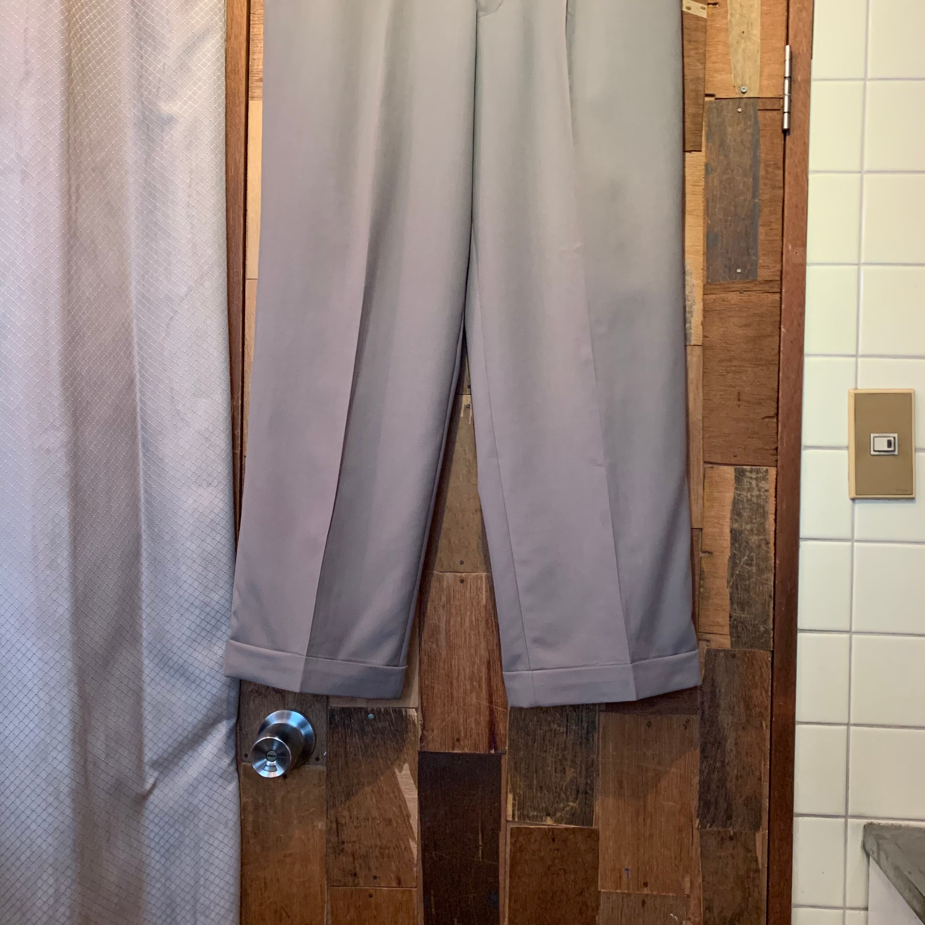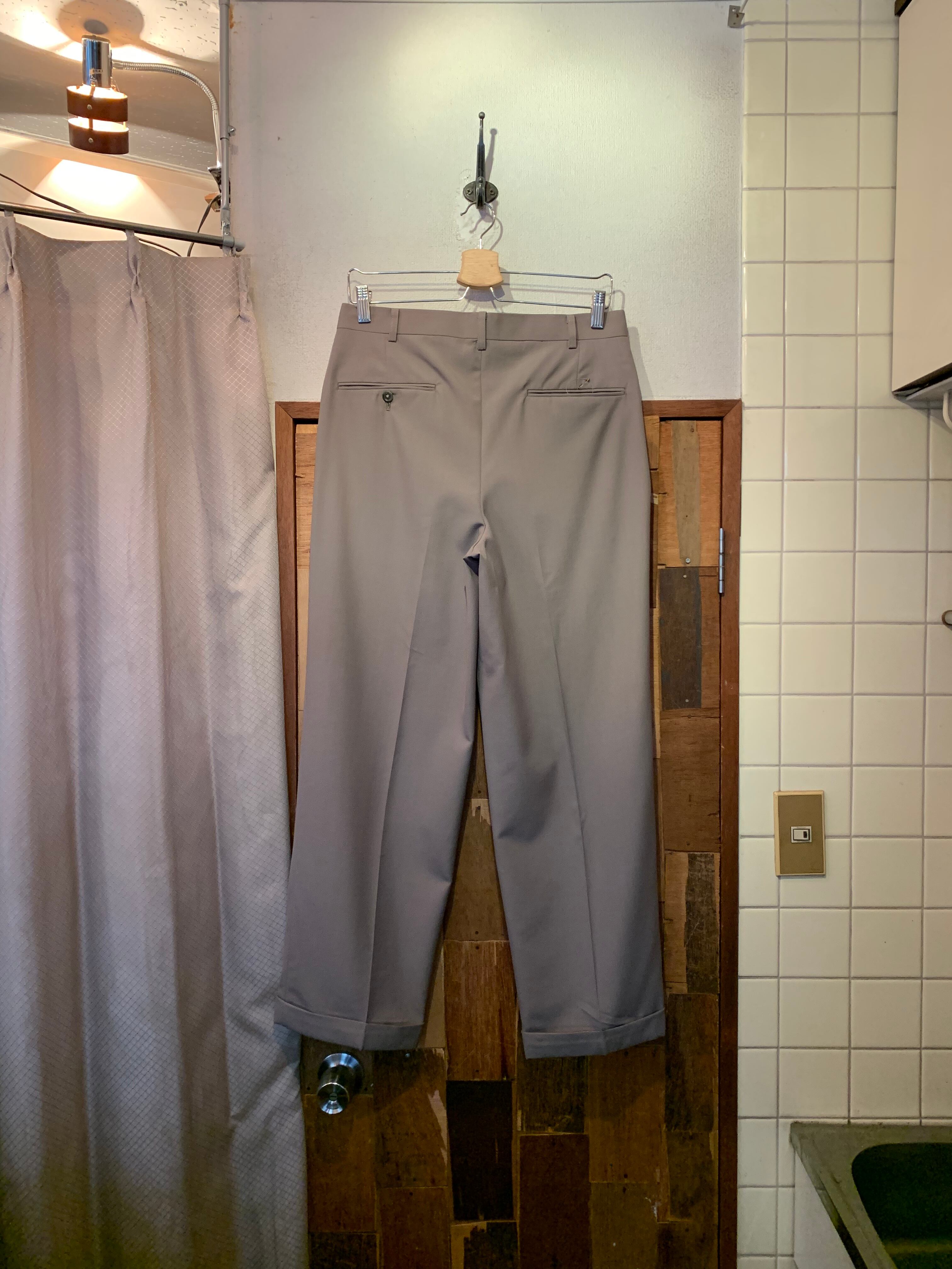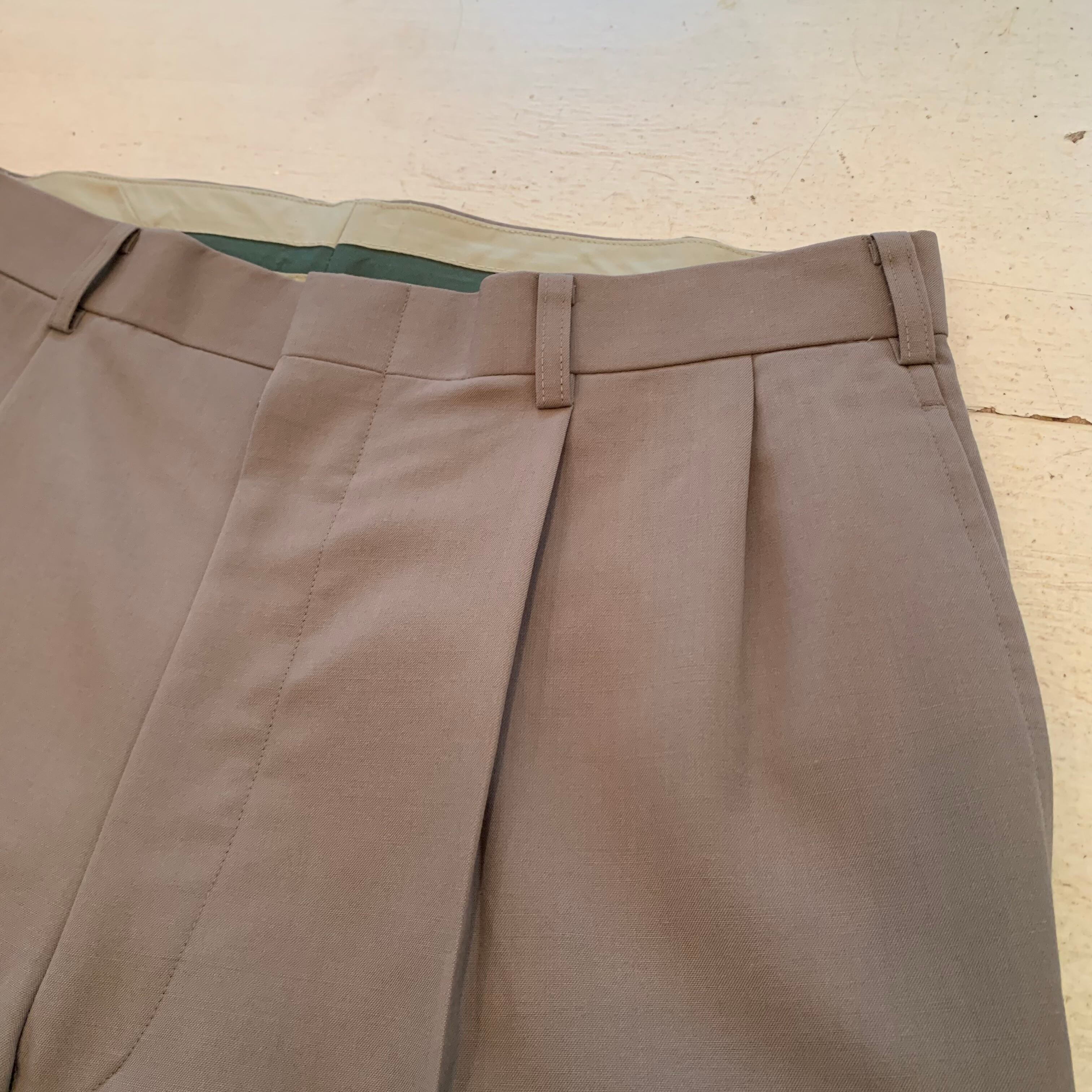 “UNIVERSITY SHOP” khaki greige wool 2tuck slacks