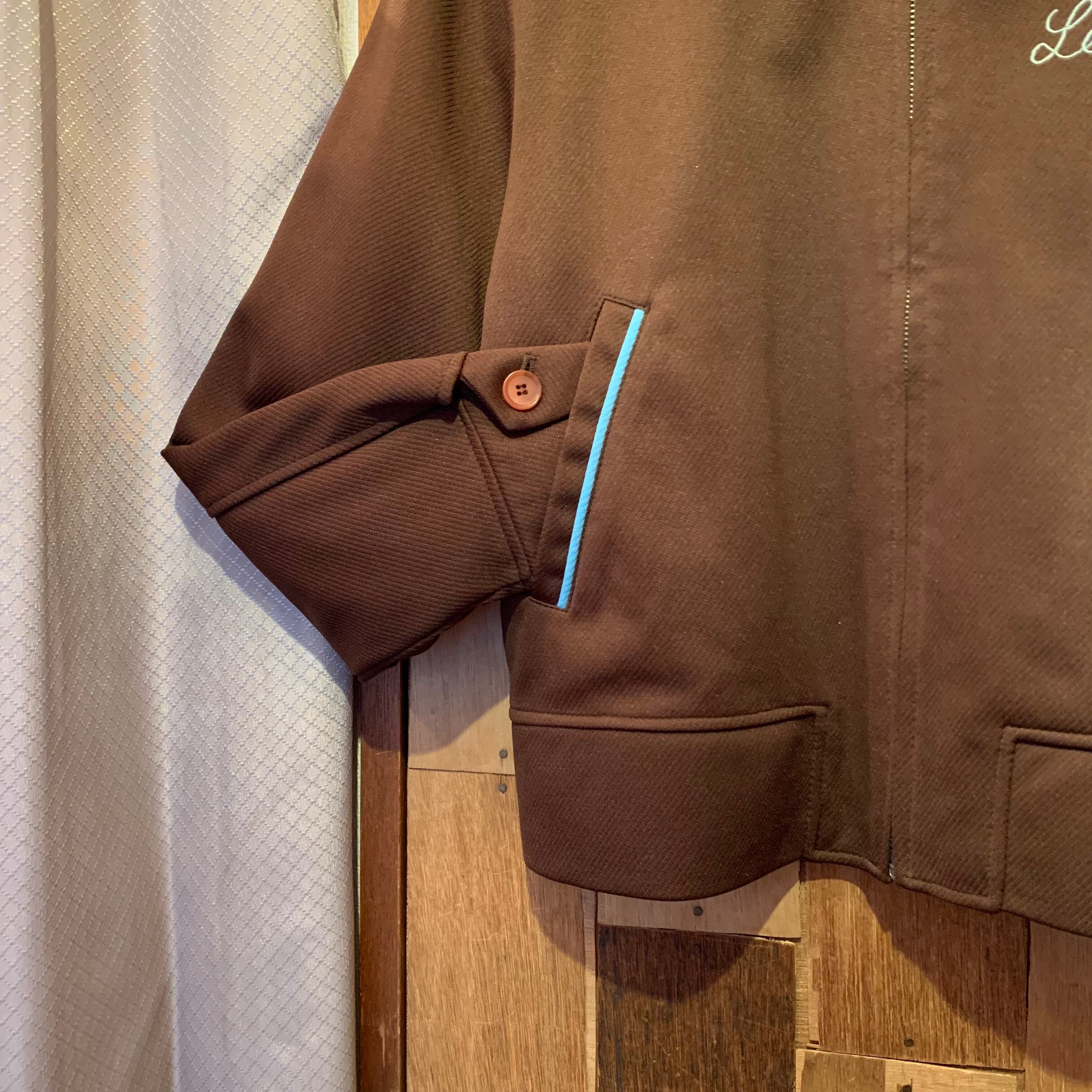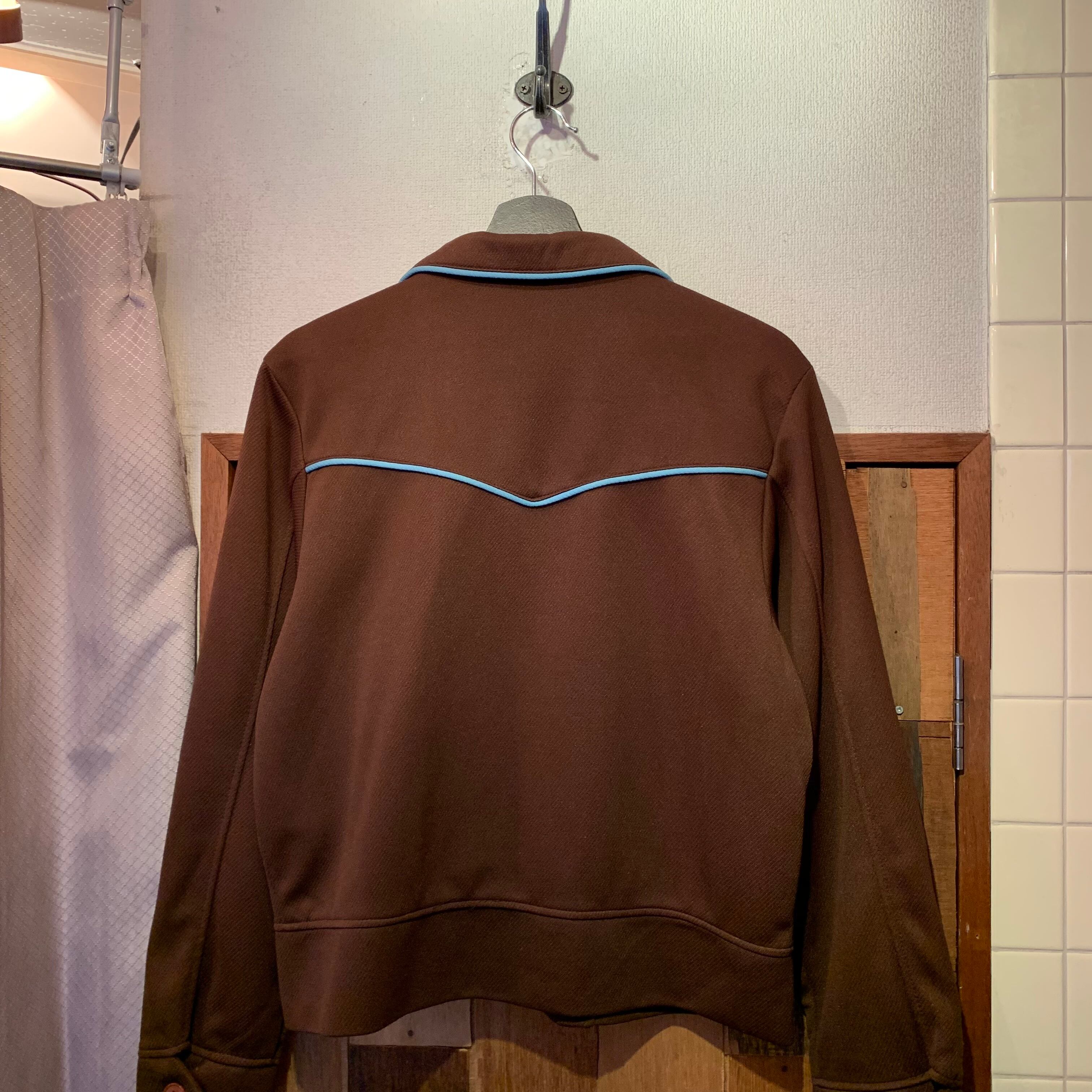 “DOUBLE SHOCK” brown×light blue cotton/poly piping&embroidery zip-up jacket