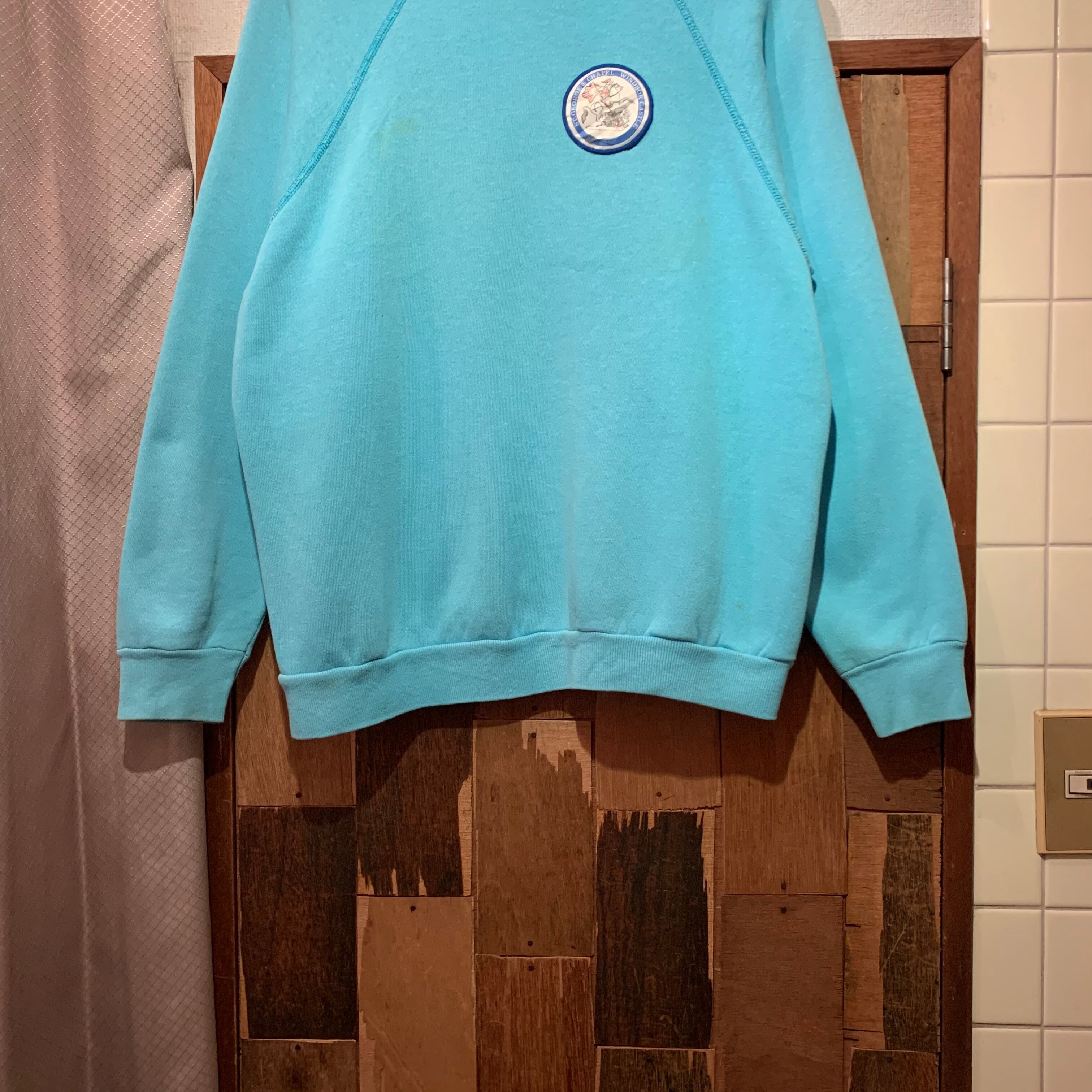 “brand unknown” 80’s light blue wappen design raglan sweat