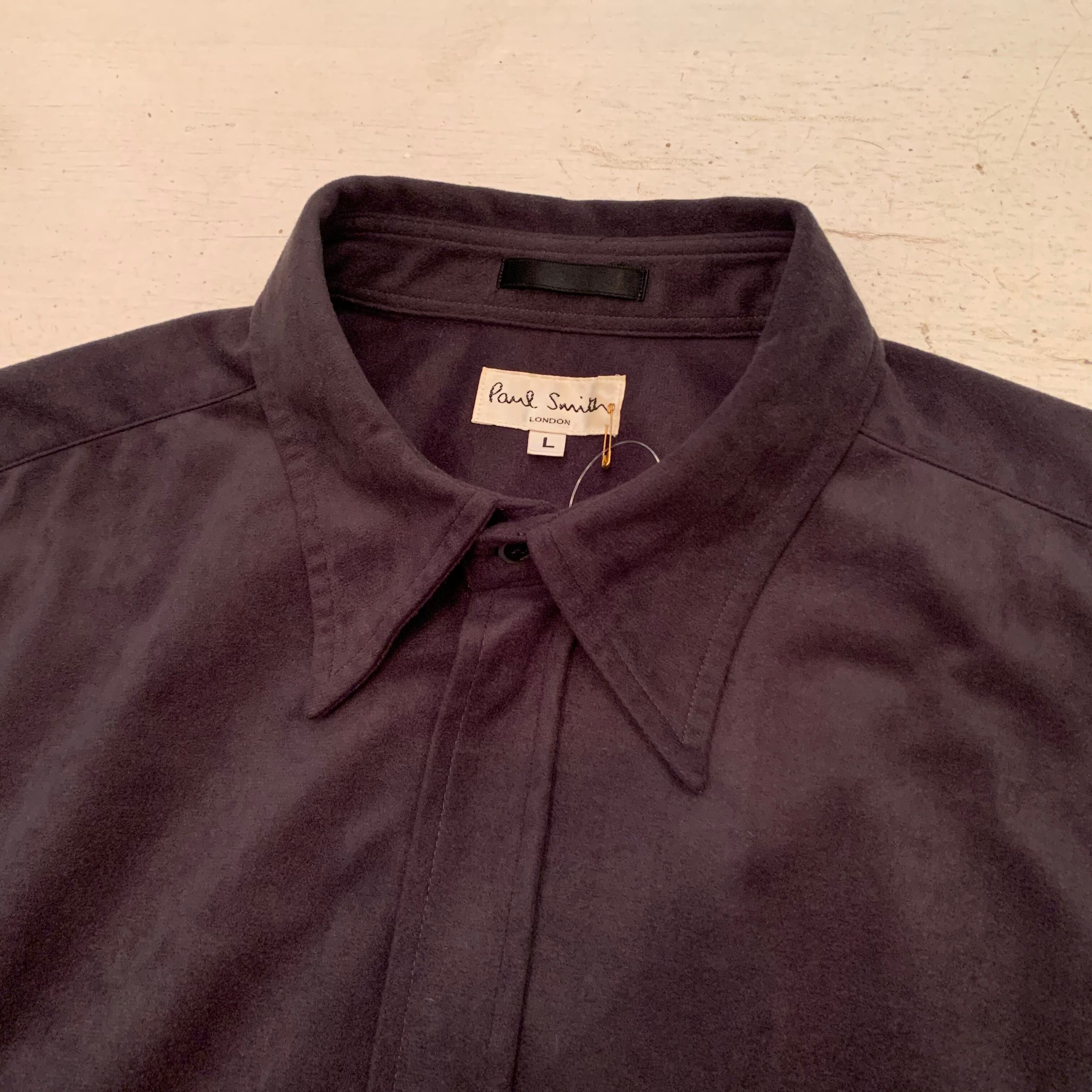“Paul Smith” charcoal polyester zip&button L/S velour shirt