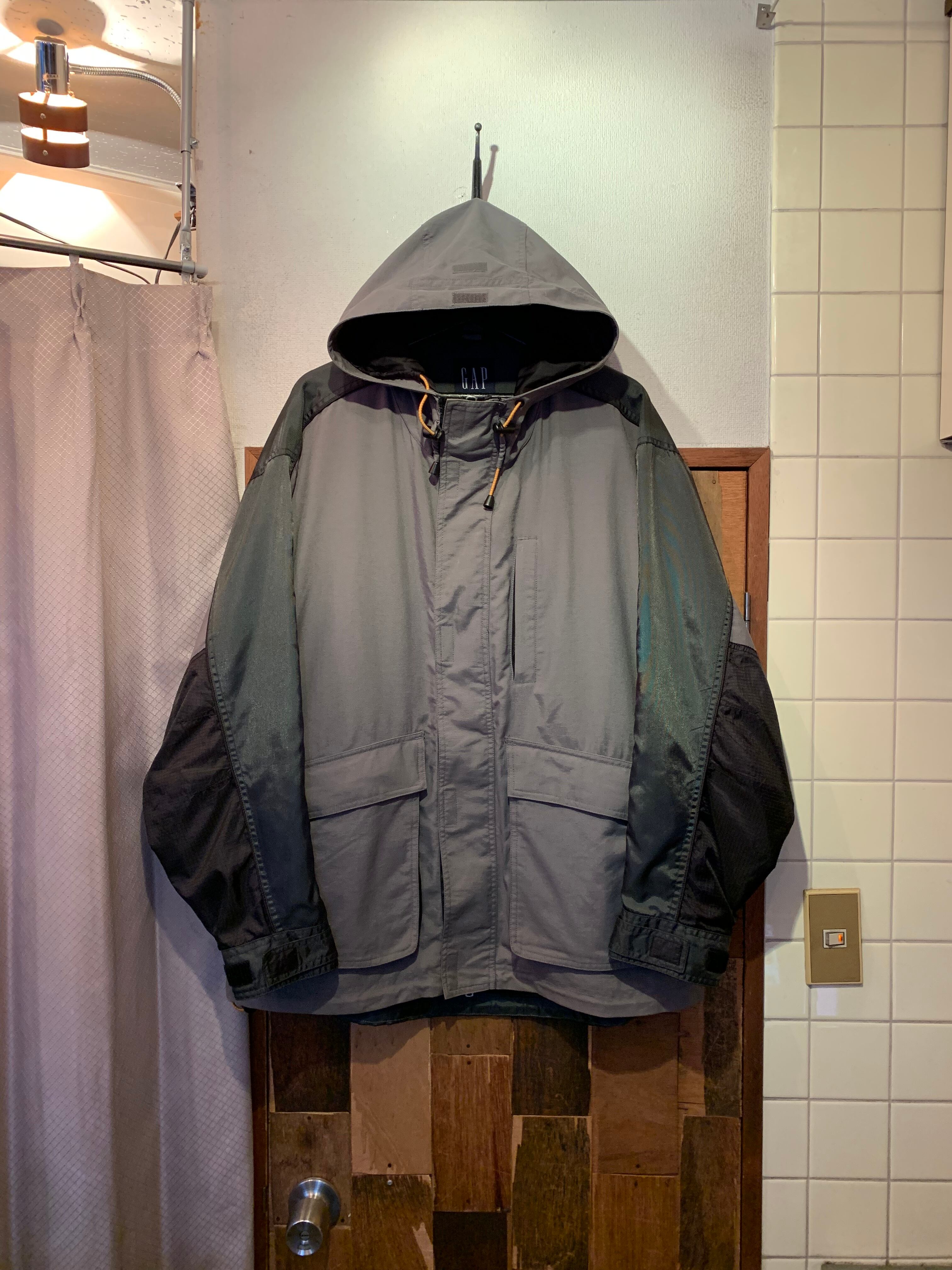 “GAP” 90’s~00’s dark gray×black nylon switch design zip&button design mountain parka