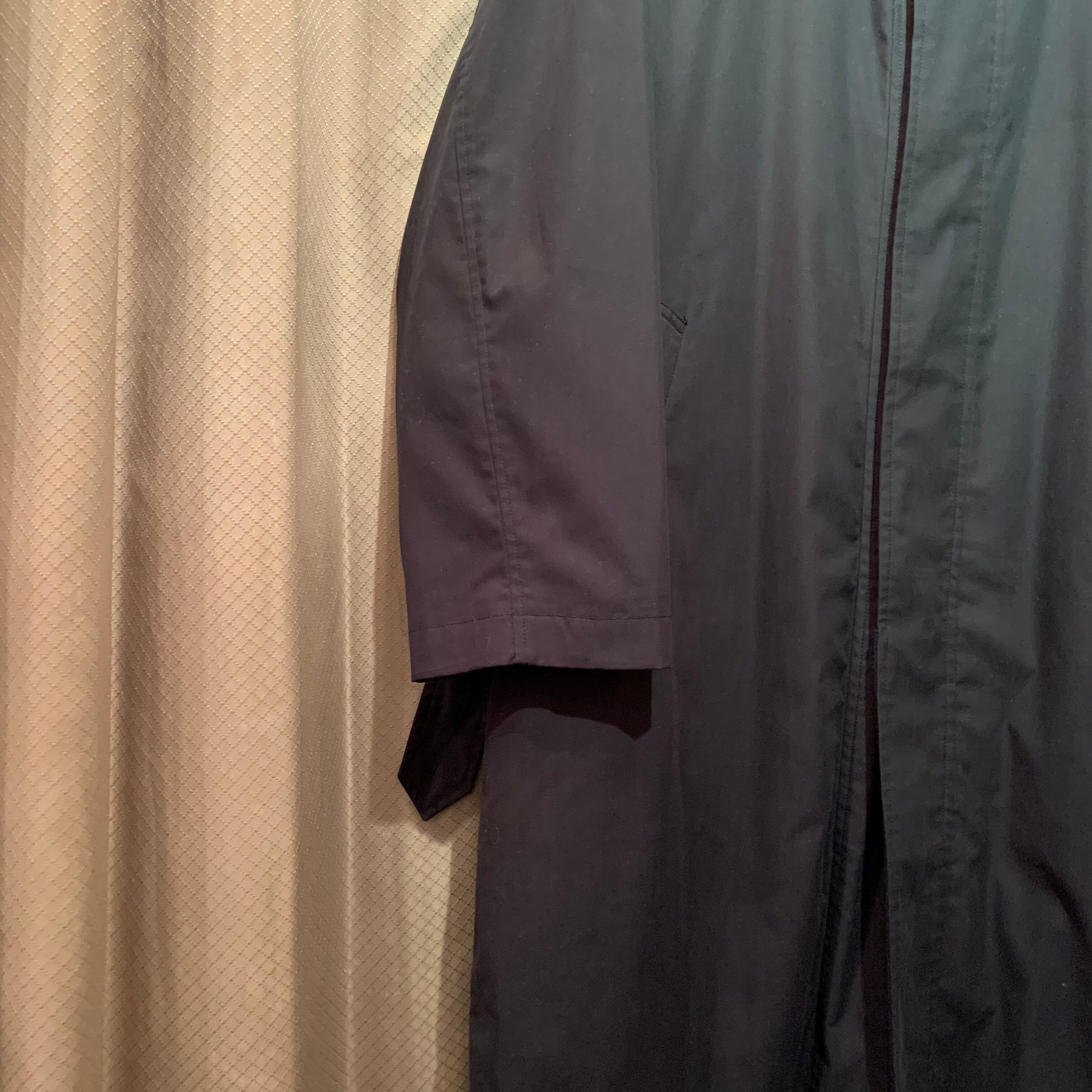 “ROMAN” charcoal navy poly/rayon stand-collar coat with liner&belt