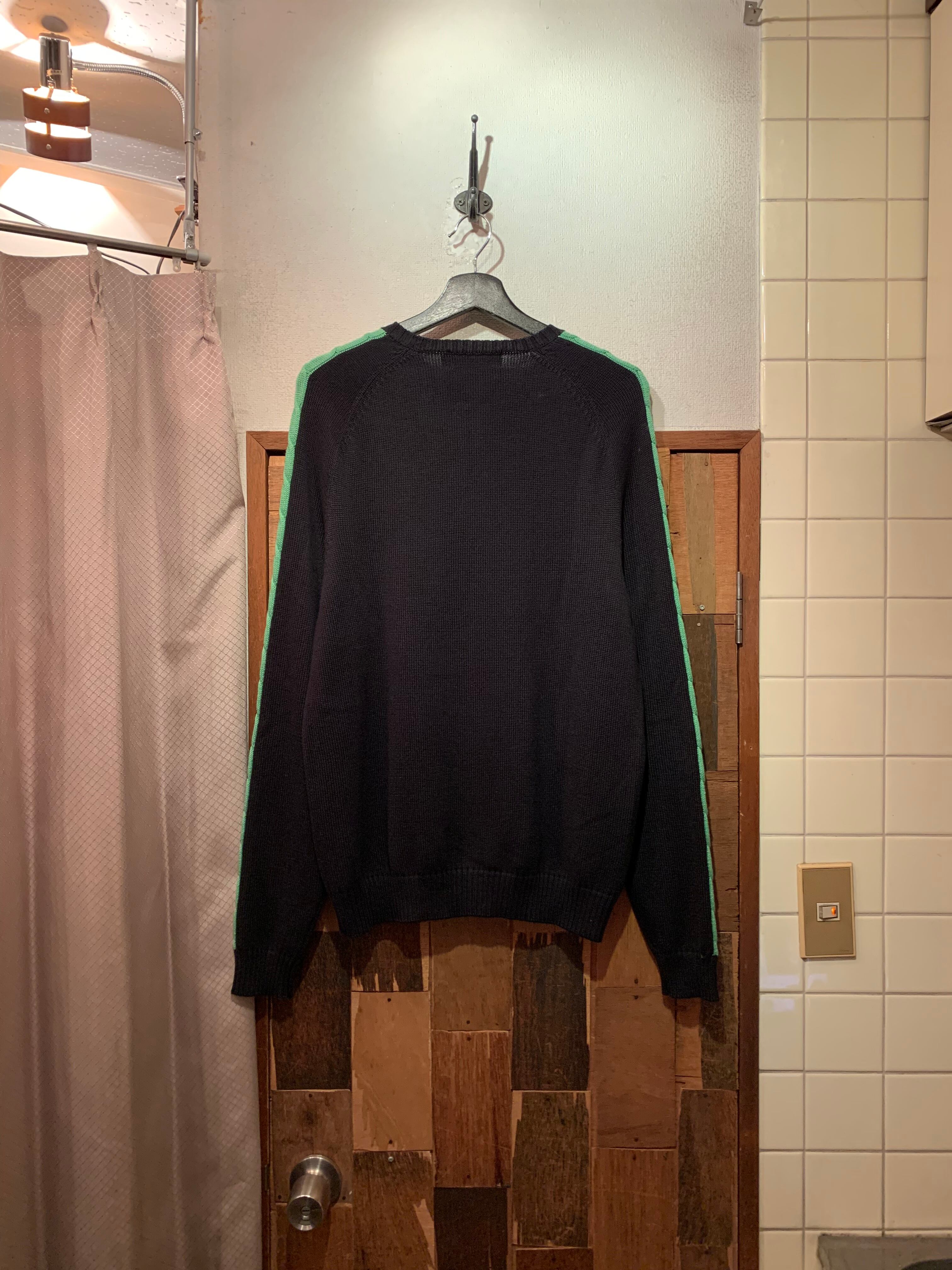 “POLO GOLF” black×light green cotton/cashmere sleeve line design knit sweater