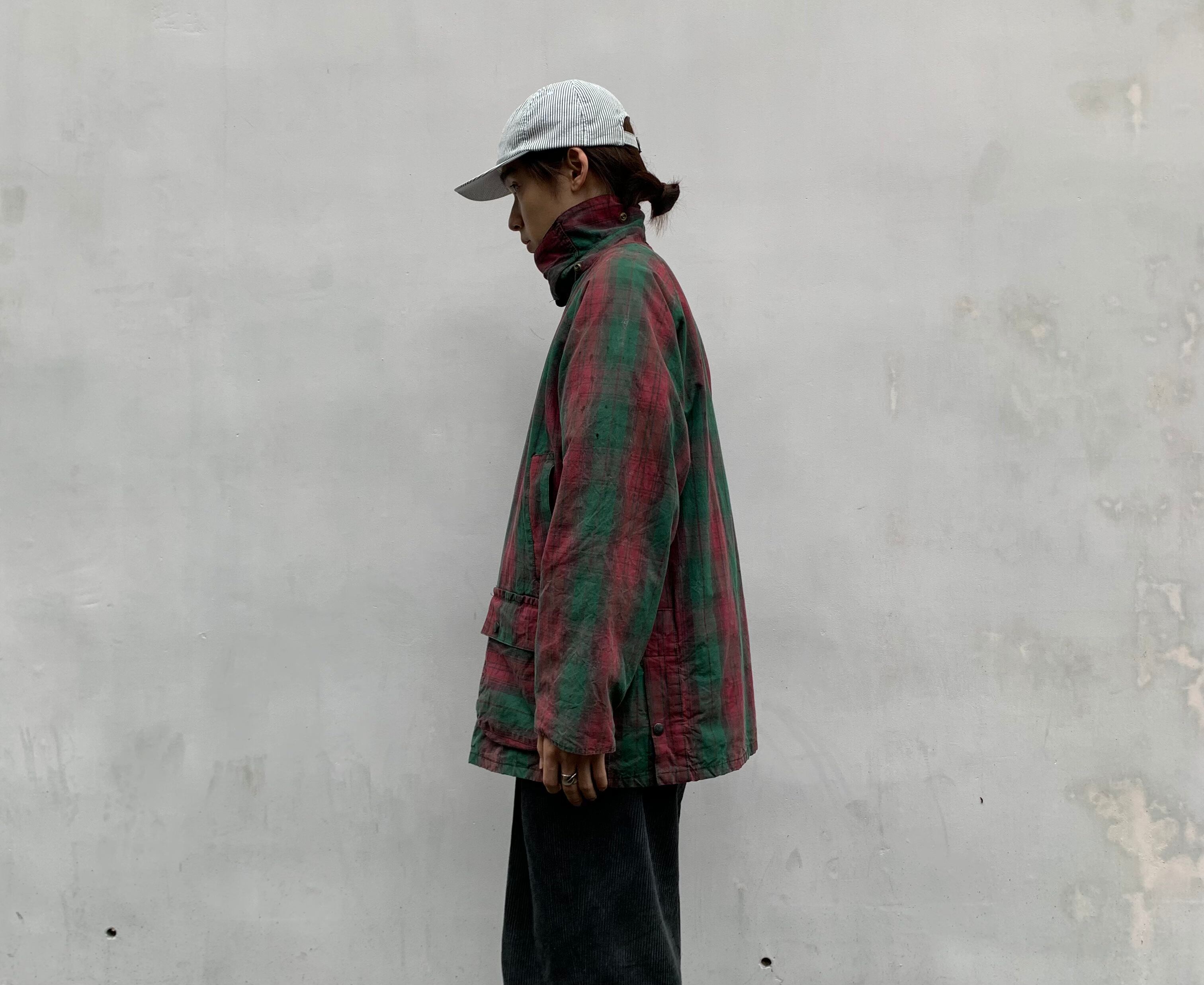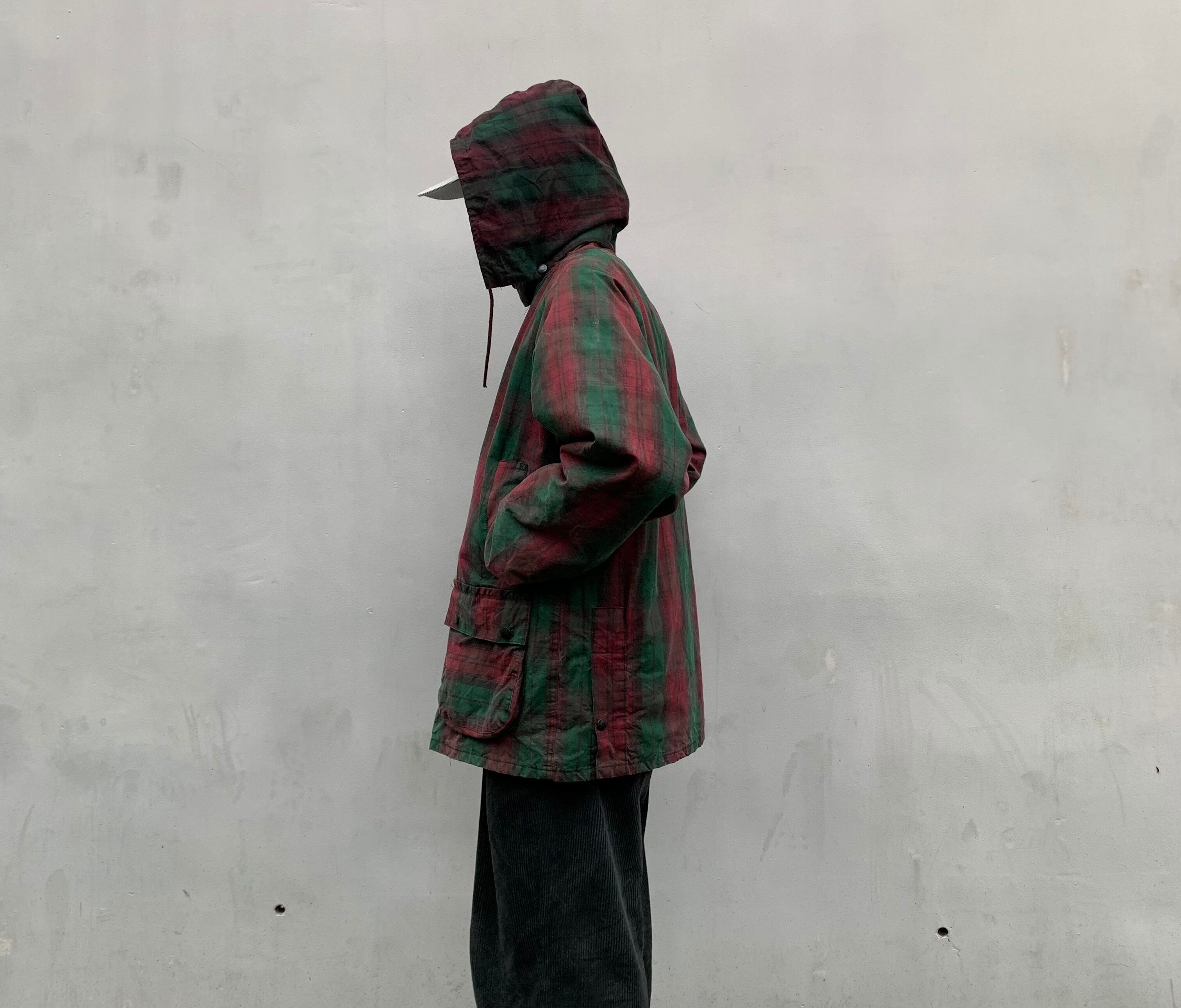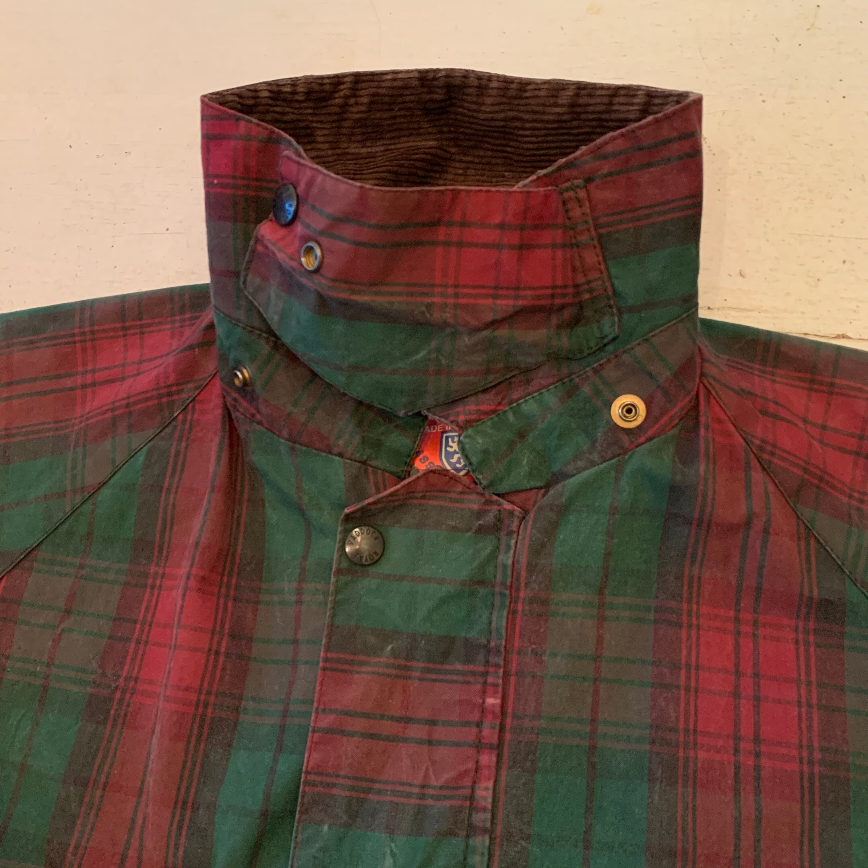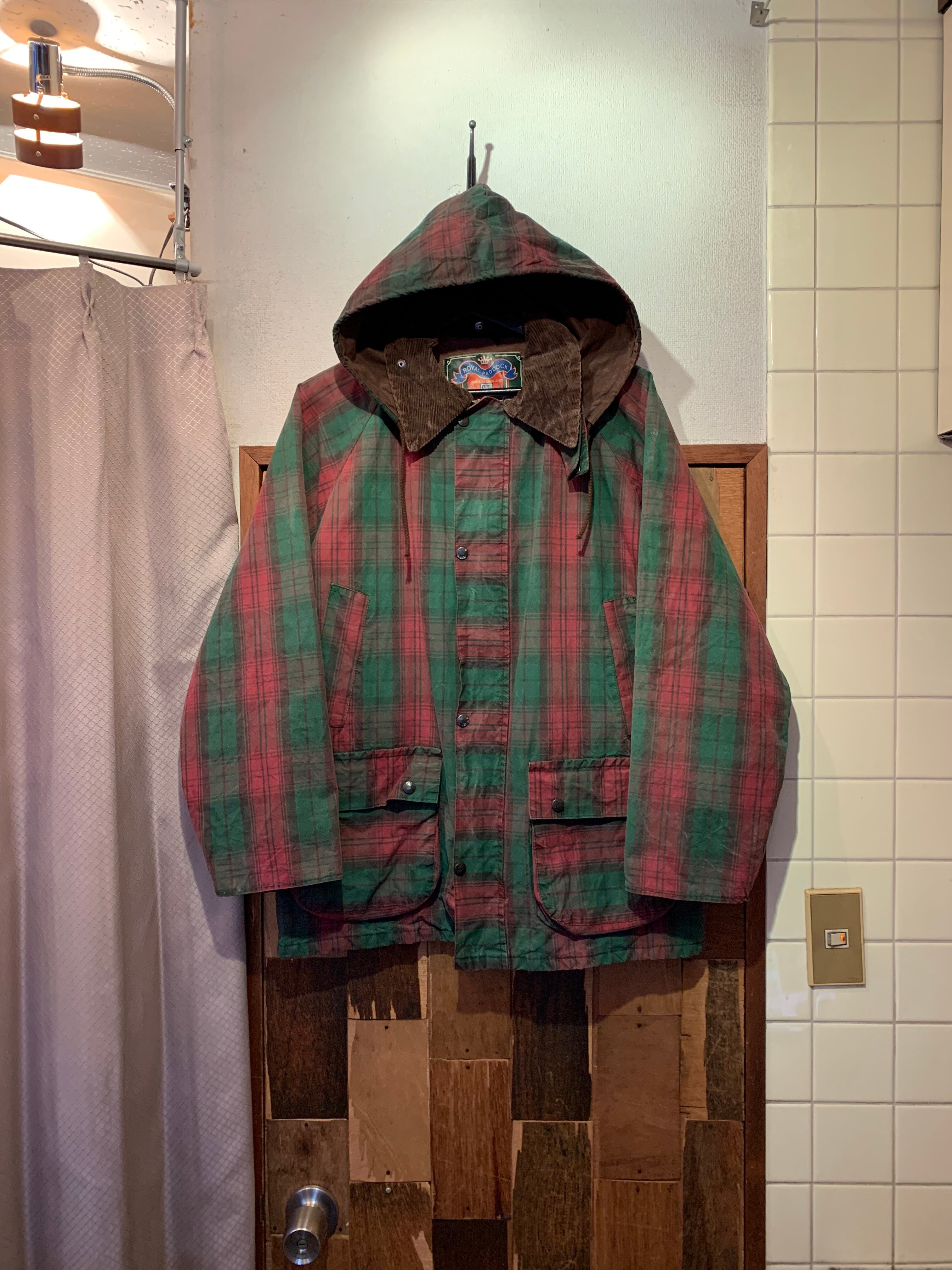 “ROYAL PADOCK” green×red×brown zip&button oiled cotton jacket with hood made in ENGLAND