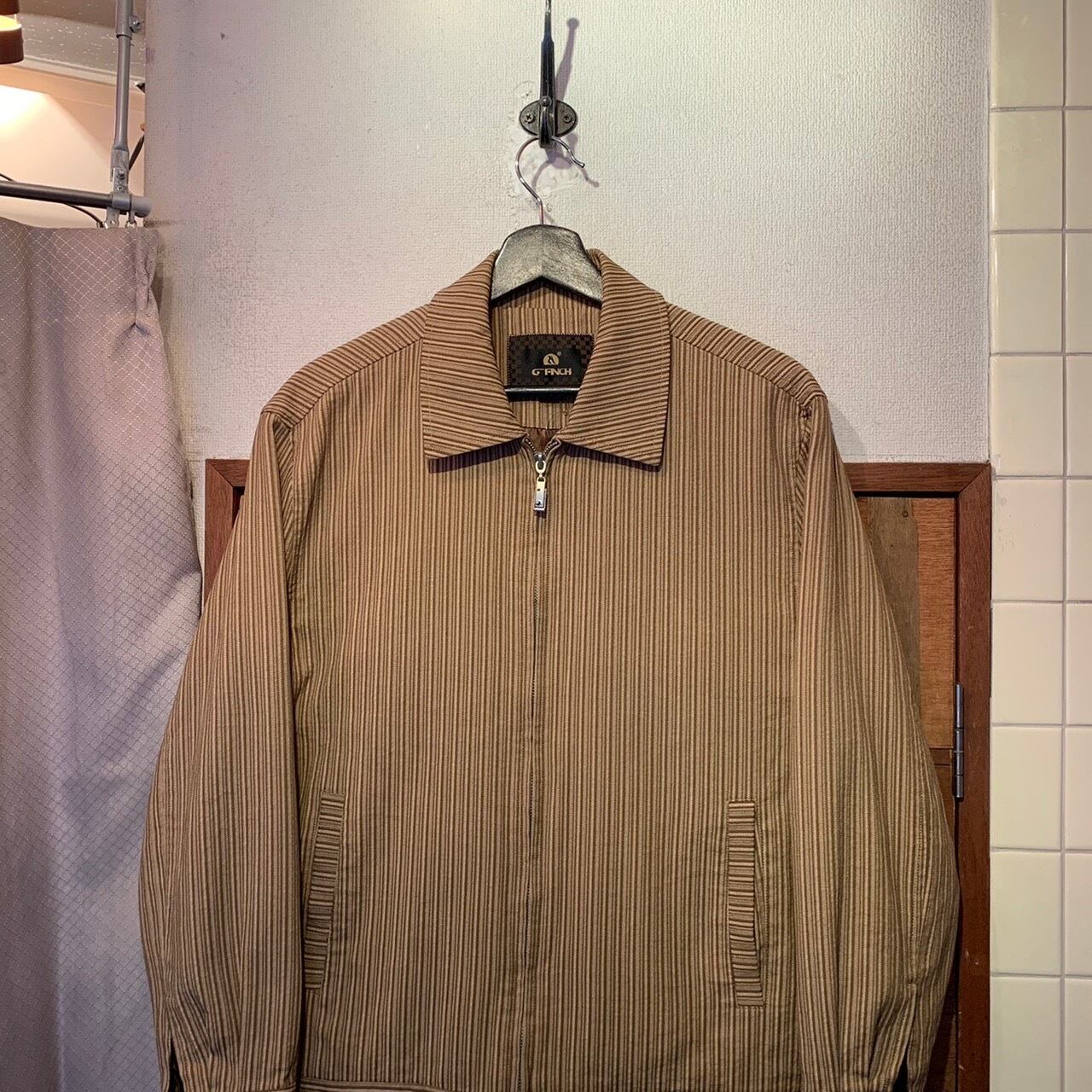 “FNCH” brown base cotton/poly stripe pattern zip-up jacket