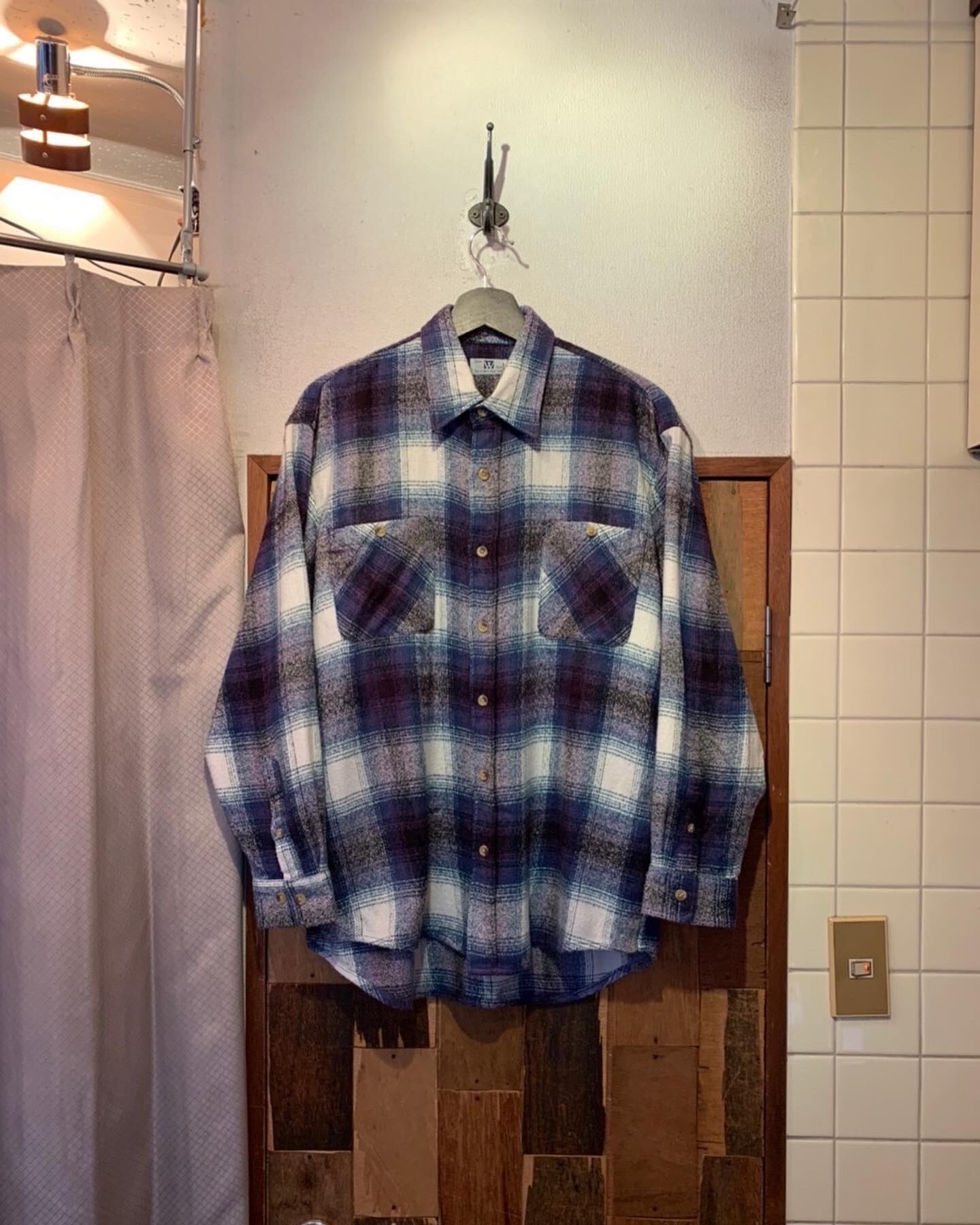 “work plant” purple/navy blue/white acrylic check pattern L/S shirt