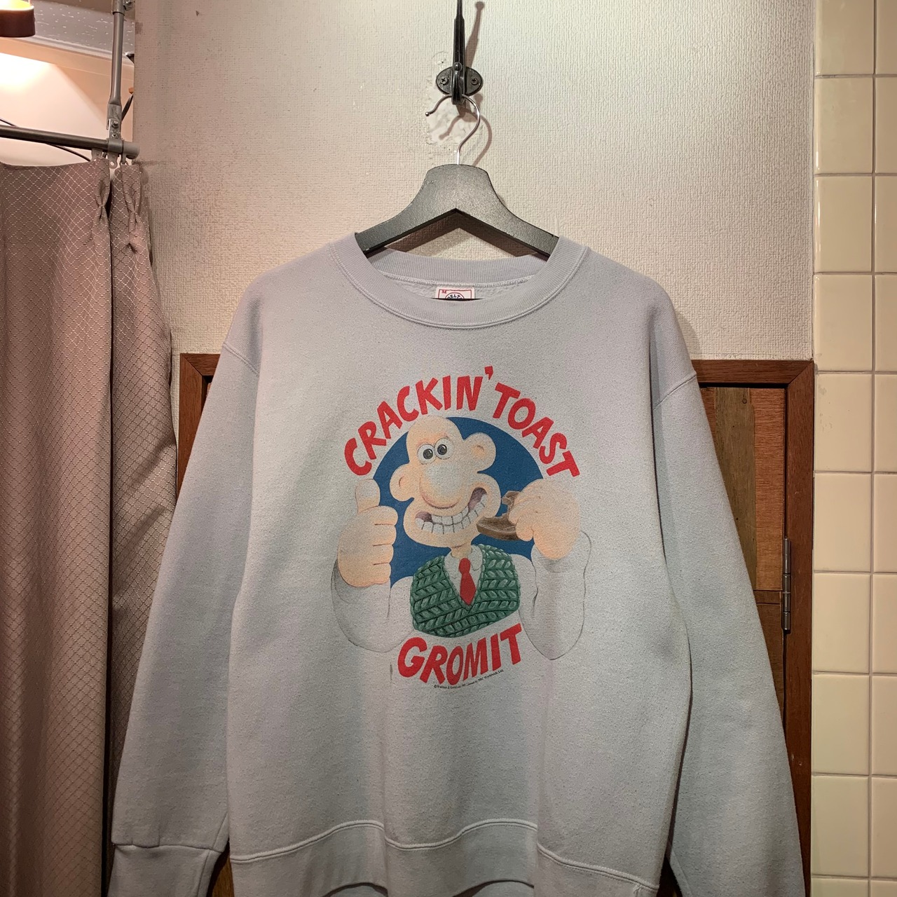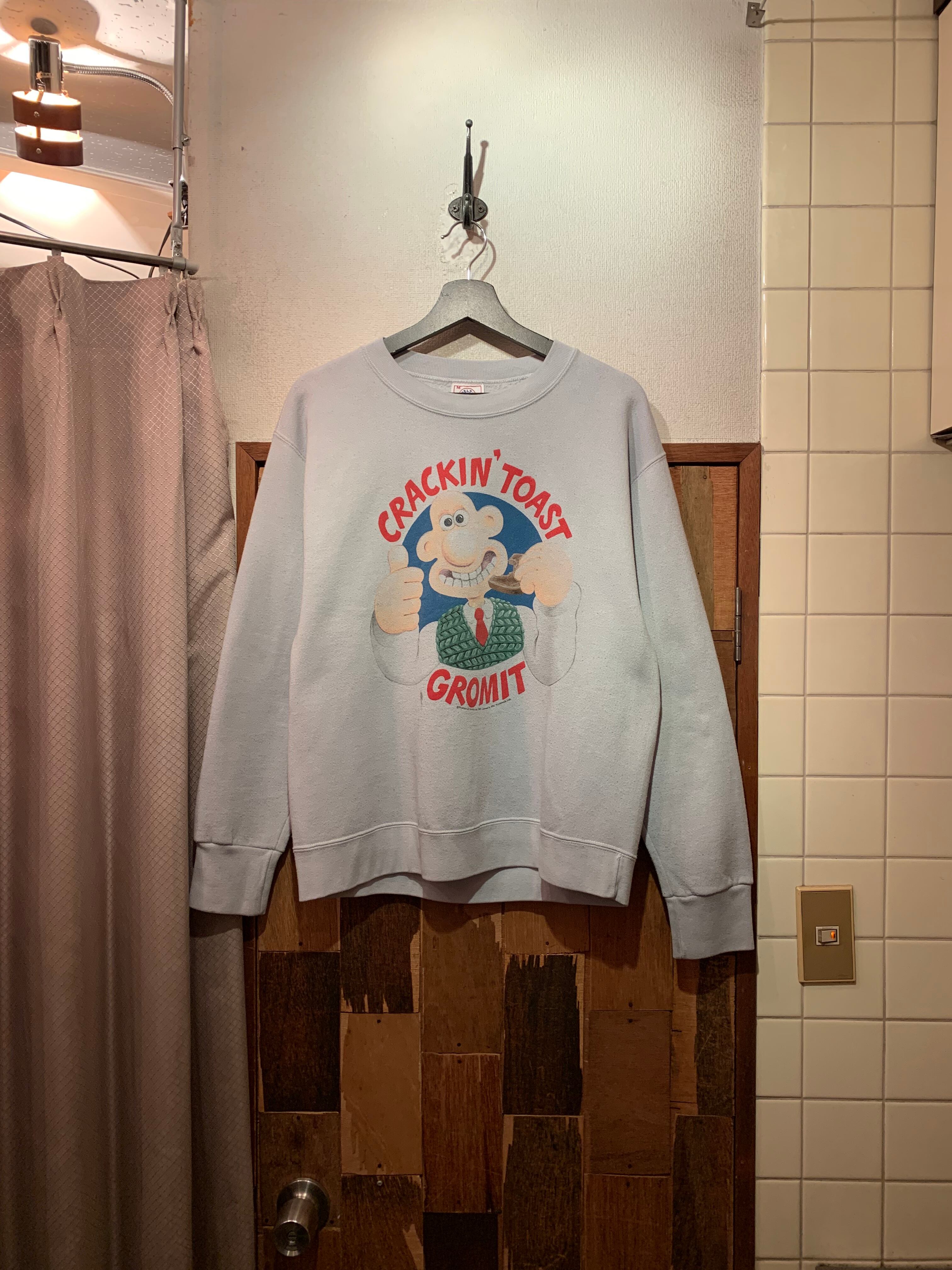 “DELTA” 90’s「Wallace&Gromit」 ice gray cotton/poly printed sweat made in USA