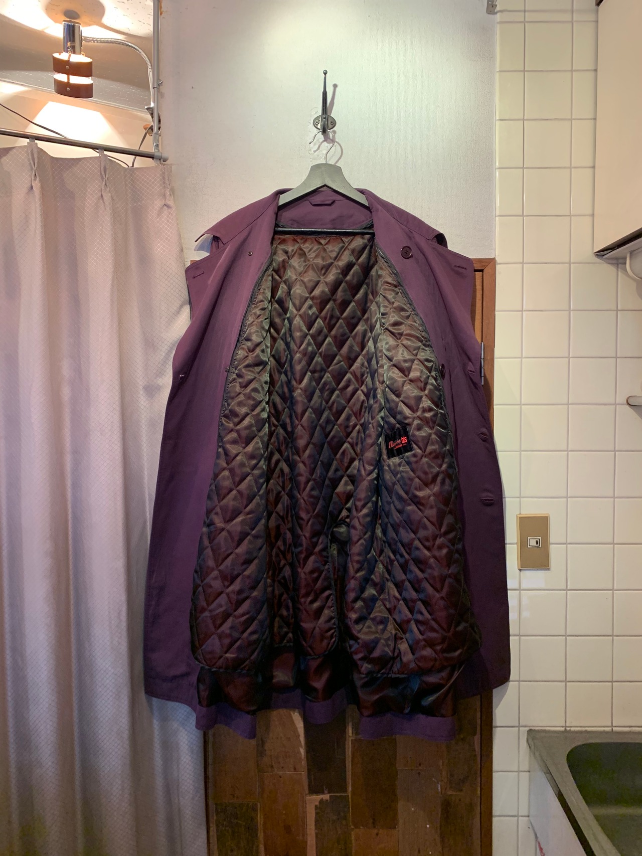 “dorothee bis” dark purple polyester design trench coat with iridescent color quilting liner