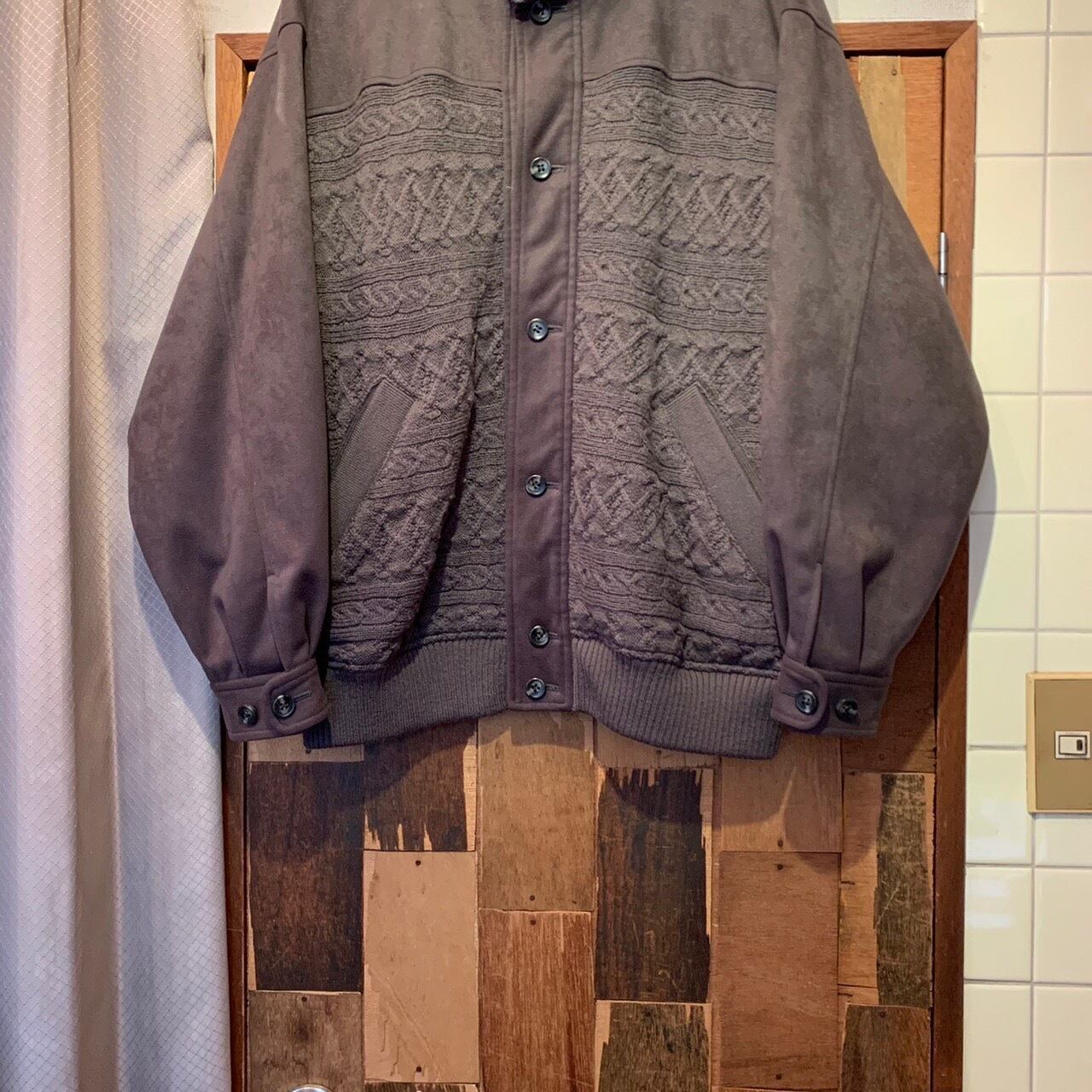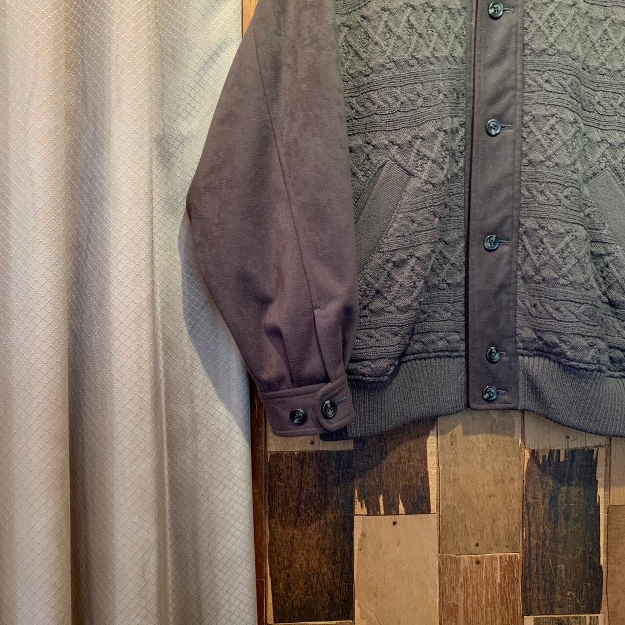 “LeCENT” charcoal gray poly/wool switch knit design stand-collar jacket