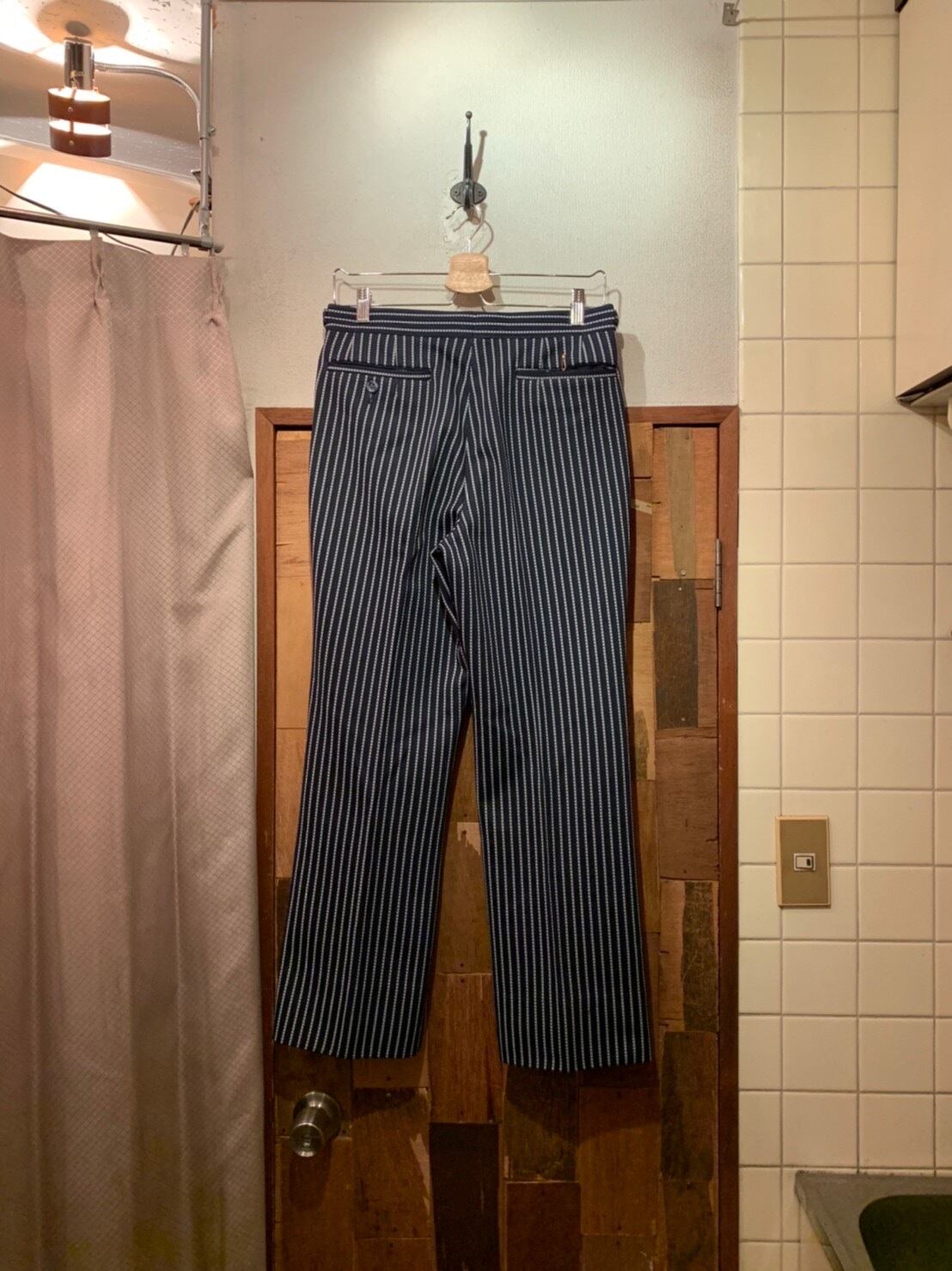 “brand unknown” dark navy×white unique stripe pattern tuck less slacks