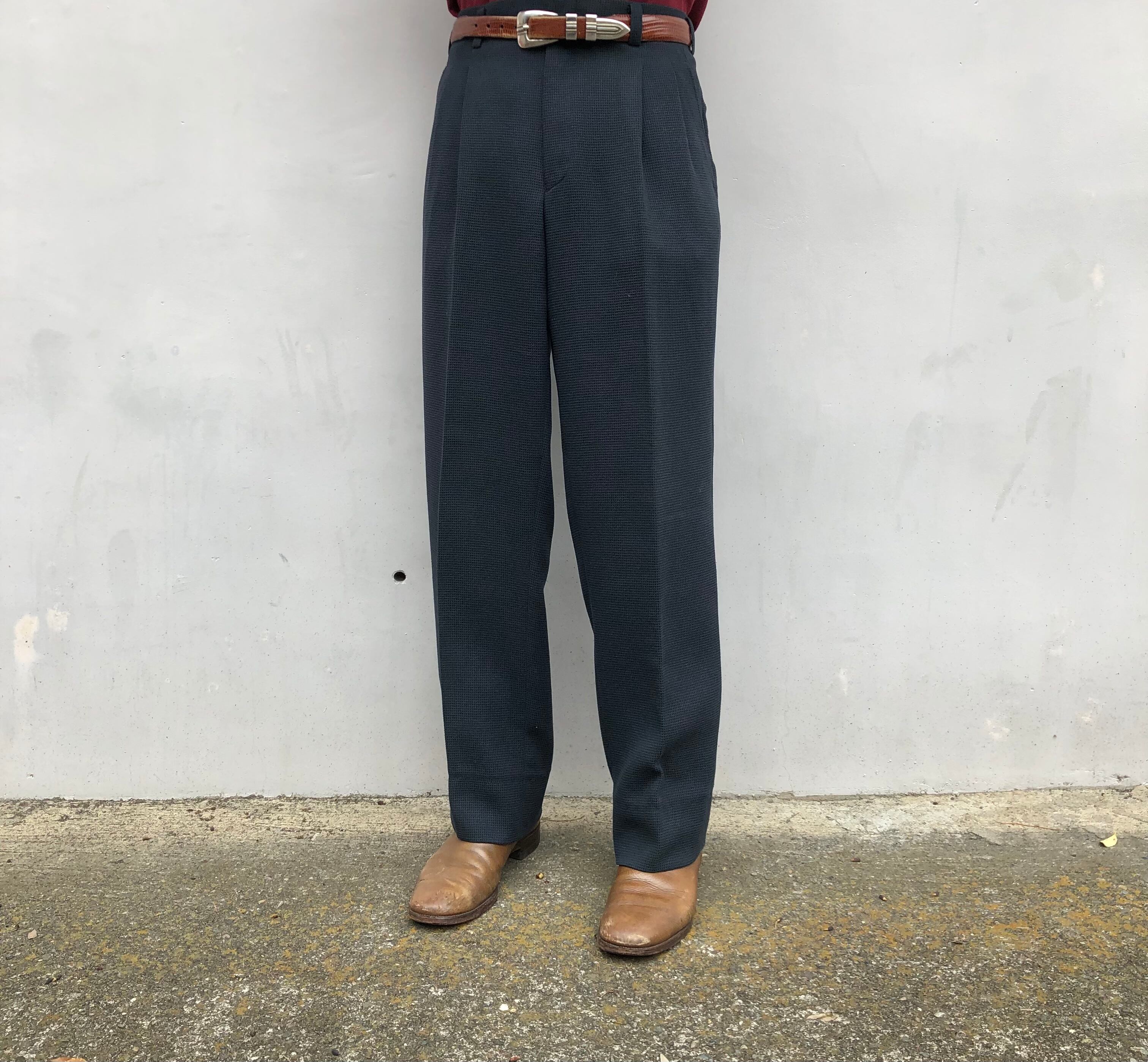 “brand unknown” navy triacetate/poly unique pattern 2tuck slacks