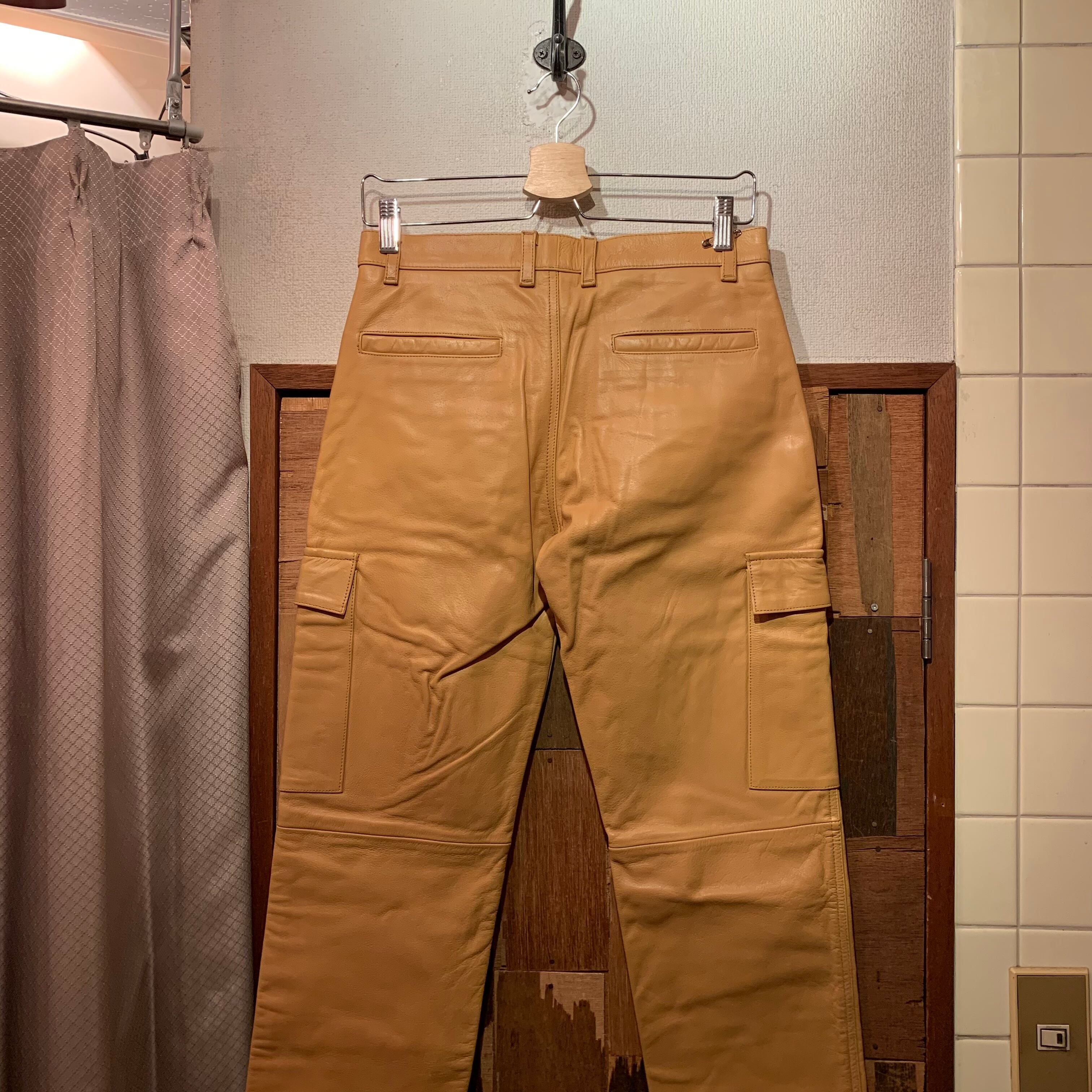 “dual” yellow beige cow leather cargo pants