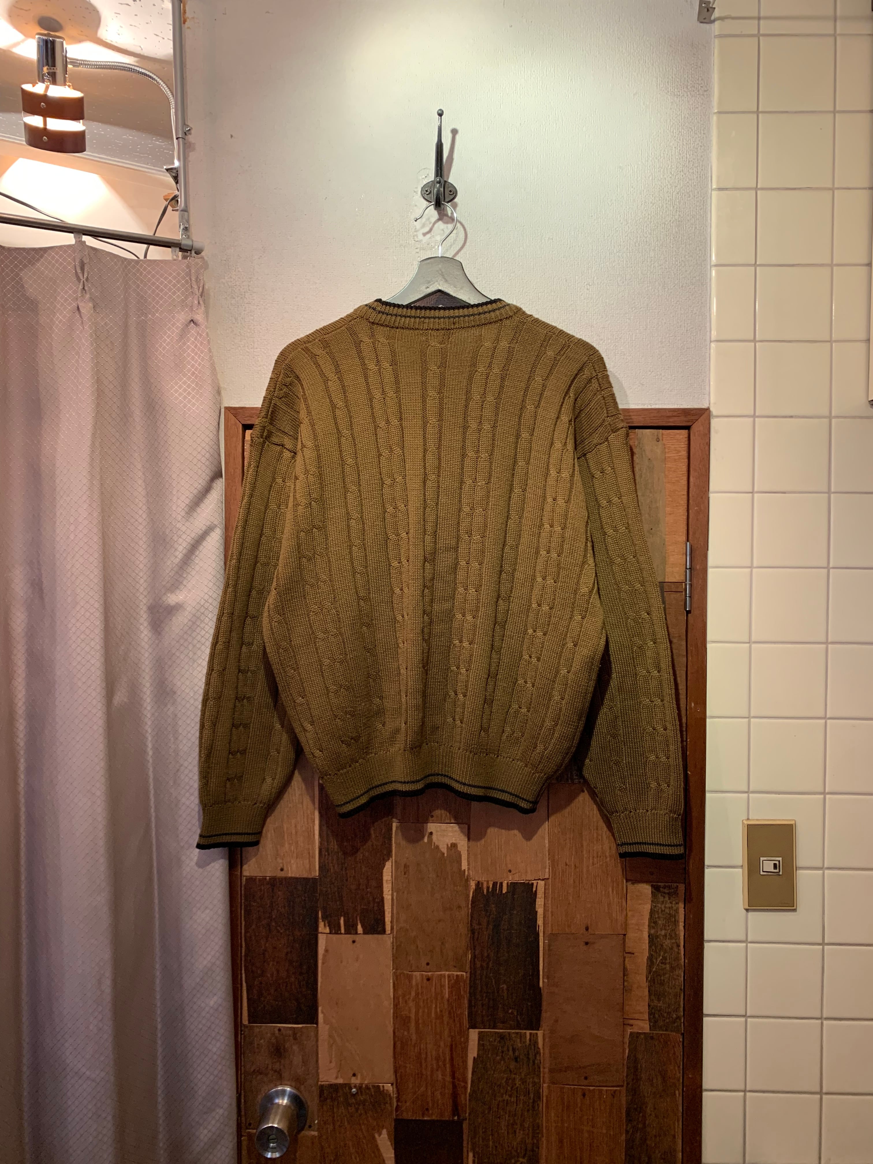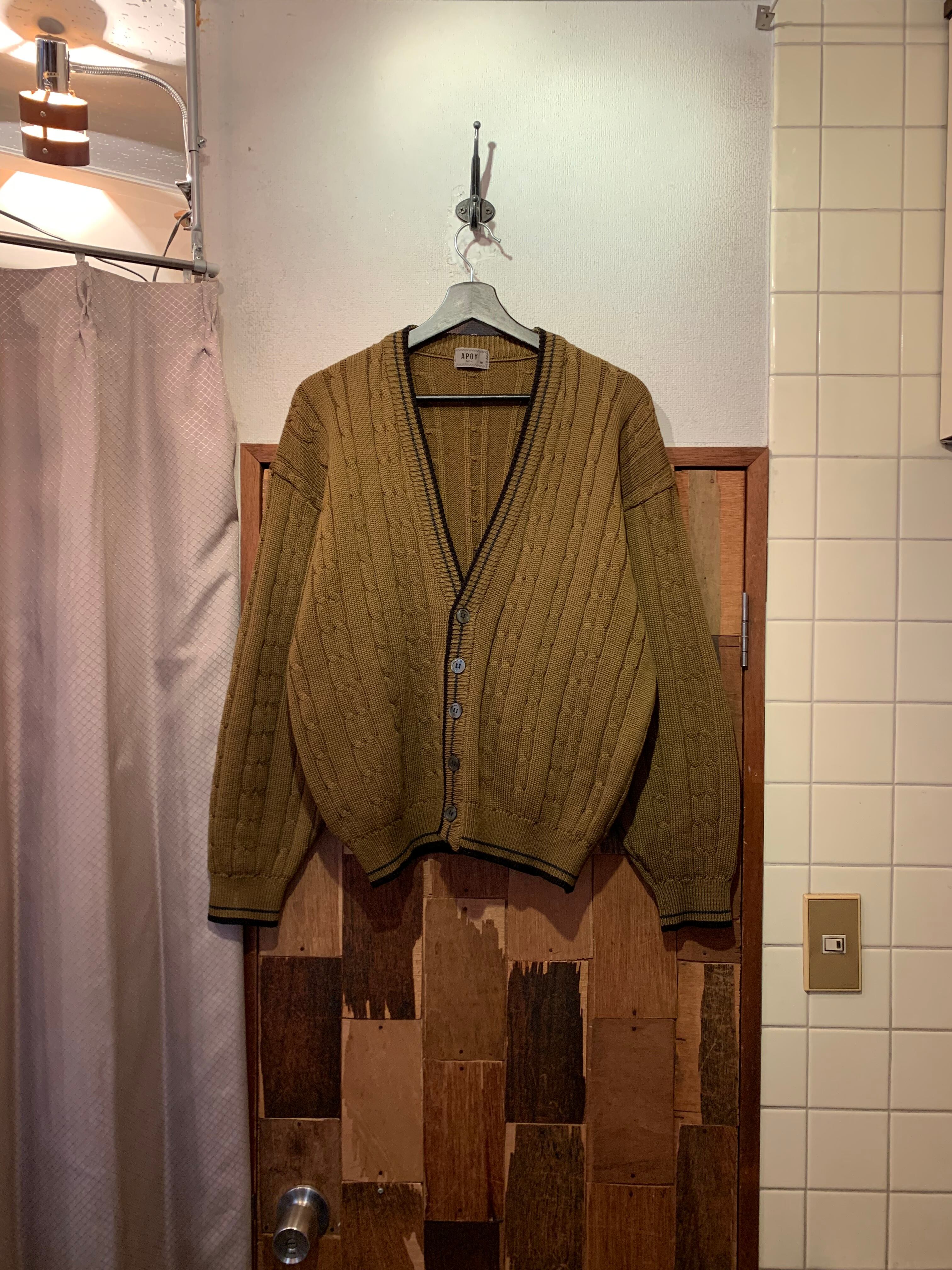 “APOY” khaki brown×black acrylic/wool cable knit cardigan