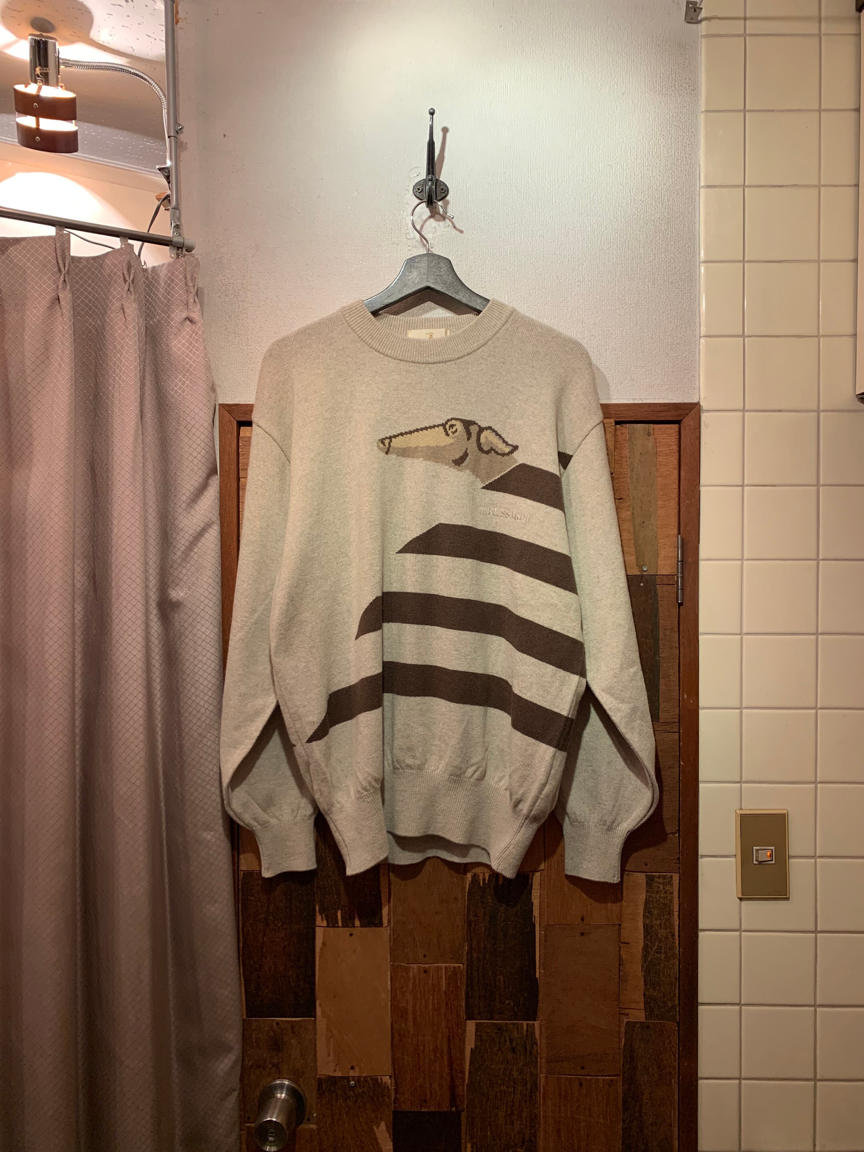 “TRUSSARDI” greige cashmere unique pattern knit sweater