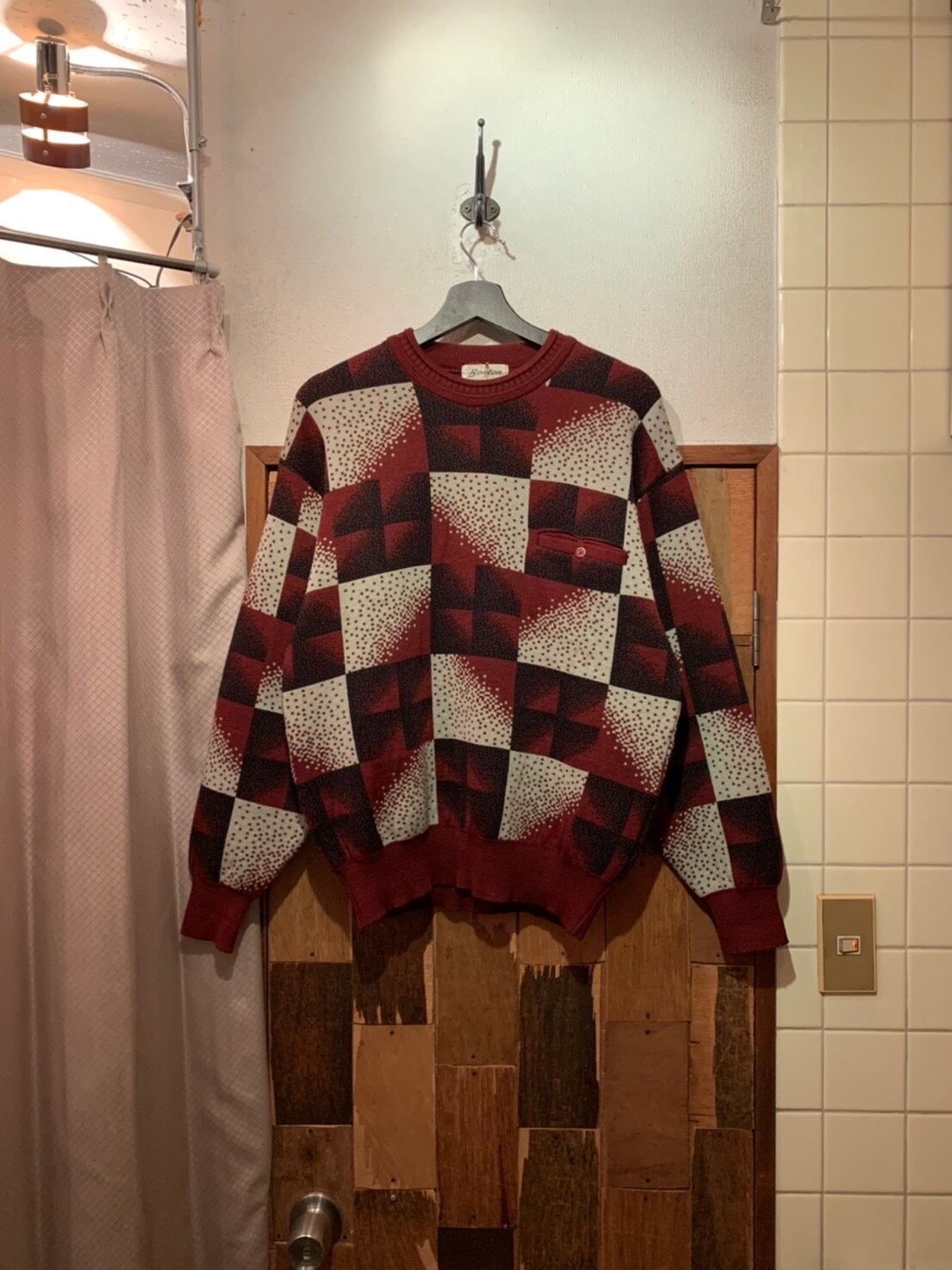 “bonton” red×black×white acrylic×wool pocket design unique pattern knit sweater