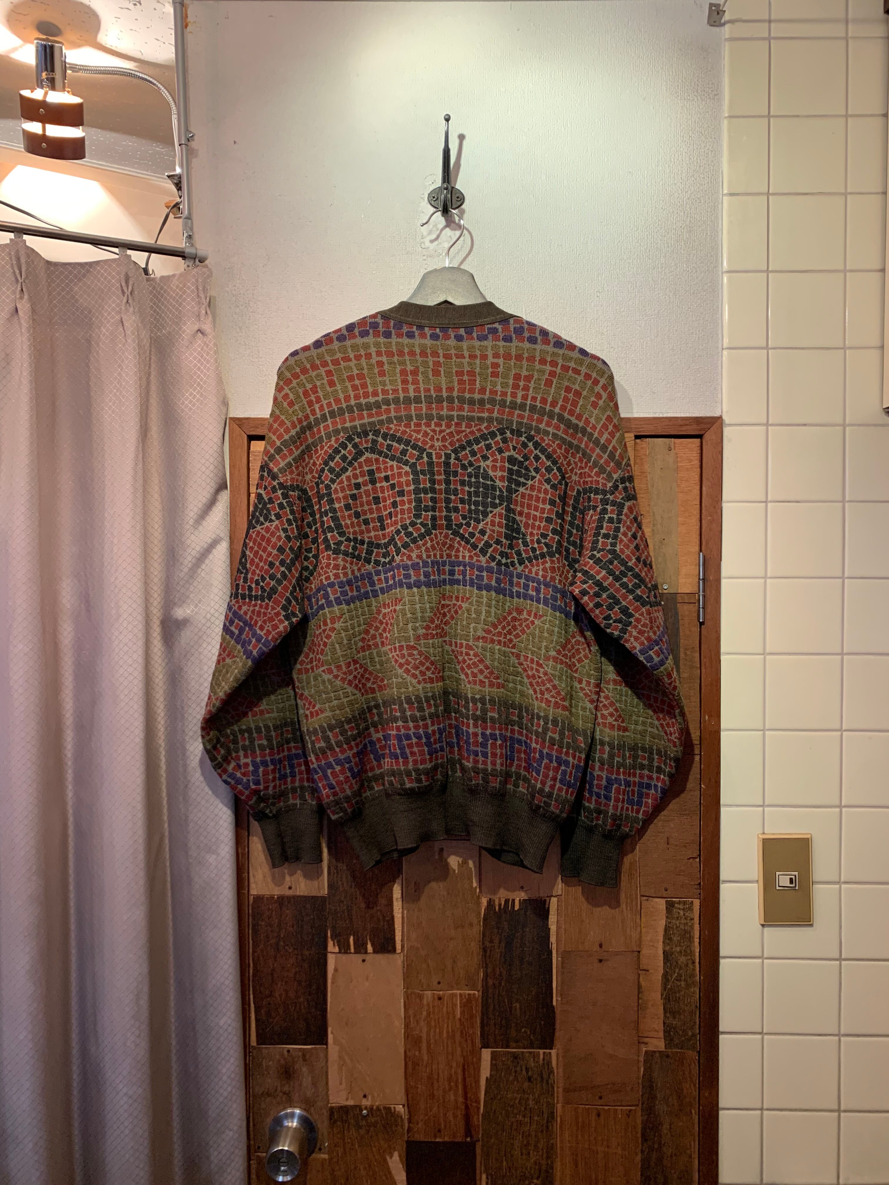 “GIVENCHY” 90’s multi color wool unique pattern knit cardigan made in ITALY