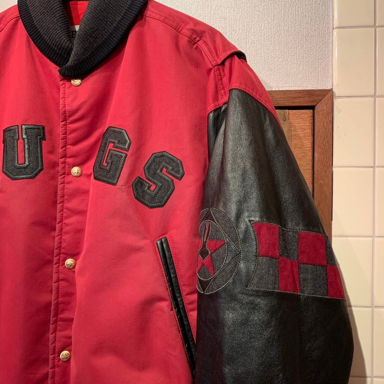 “ICEBERG” 「©︎1993」red×black×charcoal gray cotton switch leather design stadium jumper