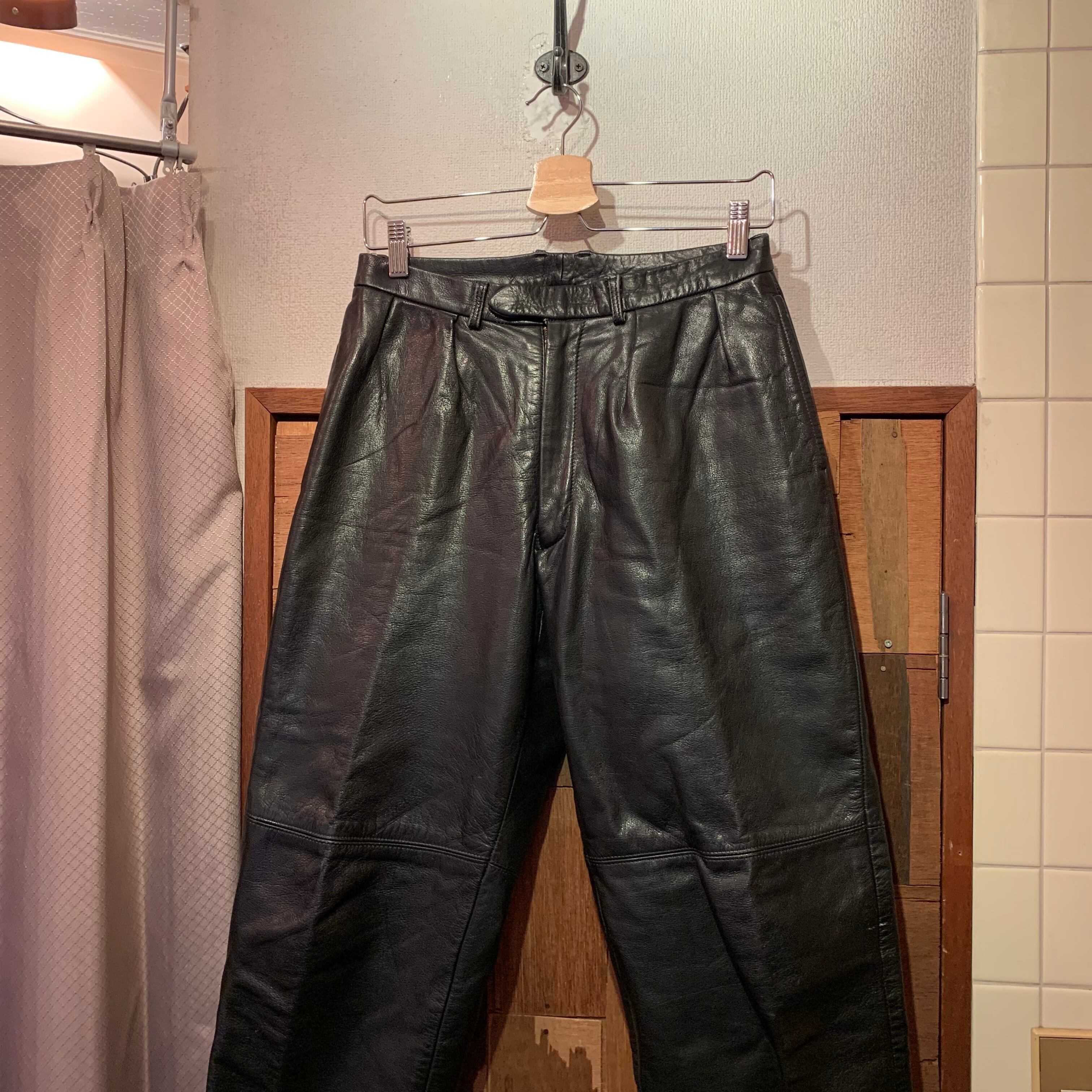 “brand unknown” black leather 2tuck pants