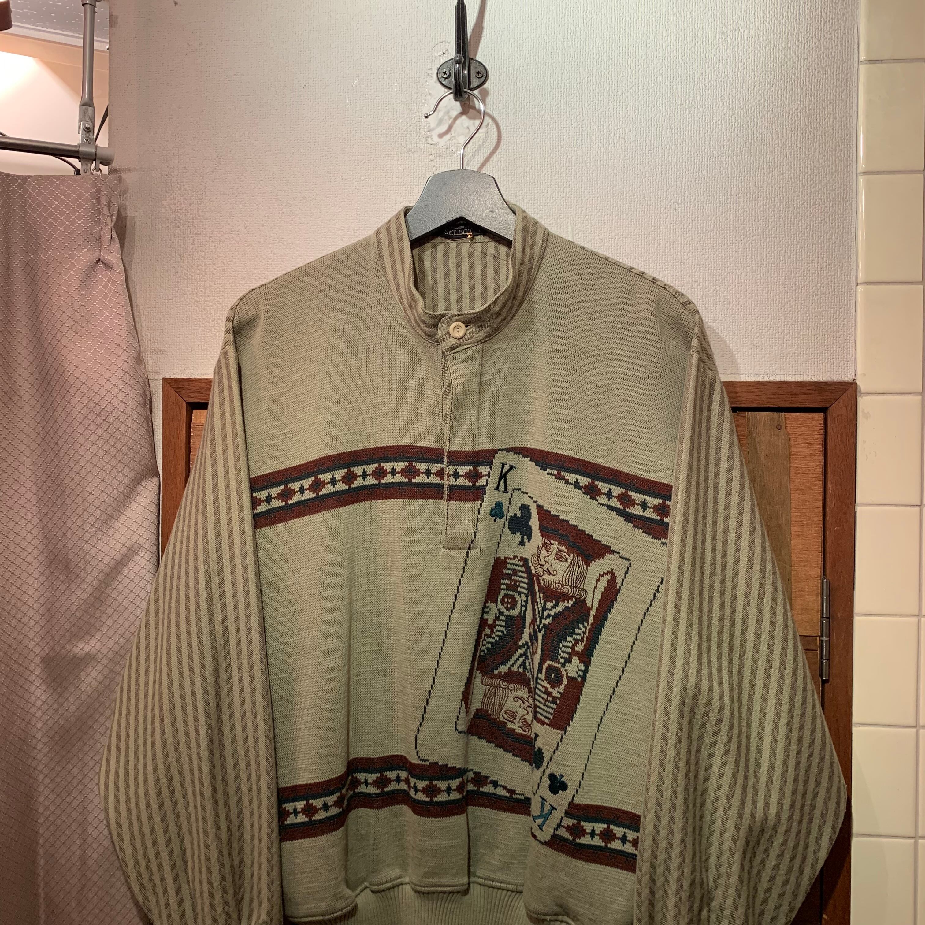 “SELECT” greige acrylic/wool trump pattern design pullover knit sweater