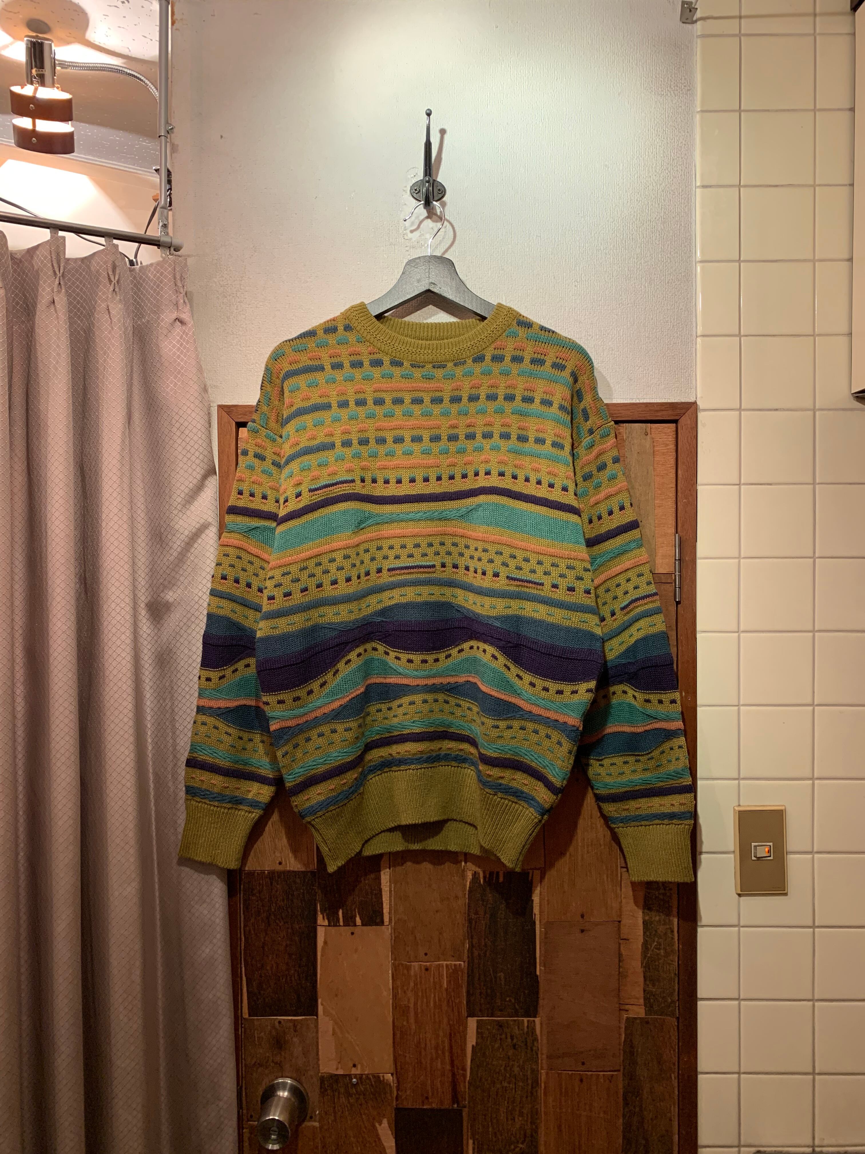 “Del-Conte” olive acrylic/wool unique pattern knit sweater