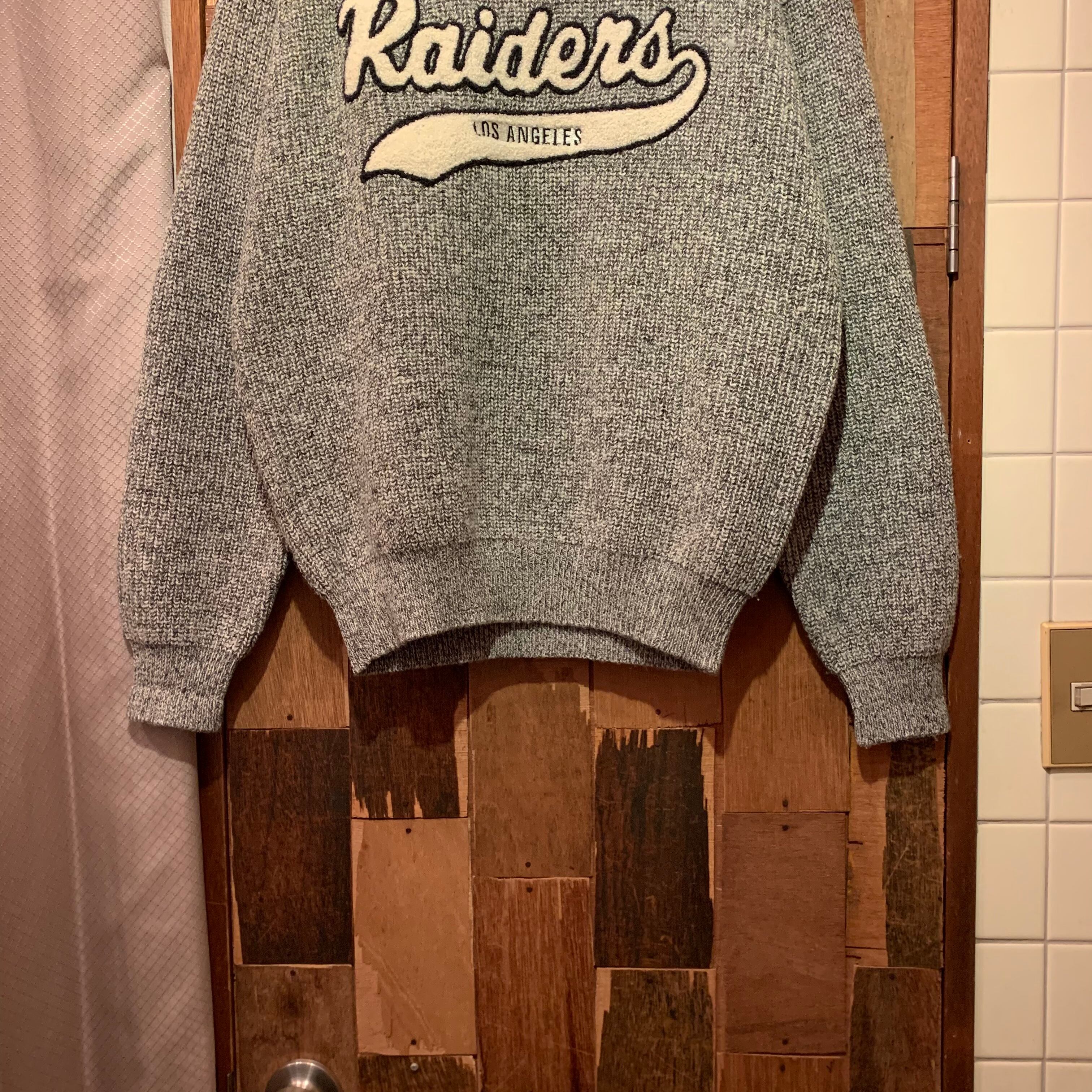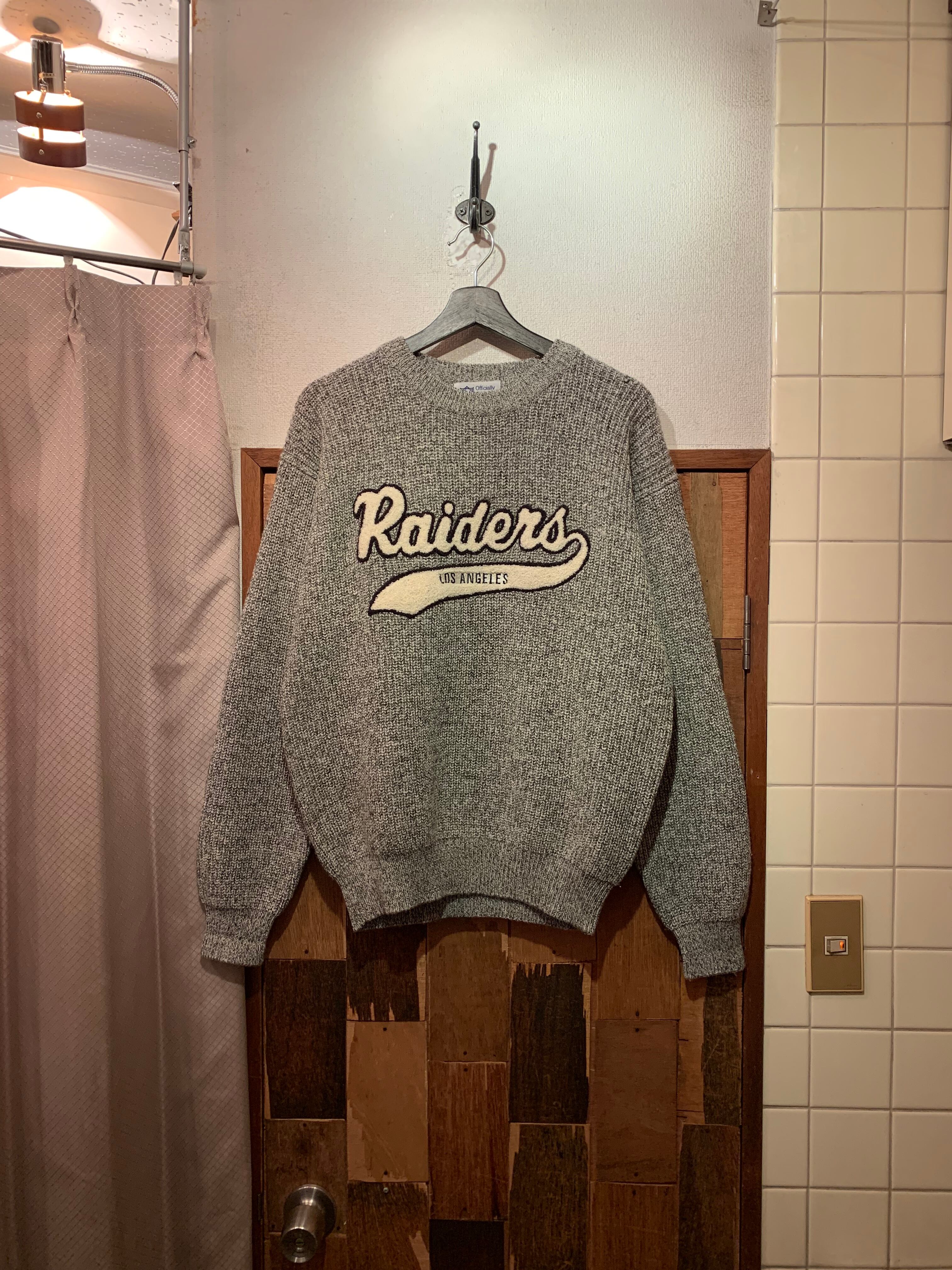 “NFL” 「Raiders」 gray wool/cotton wappen design knit sweater