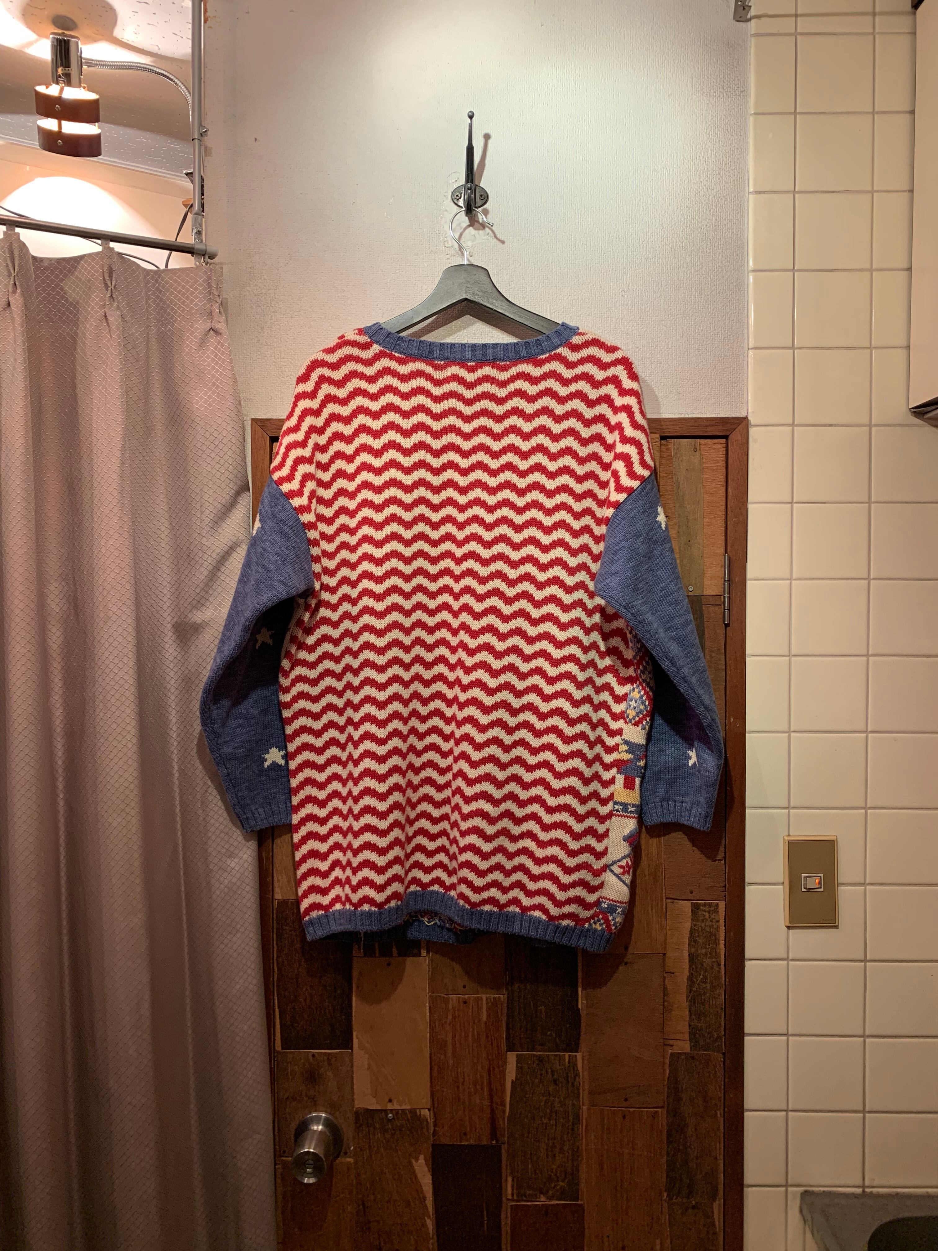 “CAMBRIDGE” ~90’s multi color cotton/ramie unique pattern Hand knit sweater