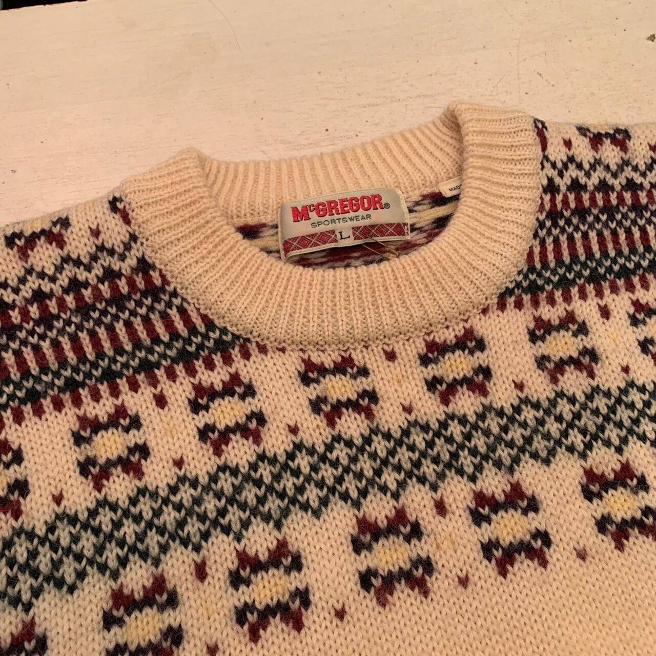 “McGREGOR” ivory×navy×burgundy wool animal pattern knit sweater