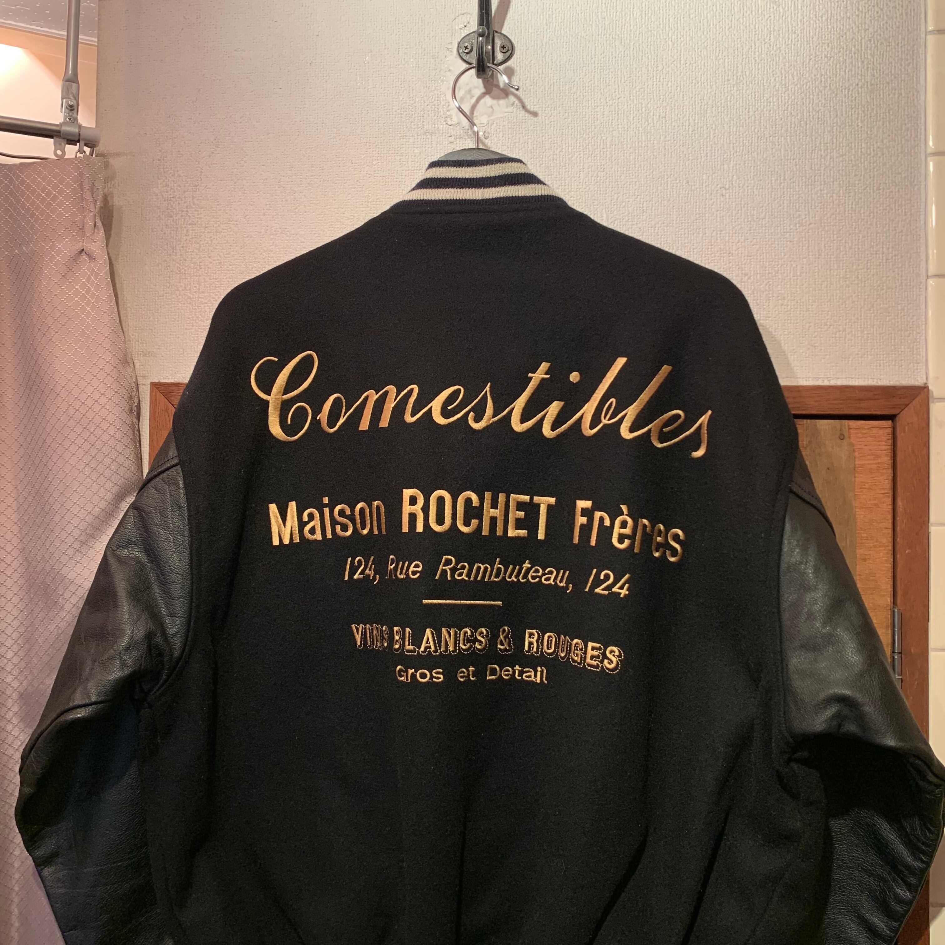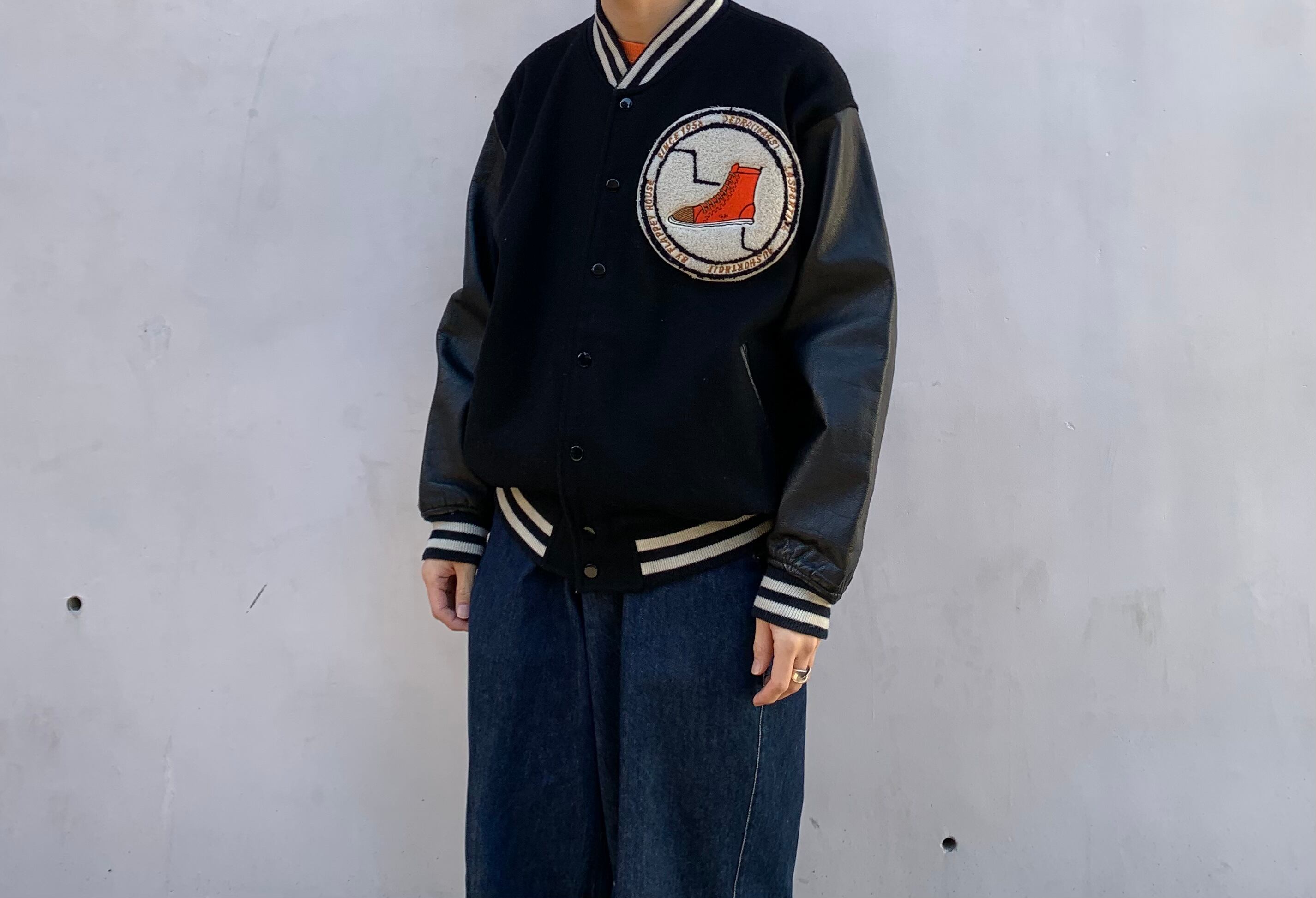 “AZALEE” black base wool×sleeve leather stadium jumper