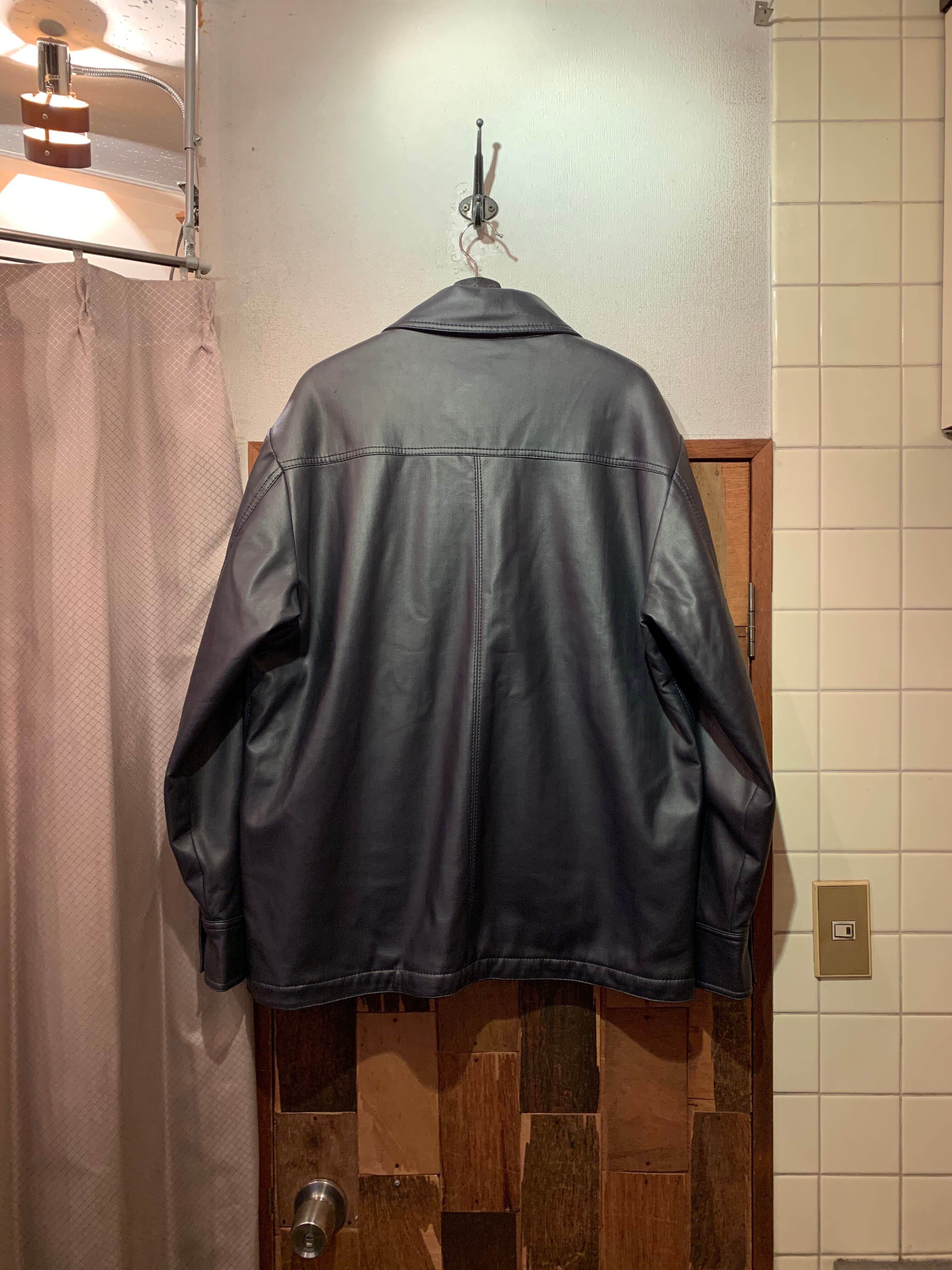“Weather Watcher” 80’s charcoal vinyl open-collar shirt jacket inner boa
