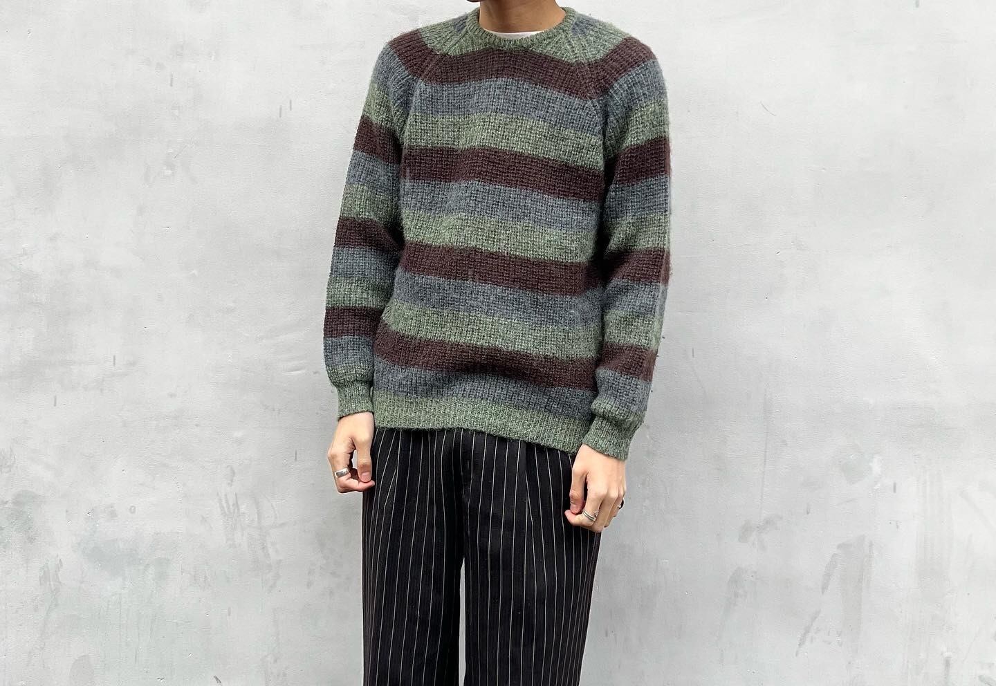 “McGREGOR” multi color wool/nylon border pattern knit sweater