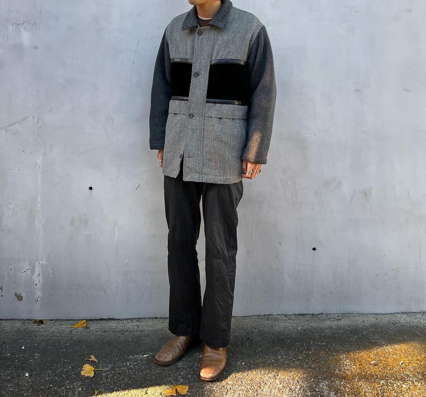 “CIMCA” gray base wool/nylon/poly/acrylic switch design jacket inner quilting