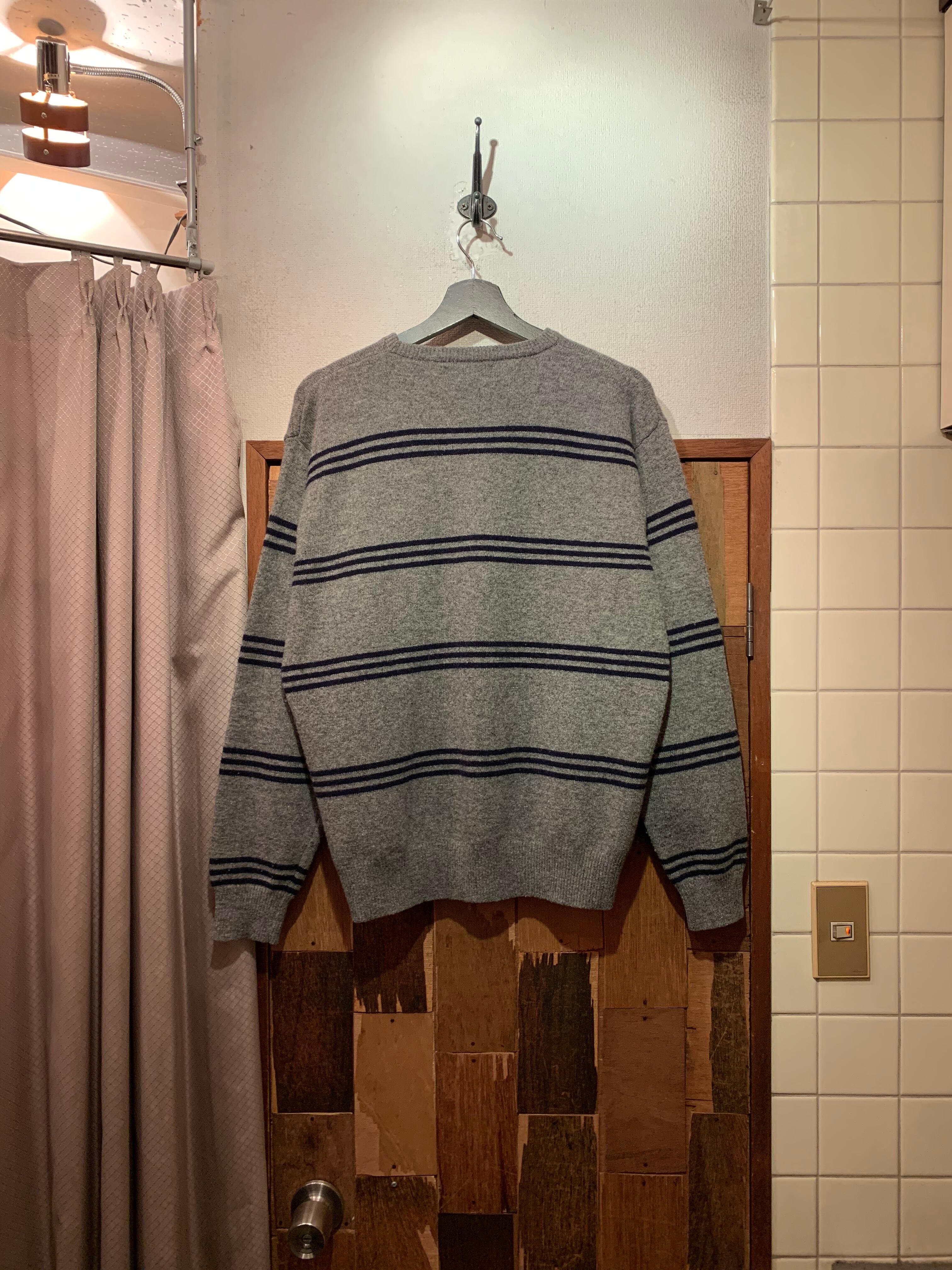 “Polo by Ralph Lauren” gray wool border pattern point logo knit sweater