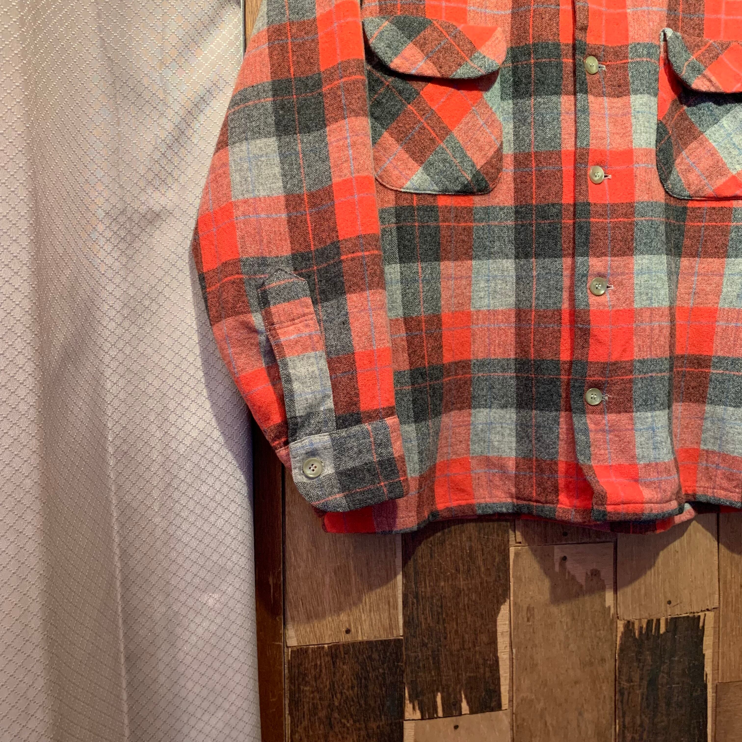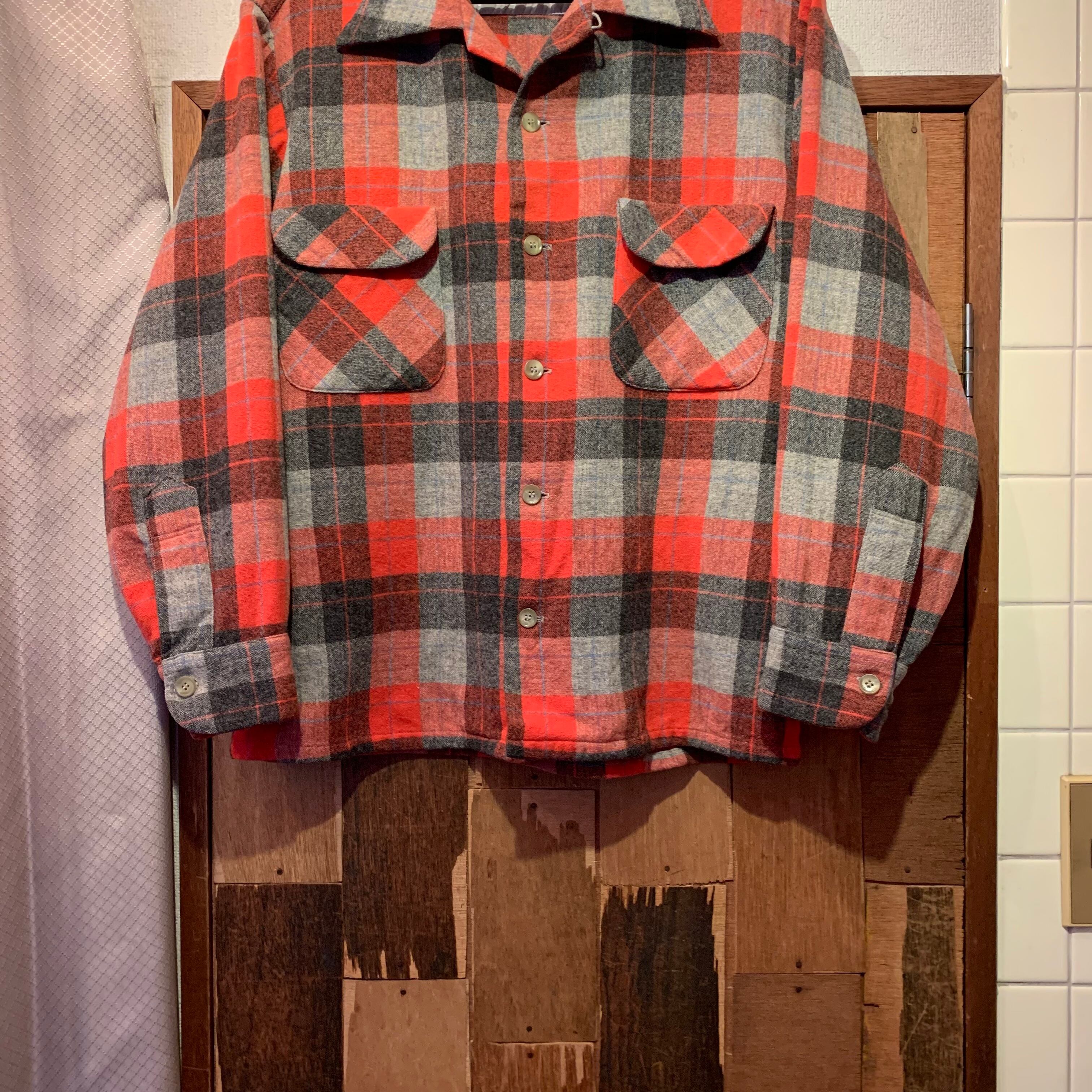 “PENDLETON” 60's~vintage red×charcoal black×gray base wool check pattern L/S shirt