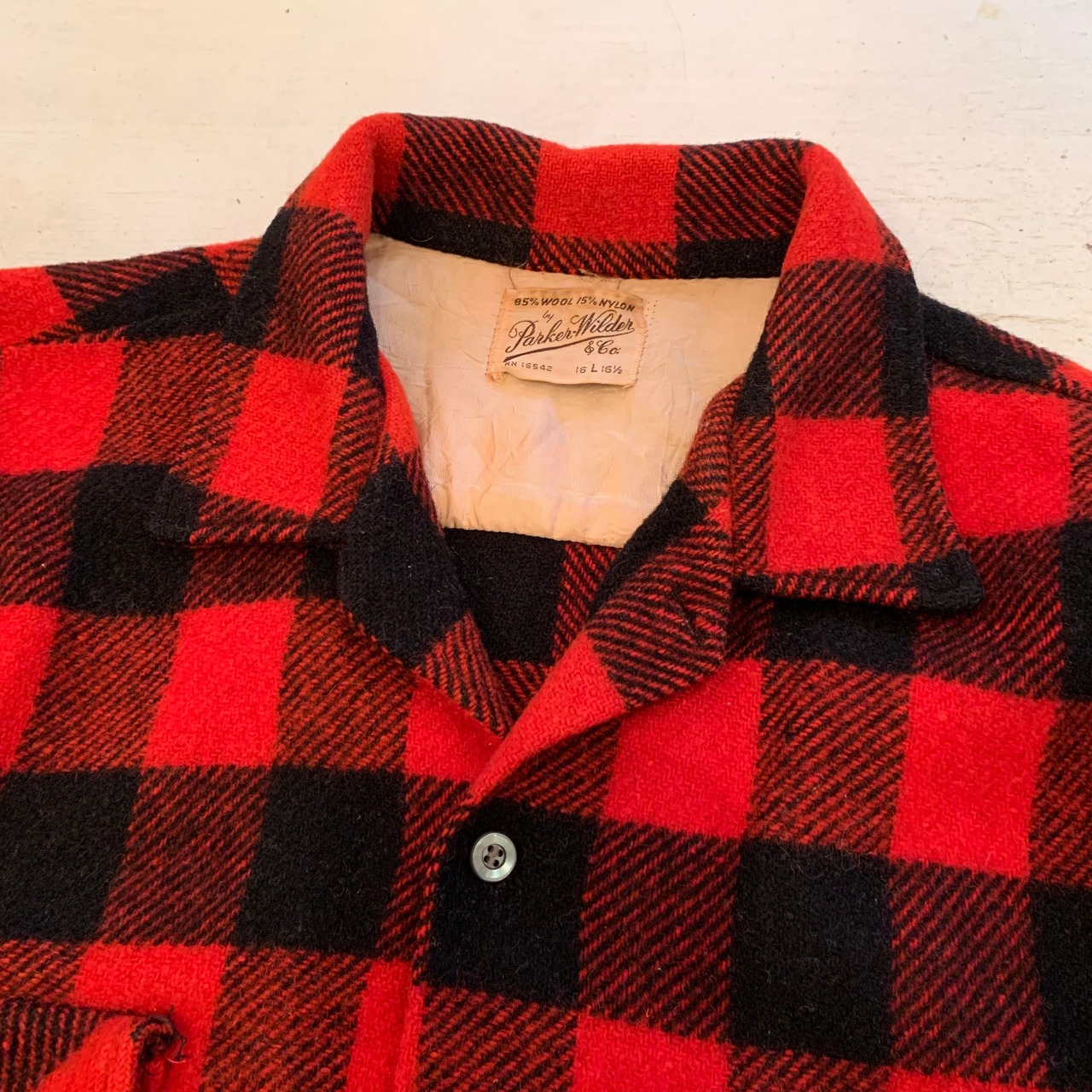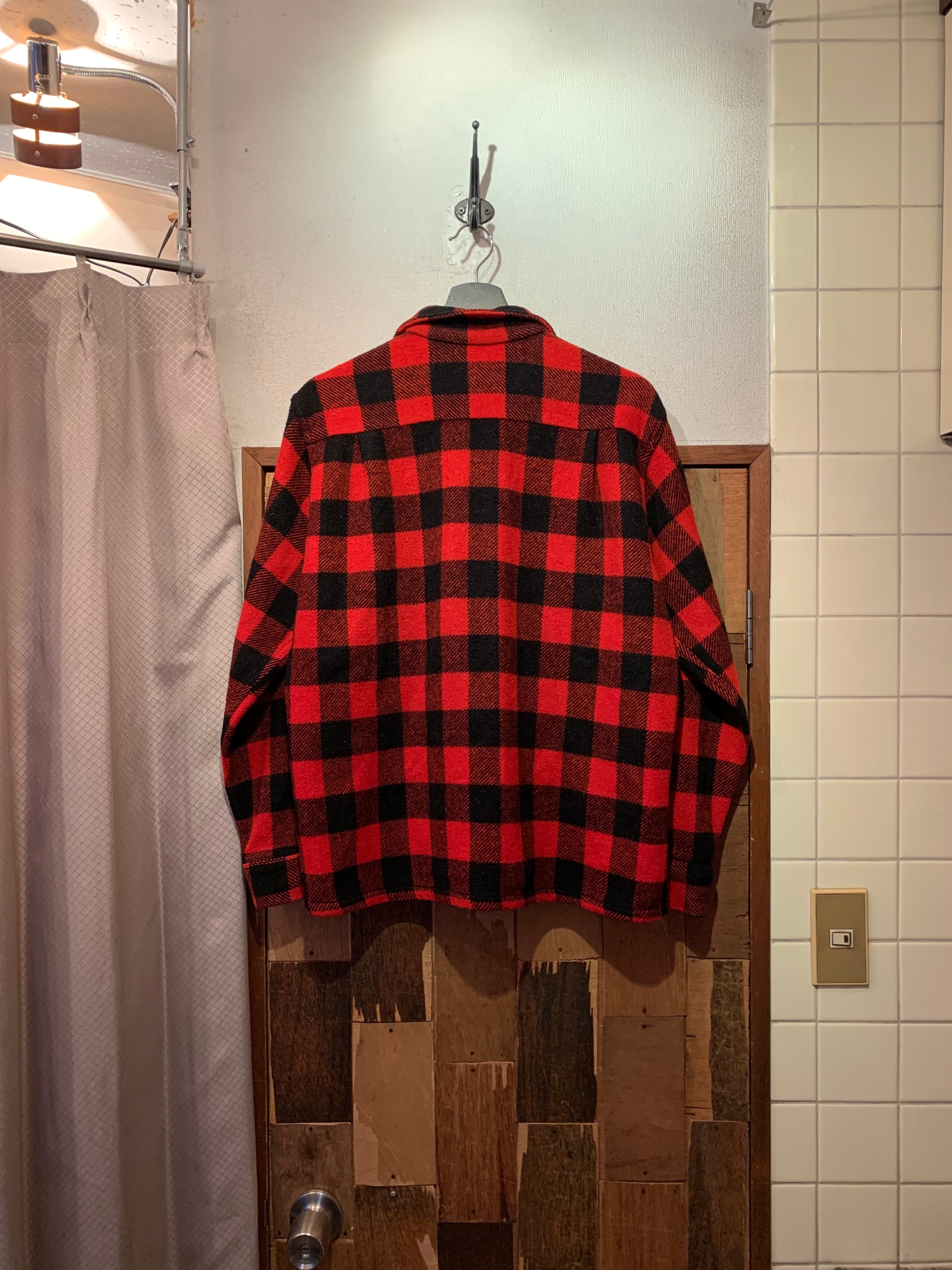 “Parker Wilder” 50's vintage red×black wool/nylon check pattern L/S shirt