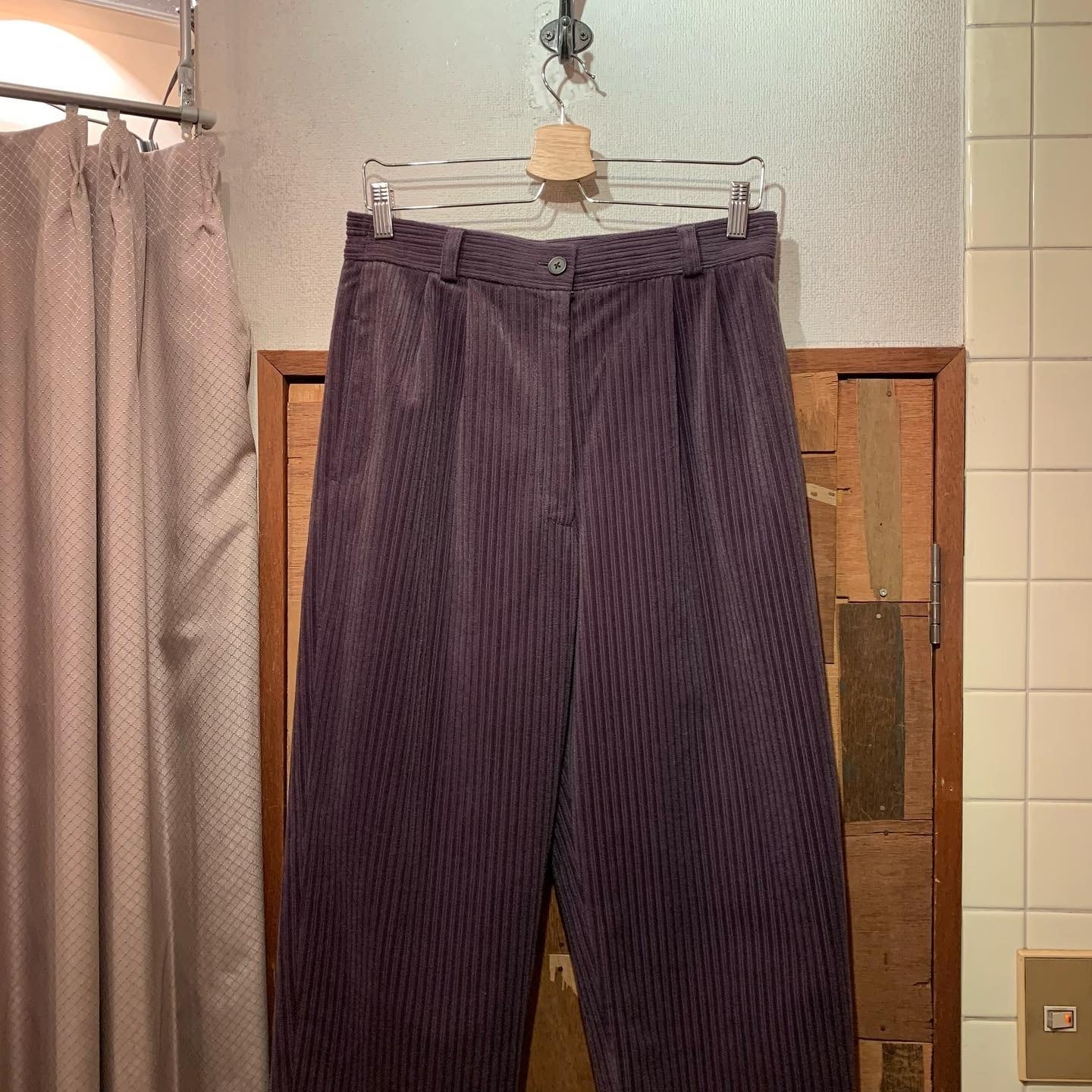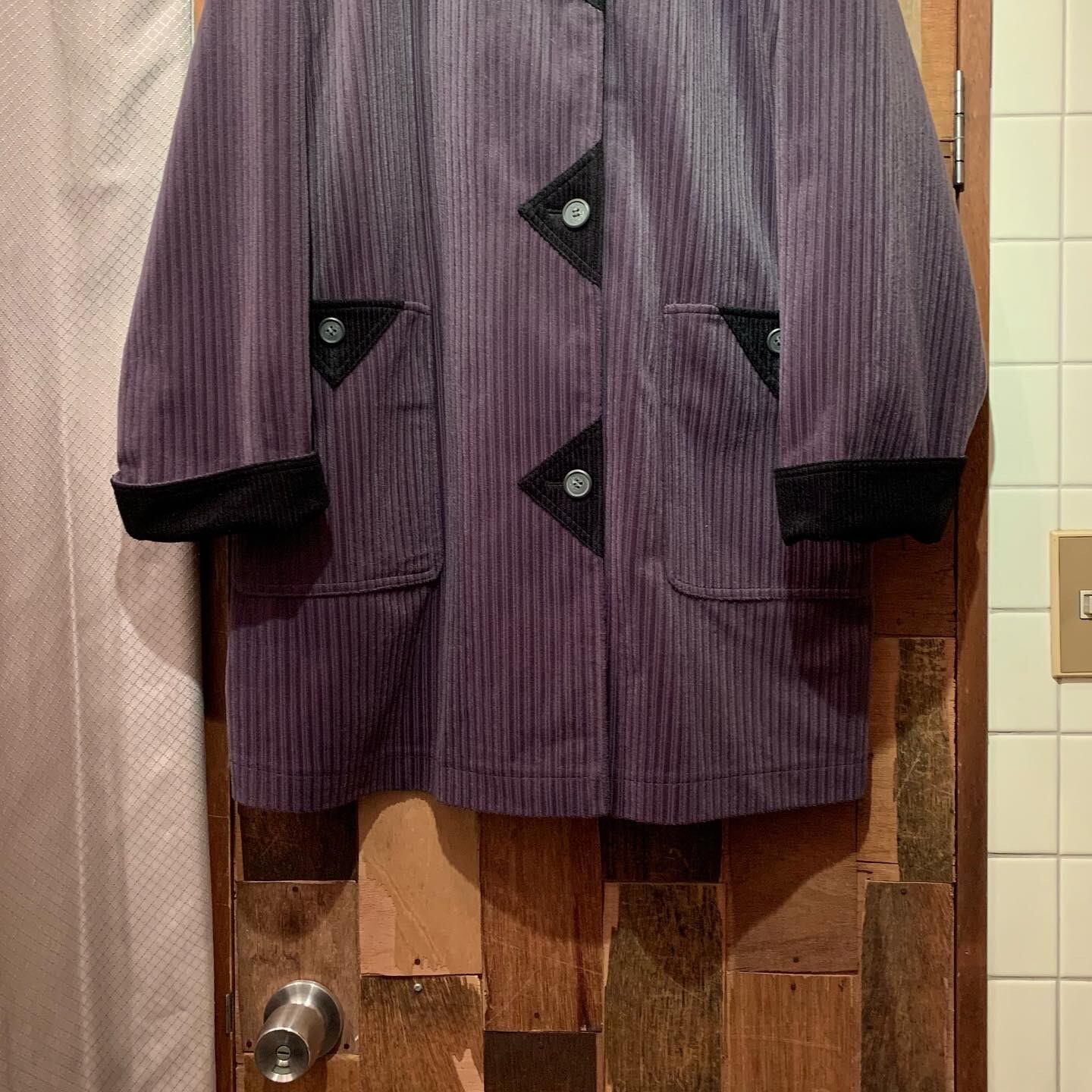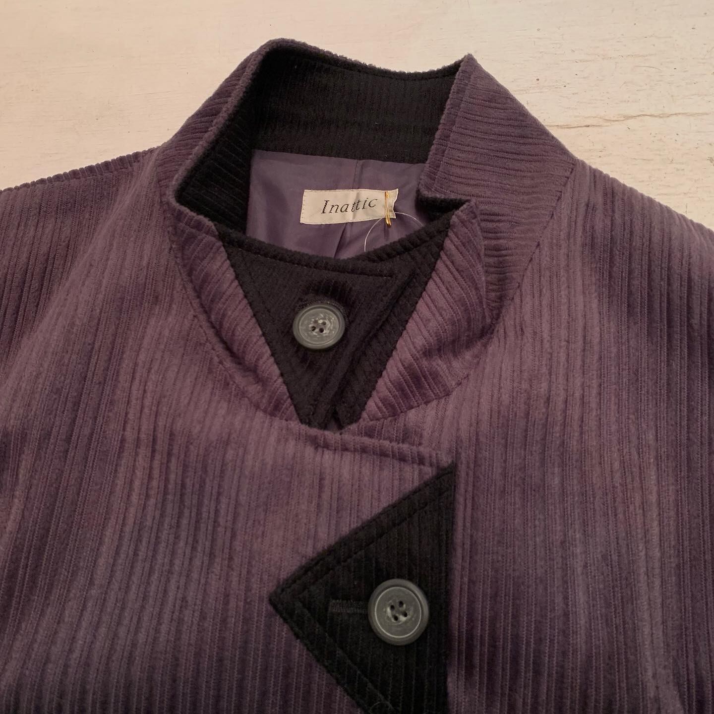 “lnattic” charcoal brown×black polyester 2way-collar half-coat×2tuck slacks wide wale corduroy set-up