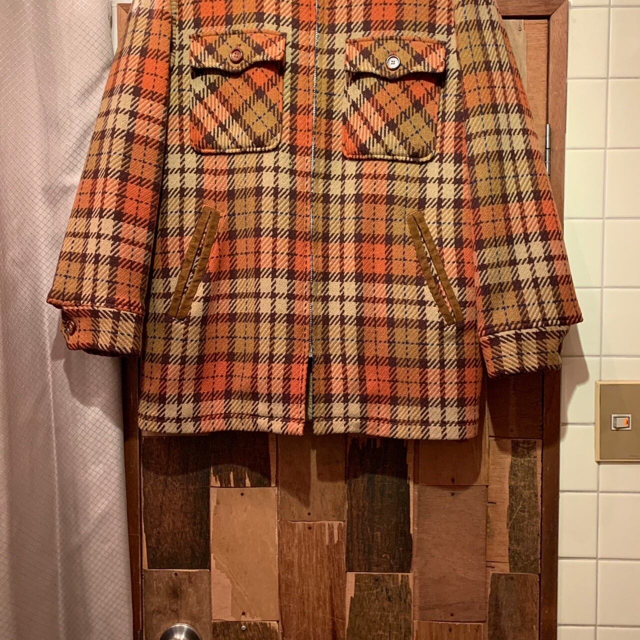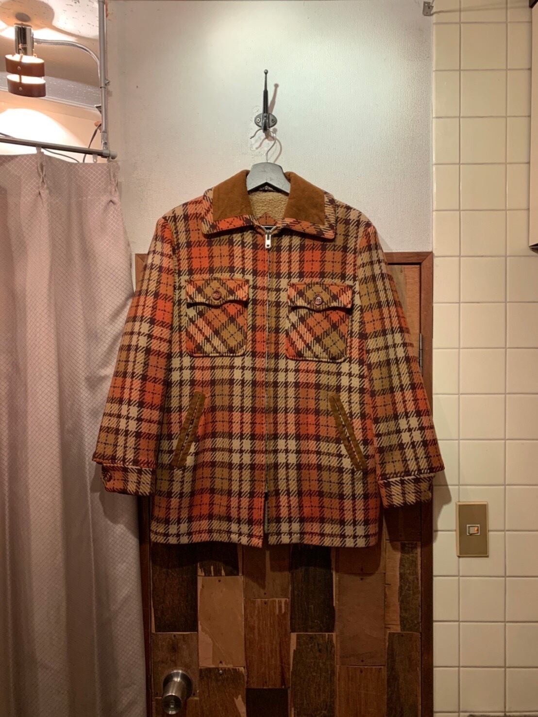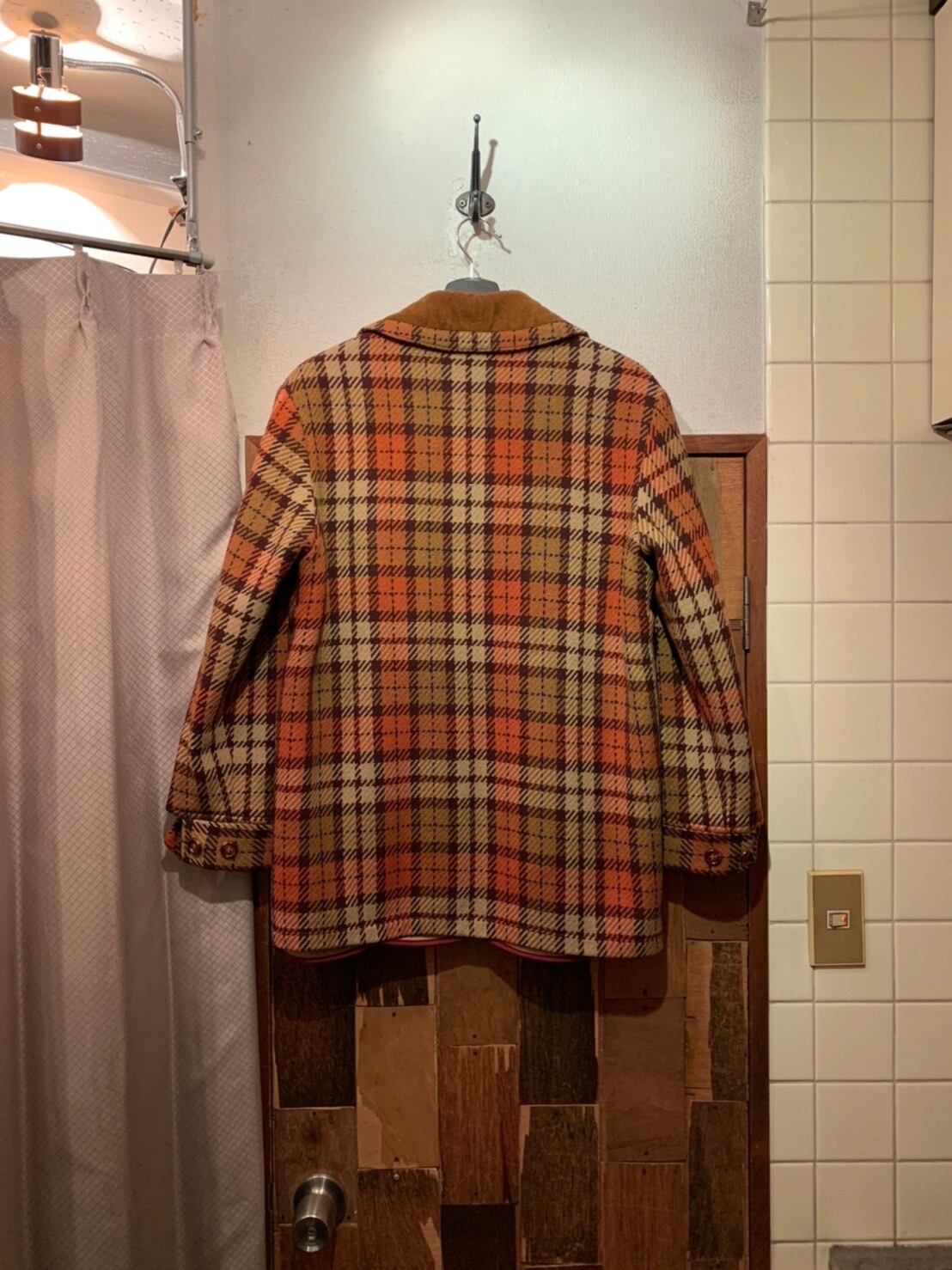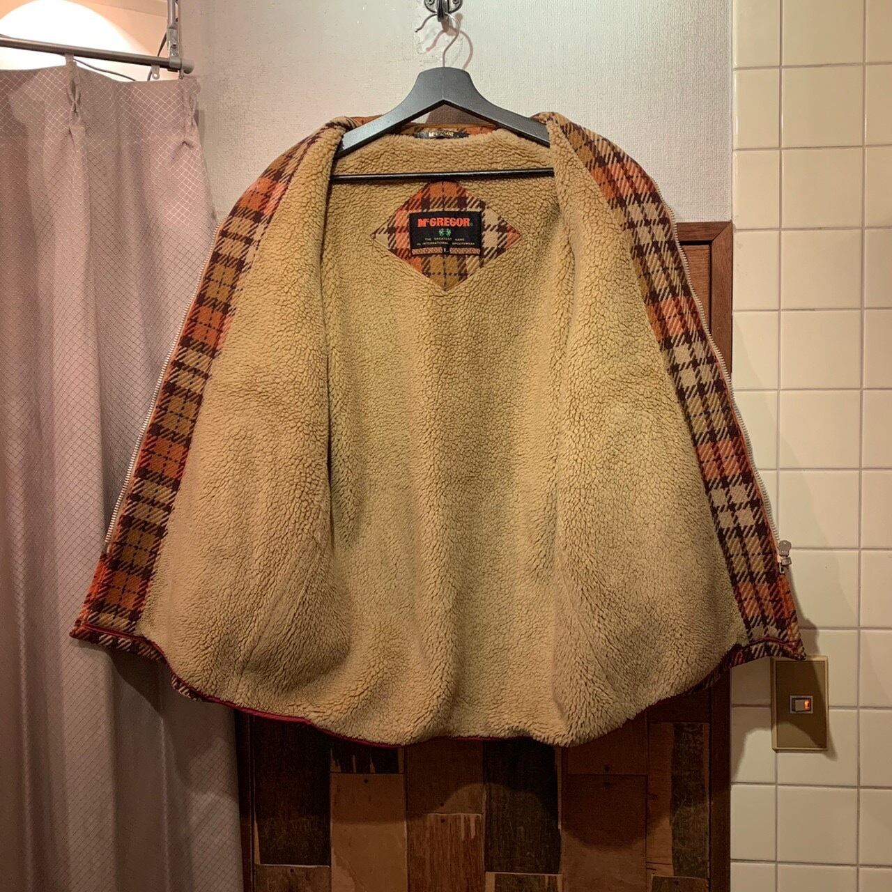 “McGREGOR” 80's brown×orange base wool nylon check pattern boa jacket