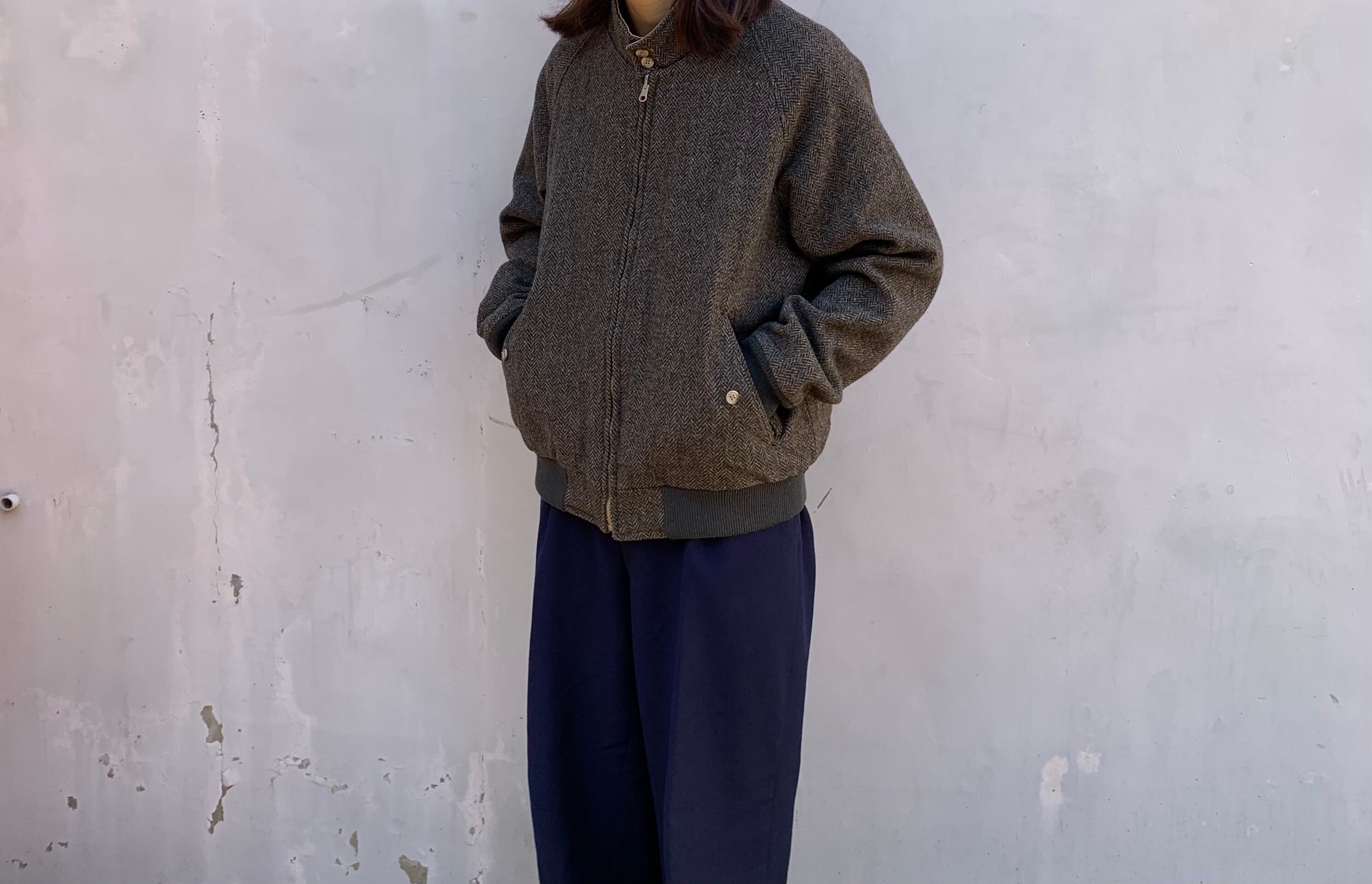 “LAND'S END” 80's~ made in U.S.A 「G-9 type」 dark brown×beige wool/nylon/cotton herringbone zip-up reversible blouson