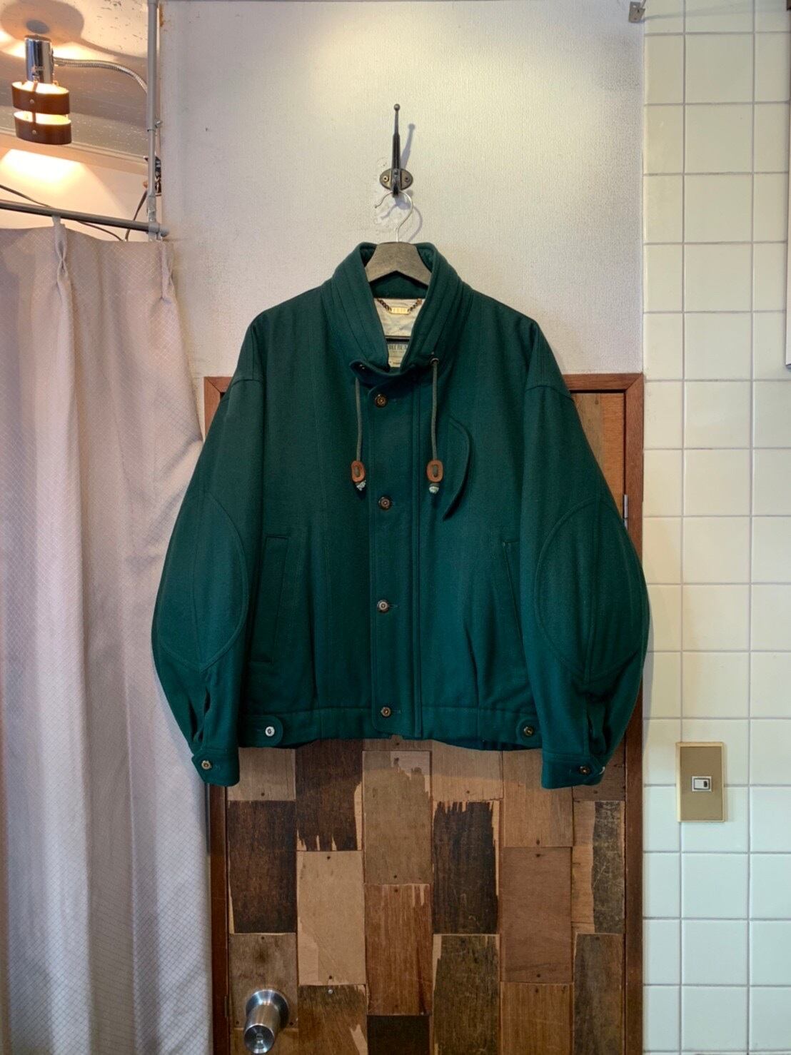 “BILL BRASS” 「inner-quilting」 dark green wool/nylon zip&button design stand-collar blouson
