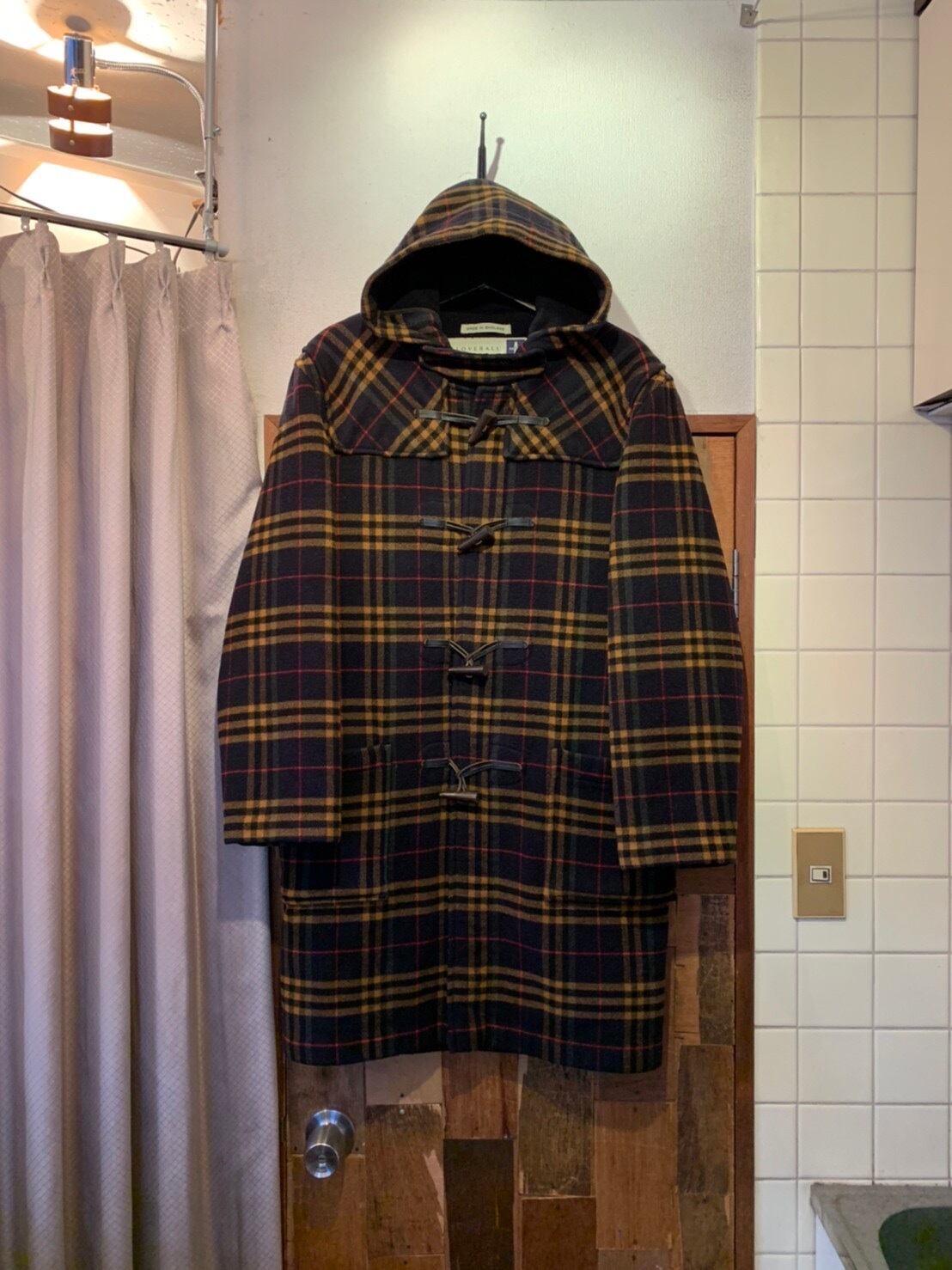 “GLOVERALL” made in ENGLAND dark navy×yellow×red base wool/nylon check pattern duffle coat