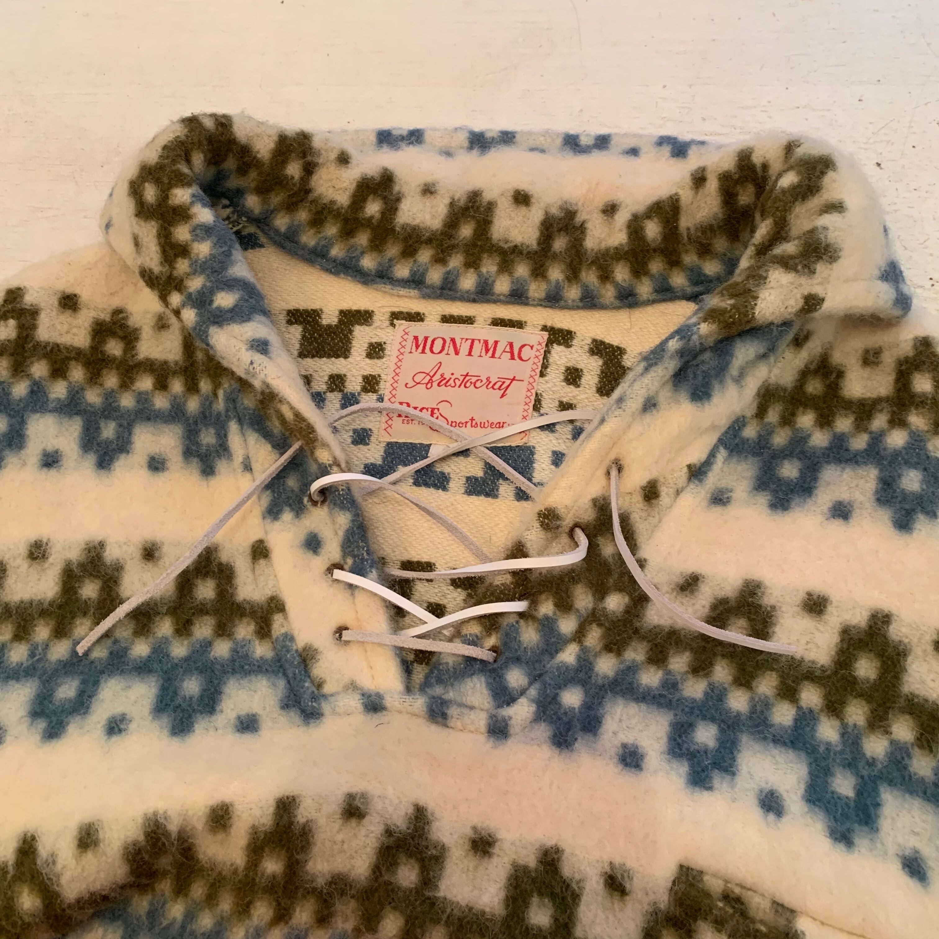 “MONTMAC” 60's~vintage white×dark gray×blue wool lace-up pullover shirt jacket