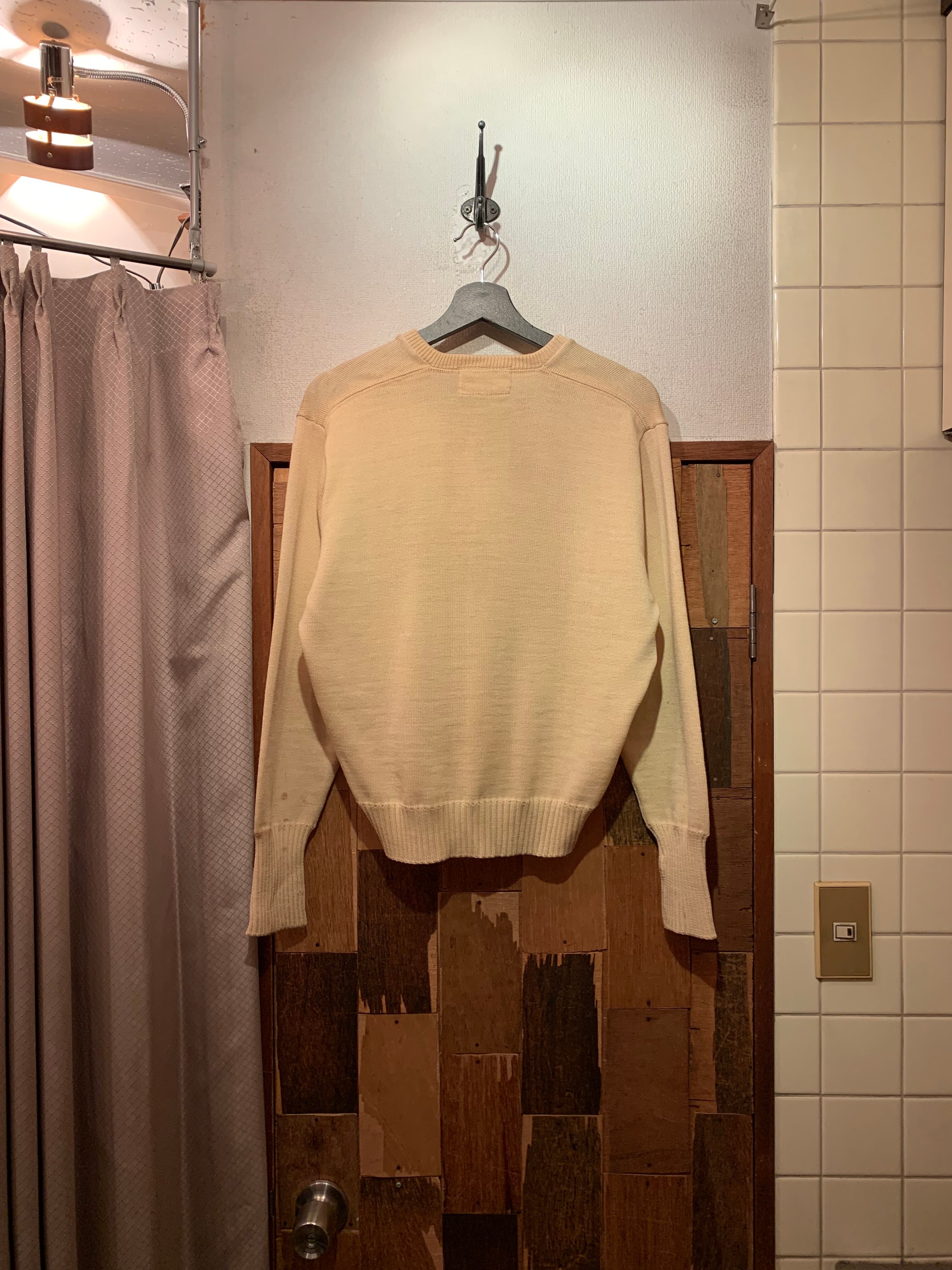 “GREWE” 50’s vintage light beige wool v-neck knit sweater