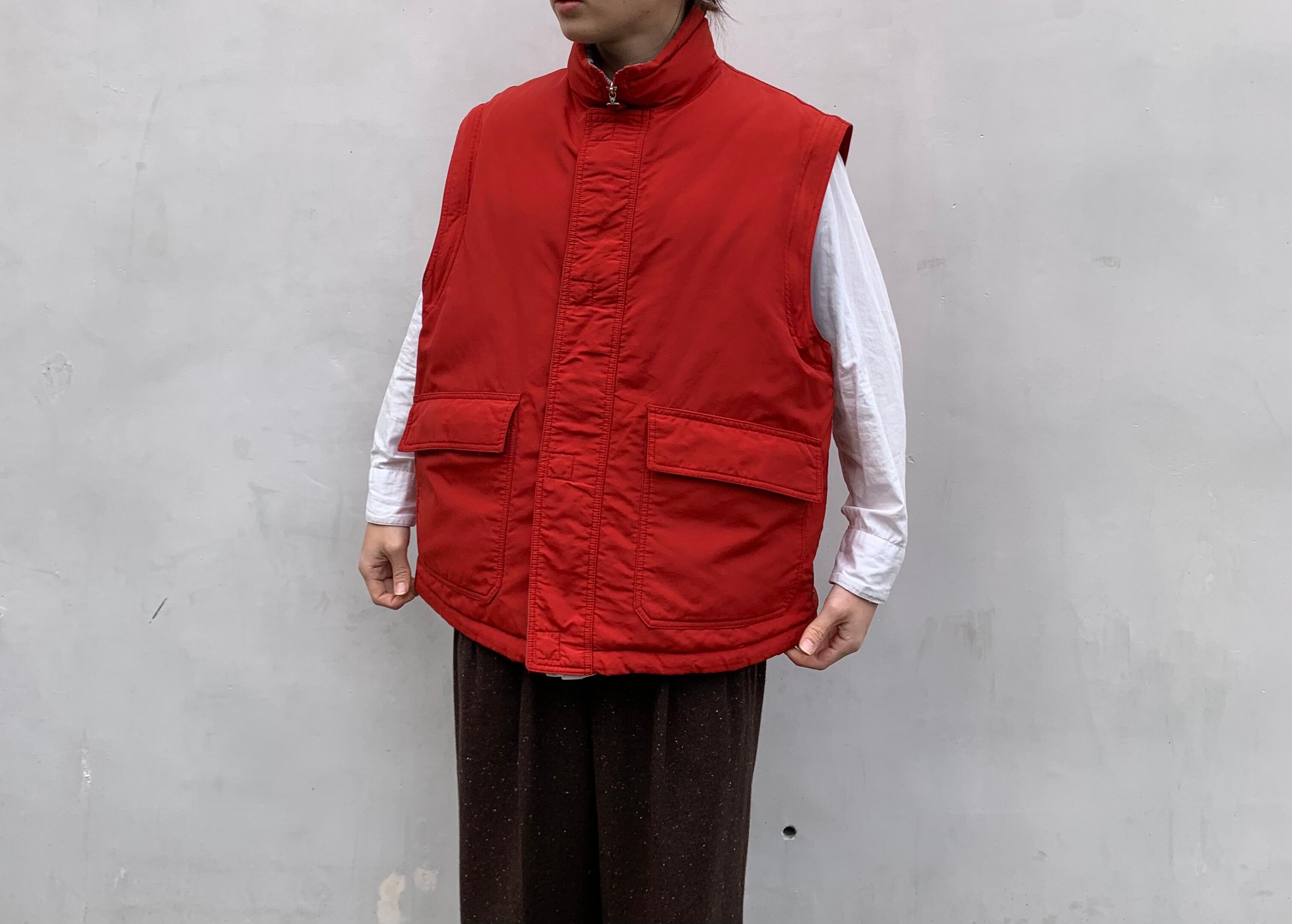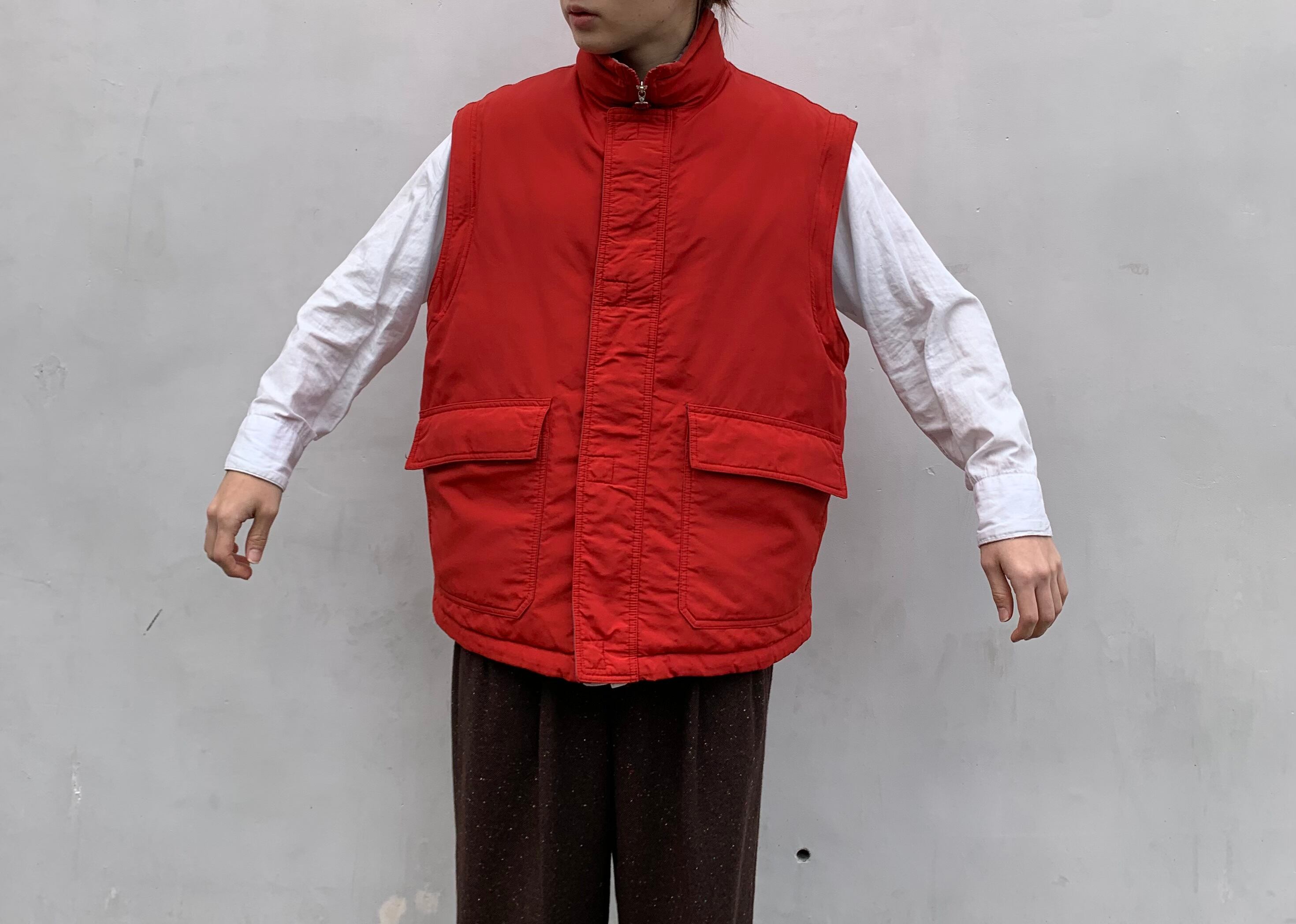 “ARMANI JEANS” 90’s~00’s red×gray nylon detachable design down jacket&vest