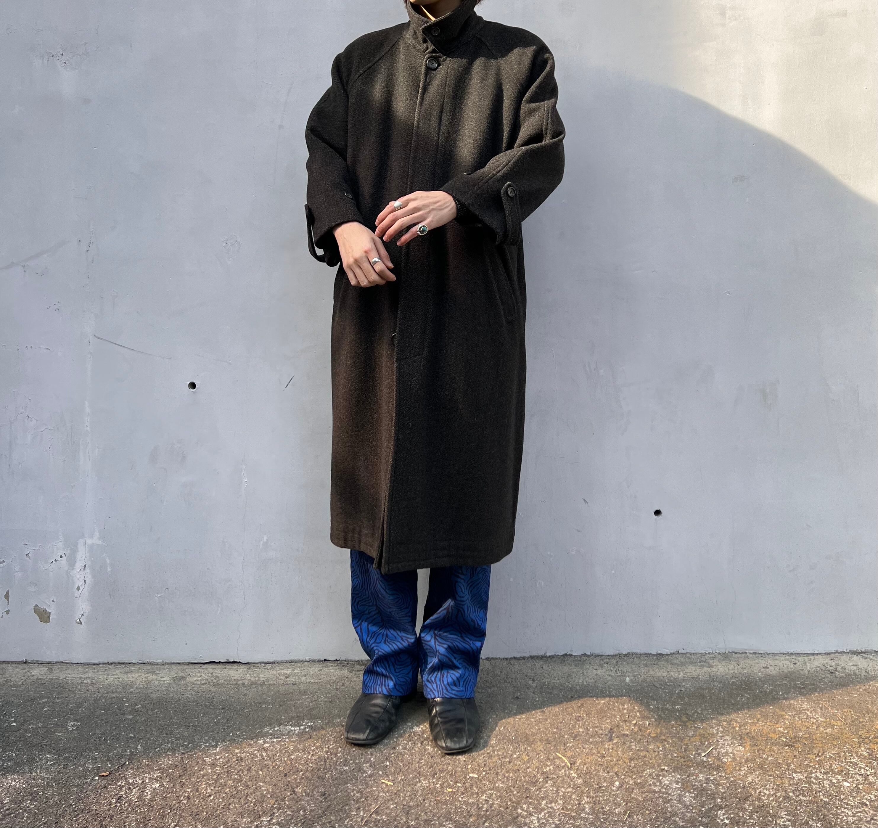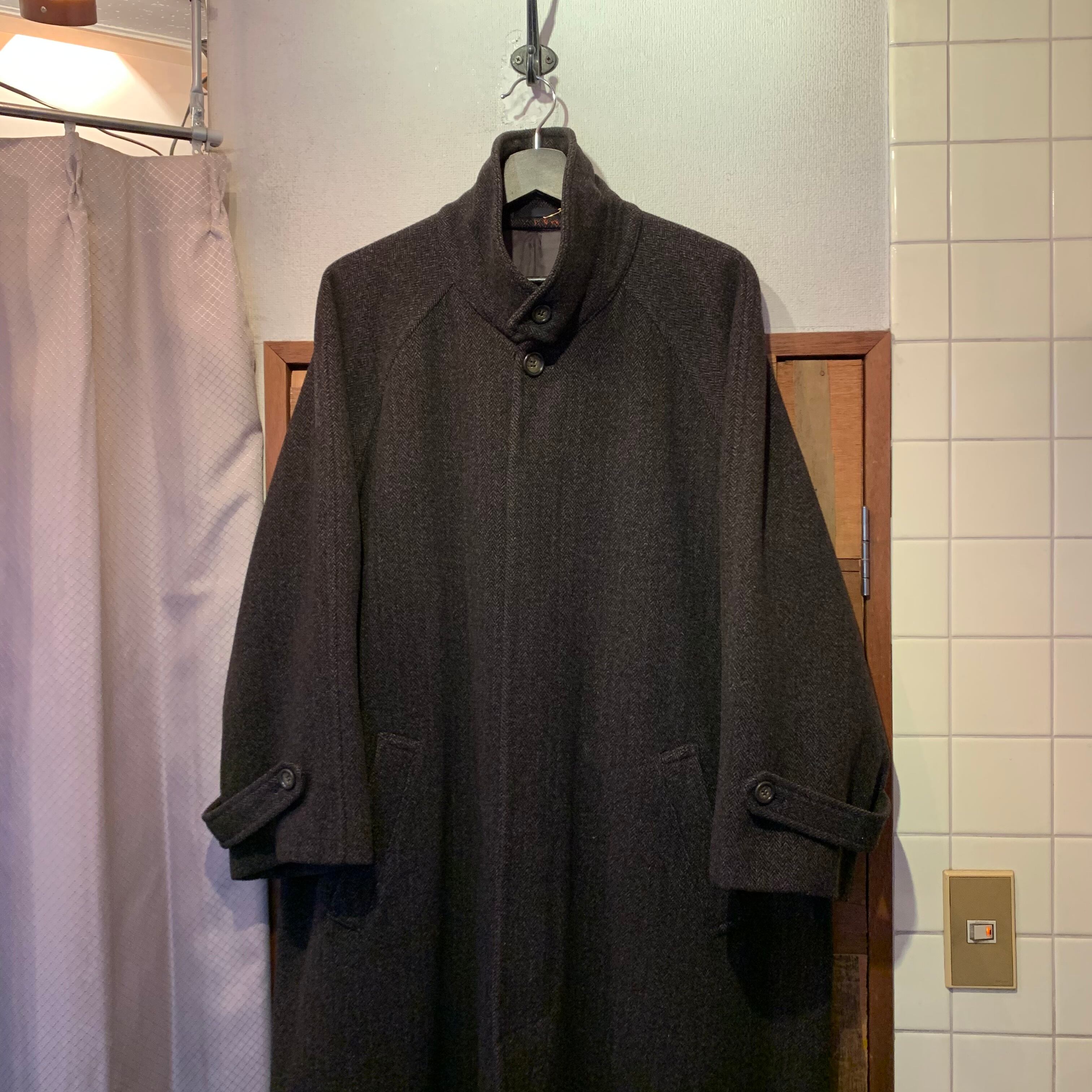 “SPASSO” charcoal brown wool tweed balmacaan coat