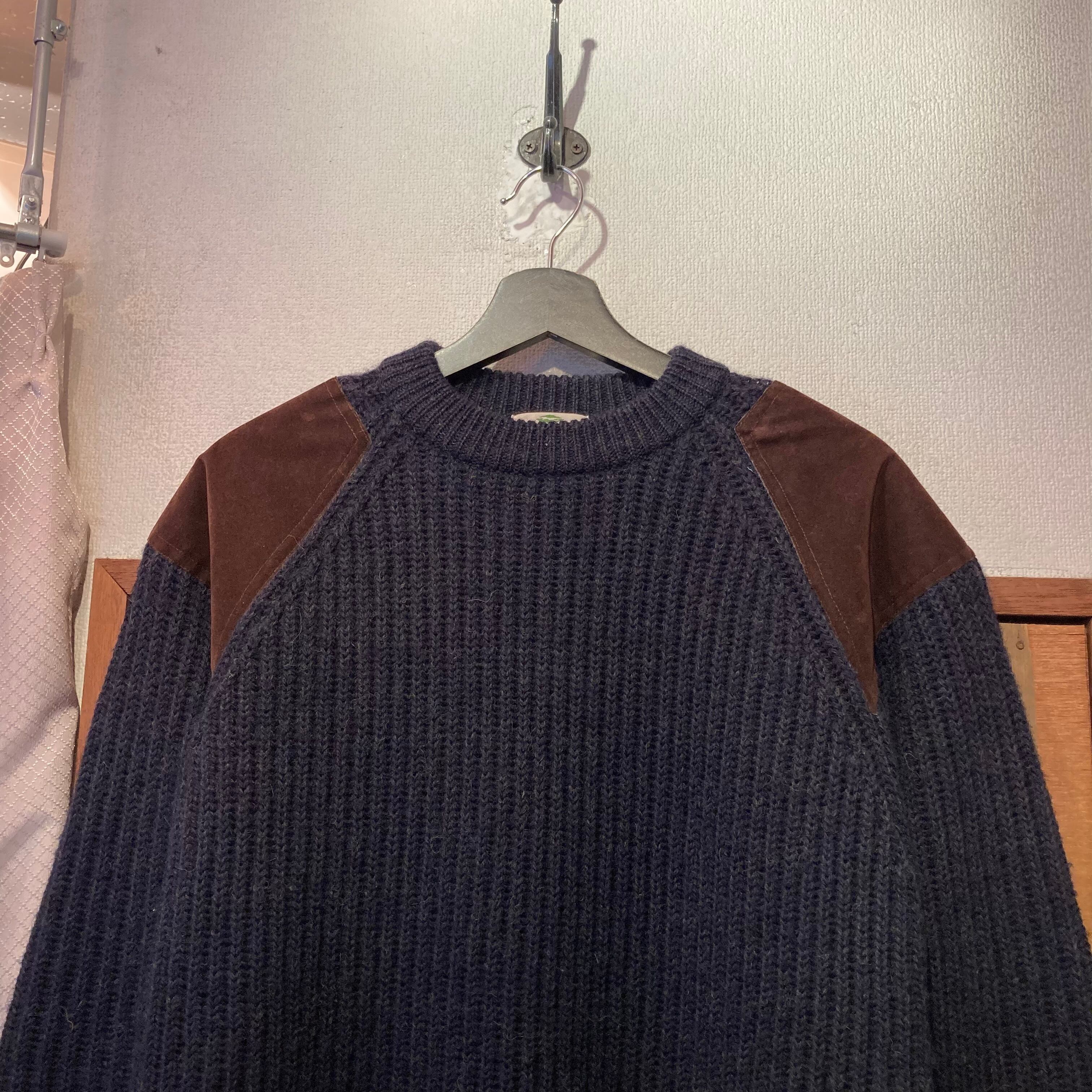 “Ras Venecian” 80's~ navy×brown wool switch design knit sweater