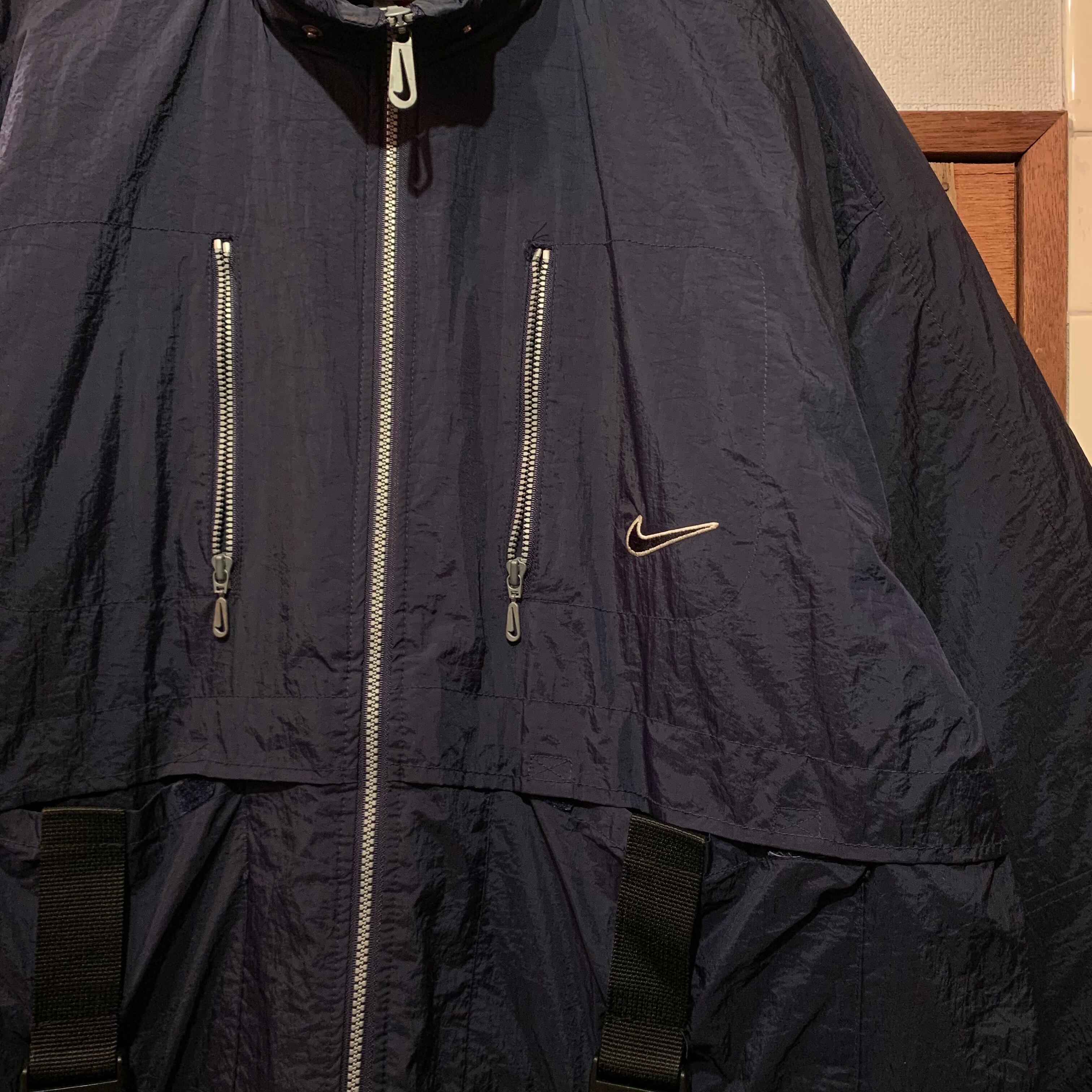 “NIKE” 90’s navy point logo zip-up design jacket inner quilting!!