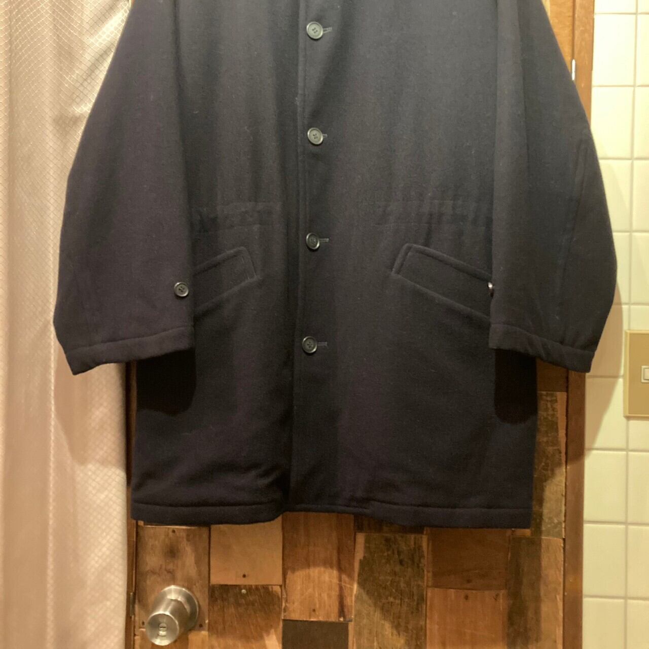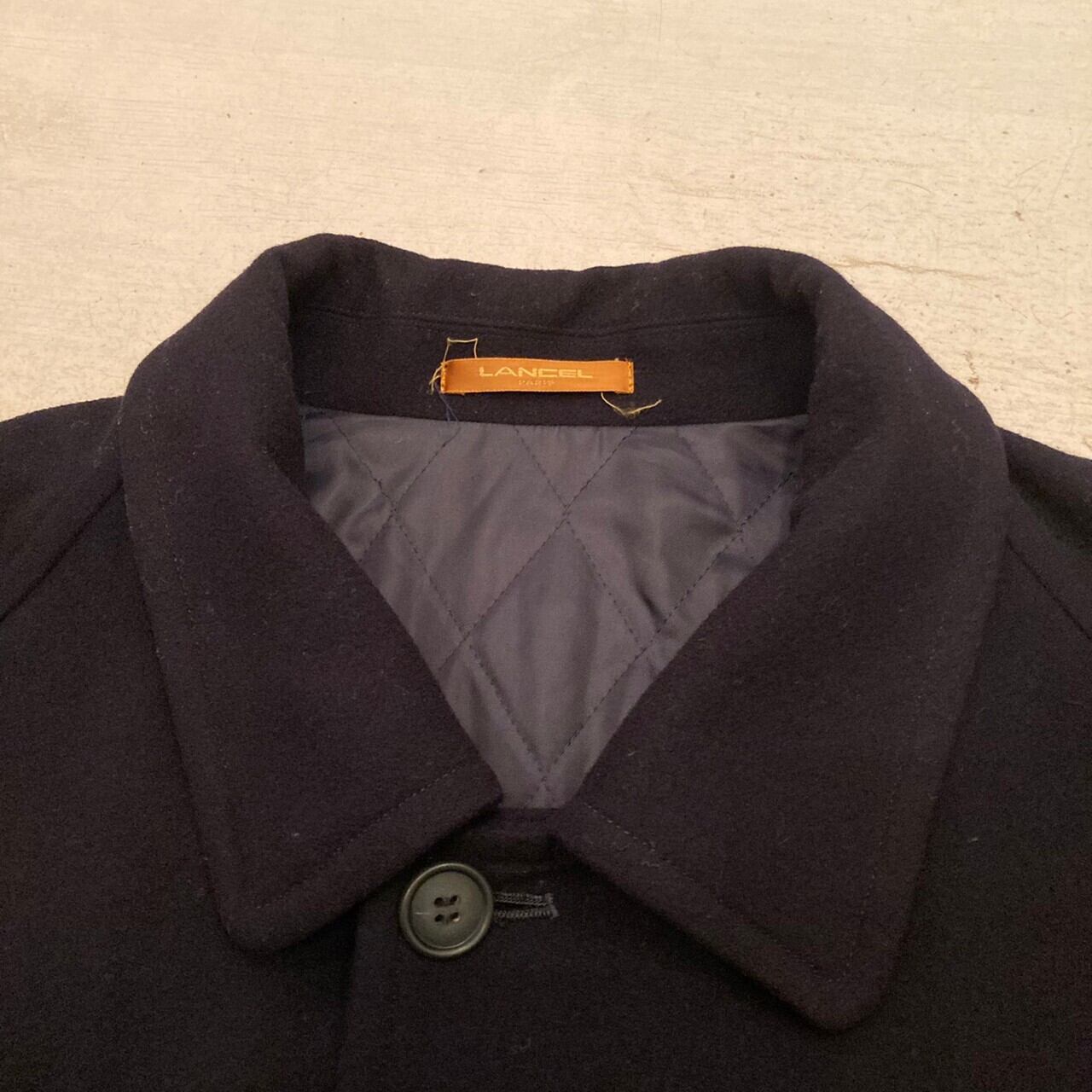 “LANCEL” 80’s dark navy wool design half-coat