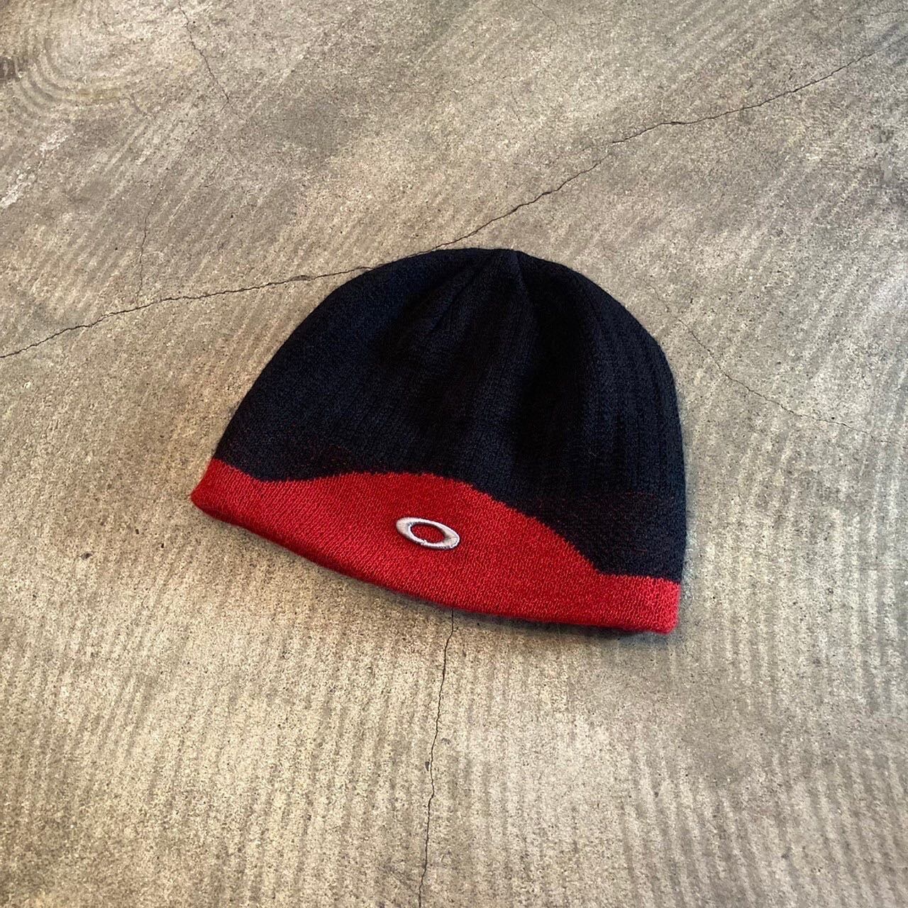 “OAKLEY” 00’s black×red acrylic point logo knit cap