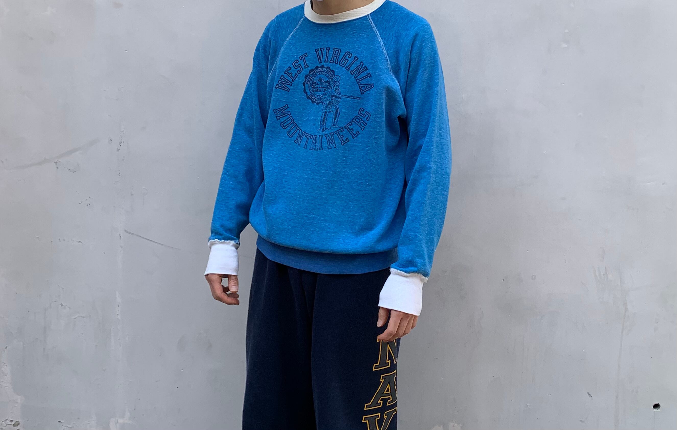 “brand unknown” ~70’s vintage 3tone color printed raglan sweat